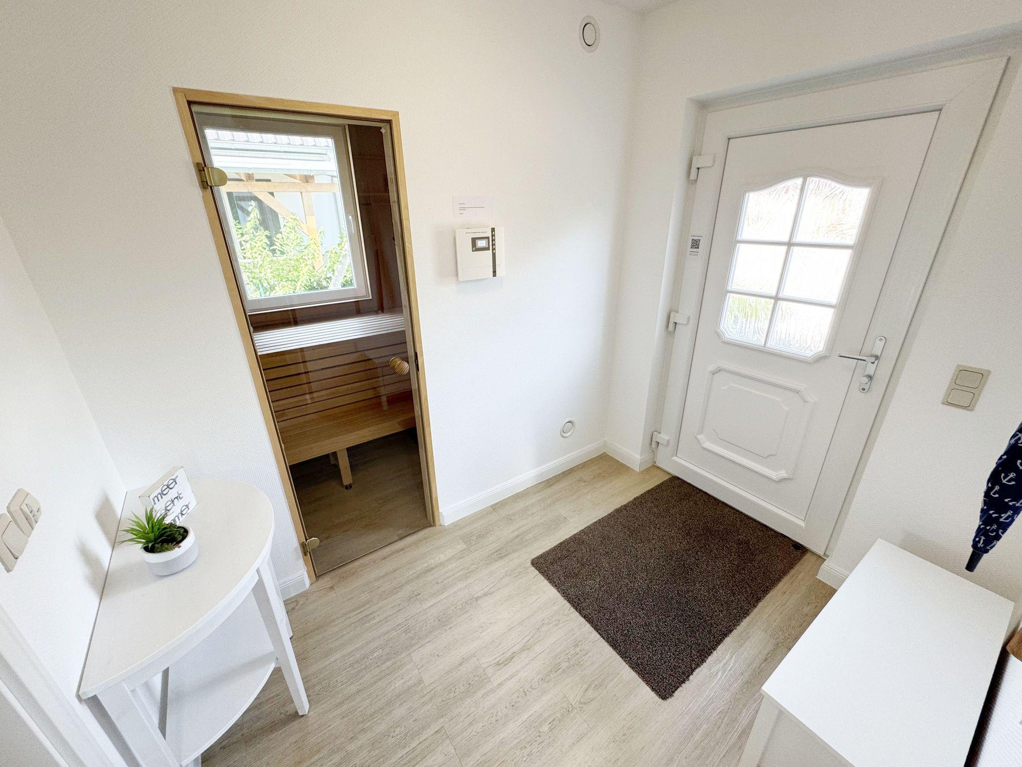 Willkommen im Ferienhaus „Uns lütt Hus“, im schönen und erholsamen Ostseebad Baabe. Das Nichtraucherferienhaus mit seinen ca. 95 m² erstreckt sich auf über 2 Etagen und bietet Ihnen Platz für max. 4 Erwachsene. Mit viel Liebe zum Detail wurde das Haus eingerichtet und bietet Ihnen auch in der kalten Jahreszeit einen angenehmen Rückzugsort, um Ihre Seele baumeln zulassen. Eine Sauna im Eingangsbereich ziert das Haus und bietet Ihnen eine kleine aber feine Wellnessoase. Der großzügige Koch-, Ess- und Wohnbereich mit seinen ca. 39 m² lässt keine Wünsche offen. Die offene Küchenzeile ist mit einem modernen Pyrolyse Backofen, Glaskeramikkochfeld, Dunstabzugshaube, Granitspüle, Einbau-Kühl-Gefrierkombination, Kaffeemaschine, Pad-Maschine (Dolce Gusto), Heißluftfriteuse (Ninja), Wasserkocher, Toaster, Eierkocher, Mixer und vielen weiteren kleinen Küchenhelfern ausgestattet. Angrenzend an den Küchenbereich schließt sich der großzügige Wildeichenholzesstisch mit seinen 4 Lederstühlen und Highboard an. Der Wohnbereich mit seiner gemütlichen Eckcouch und dazugehörigem Couchtisch, Leselampe, TV-Bord mit LED Smart-TV mit Sky (Auswahl von Sport, Film, Dokumentation), Blu Ray Player und einem Teufel Heimkinosystem laden für gemütliche und erholsame Stunden ein. Abgerundet wird dieser Bereich durch einen Ohrensessel mit Hocker und Blick auf den Kamin, welcher in der kalten Jahreszeit für eine angenehme Wärme sorgt. Kaminholz ist für Sie inklusive. Eine kleine Auswahl an Gesellschaftsspielen, Urlaubslektüren und DVDs stehen Ihnen außerdem zur Verfügung. Der technische Bereich wird zusätzlich durch einen WLAN Zugang (100 Mbit/S) abgerundet. Das erste der Tageslichtduschbäder befindet sich im Erdgeschoss und ist mit einer ebenerdigen Klarglasdusche der Firma Sprinz und einer XXL Regendusche ausgestattet. Weiterhin finden Sie ein WC, einen Waschtisch, einen Handtuchtrockner und einen Fön im Bad. Vom Wohn-/Essbereich gelangen Sie auf Ihre südausgerichtete Terrasse, die mit bequemen und verstellbaren Terrassenstühlen und einer elektrischen Markise sowie 2 Sonnenliegen ausgestattet ist. Auch ein Holzkohlegrill der Firma Weber lässt den Abend auf der Terrasse bei einem guten Essen und einem Gläschen Wein ausklingen. Vom Flur erreichen Sie durch eine etwas steile Holztreppe Ihre beiden Schlafzimmer sowie ein weiteres Tageslichtbad. Das große Schlafzimmer verfügt über ein Doppelbett (1,80 m x 2,00 m) mit Gel-Kaltschaummatratzen (0,90 m x 2,00 m), verstellbare Lattenroste am Kopf und Fußende, Nachttischablagen, DAB-Radio Wecker von Teufel, LED TV, einen Ohrensessel mit Hocker, einen Safe, einen Elektrokamin sowie einen großzügigen Einbau-Kleiderschrank. Das kleinere der Schlafzimmer wurde mit einem Doppelbett (1,60 m x 2,00 m) und Gel-Kaltschaummatratzen (0,80 m x 2,00 m), verstellbare Lattenroste am Kopf und Fußende, Nachttischablagen, DAB-Radio Wecker von Teufel sowie einer kleinen Sitzecke bestehend aus einem Sessel mit Ablagen, ausgestattet. Für einen ruhigen und erholsamen Schlaf sorgen zusätzlich Verdunklungs-Plissees, elektrische Rollläden sowie Insektenschutzgitter. Das zweite Tageslichtbad im Obergeschoss verfügt wie das Duschbad im Erdgeschoss über eine ebenerdige Klarglasdusche der Firma Sprinz und eine XXL Regendusche. Ein WC, ein Waschtisch, ein Kosmetikspiegel und ein Handtuchtrockner runden das Bad ab. Alle Räumlichkeiten im Ferienhaus sind mit einer Fußbodenheizung und Vinylfußbodenbelag im Holz Look versehen. Nicht nur im Schlafzimmer finden Sie elektrische Rollläden und Insektenschutzgitter! Diese sind im gesamten Haus vorhanden. Im Hauswirtschaftsraum finden Sie eine Waschmaschine mit Trocknerfunktion, einen Staubsauger, Reinigungsutensilien, ein Bügelbrett sowie ein Bügeleisen. Um den sehr kalkhaltigen Wasser auf der Insel Rügen entgegenzuwirken, finden Sie eine Enthärtungsanlage im Haus, die das Wasser enthärtet. Für unsere kleinen Gäste steht ein Hochstuhl sowie ein Kinderreisebett (ohne Bettinlett/mit Zusatzmatratze) und ein Treppenschutz zur Verfügung. Auch ein 4-Beiner ist mit seinem eigenen Schlafplatz gegen eine Gebühr ein gern gesehener Gast. 2 PKW-Stellplätze befinden sich direkt vor dem Haus sowie eine Ladestation für Elektrofahrzeuge (Abrechnung über Nebenkostenpauschale). Auch der vorhandene Carport am Haus bietet Schutz für einen PKW. Ihre geliehenen oder auch mitgebrachten Fahrräder können Sie im großzügigen Schuppen unterstellen. Hier gibt es auch die Möglichkeit, Ihre E-Bikes aufzuladen. Zur Erkundung der Umgebung stehen Ihnen zusätzlich 2 Trekking Räder der Firma Victoria mit Gangschaltung zur Verfügung sowie ein Damenrad der Firma Hartje mit Gangschaltung (kein Vertragsbestandteil). Auf dem kleinen Grundstück finden Sie auch eine Wäschespinne, um Ihre Handtücher nach dem Baden in der Ostsee aufzuhängen. Die Erstausstattung eines Wäschepaketes (komplette Bettwäsche, 1 Duschhandtuch, 2 kleine Handtücher) können Sie bis 14 Tage vor Anreise gegen einen Aufpreis dazu buchen oder durch eigene ergänzen. Ab 2 gebuchten Paketen erhalten Sie einmalig 1 Geschirrhandtuch und 1 Duschvorleger hinzu.