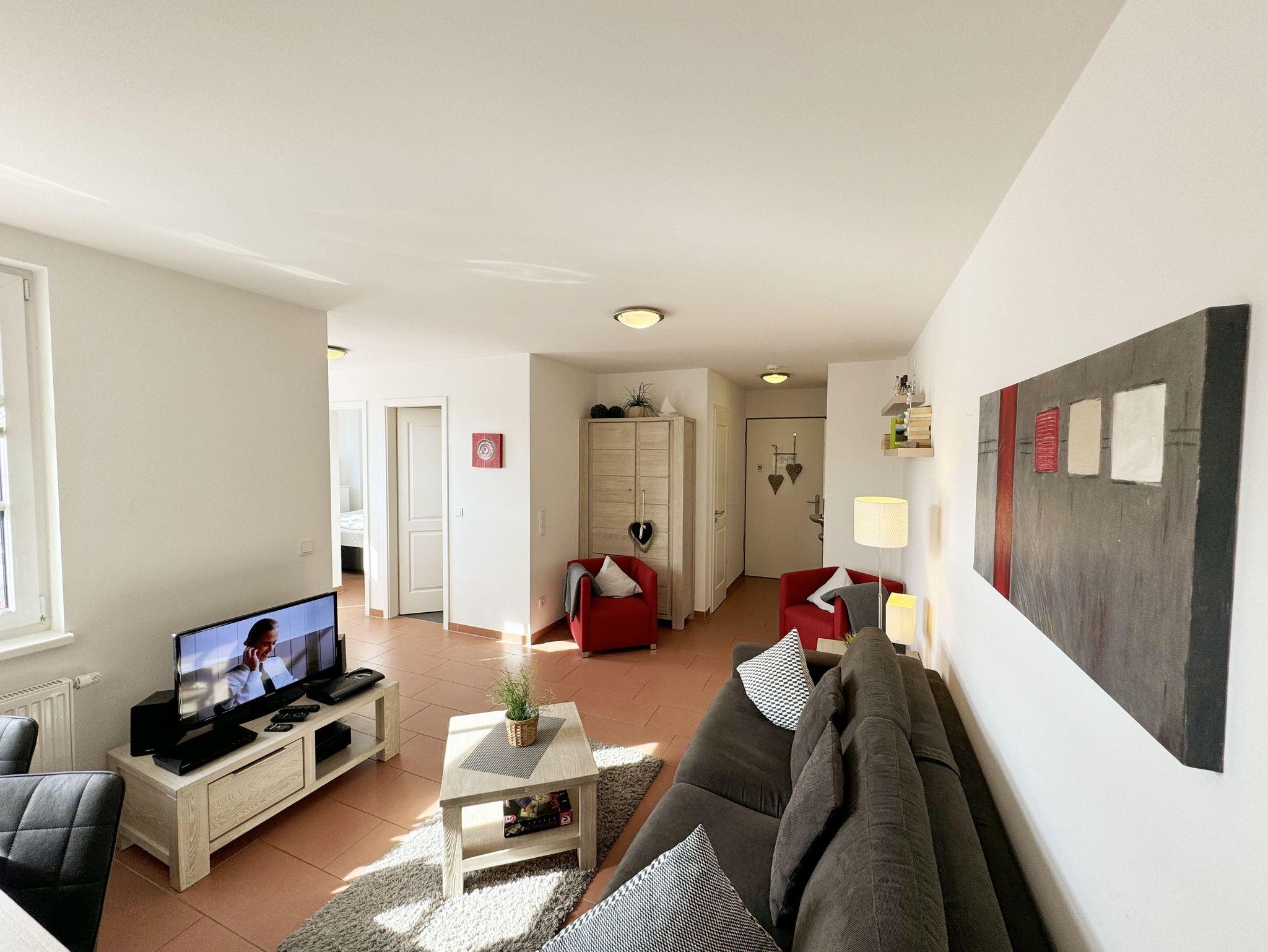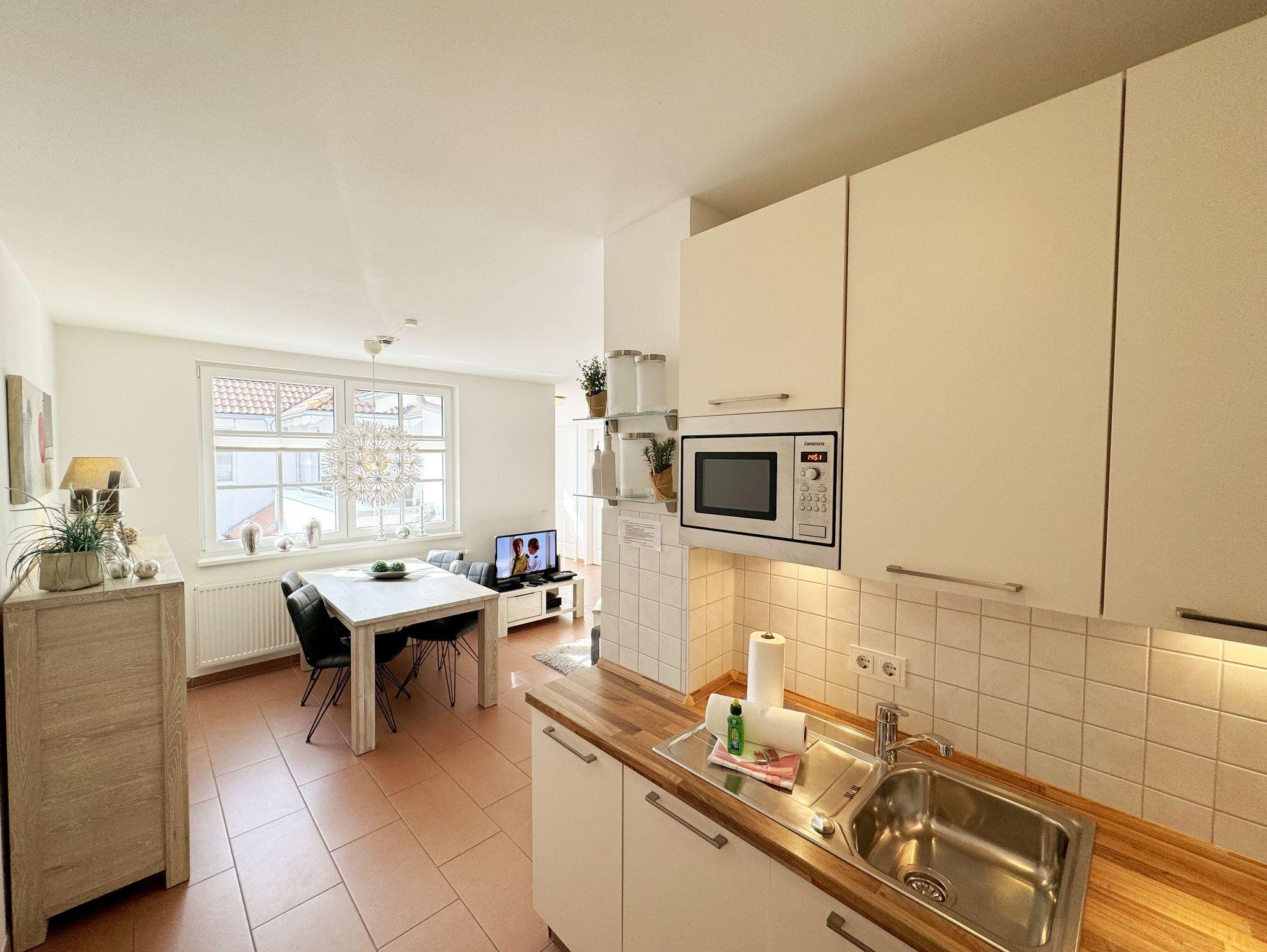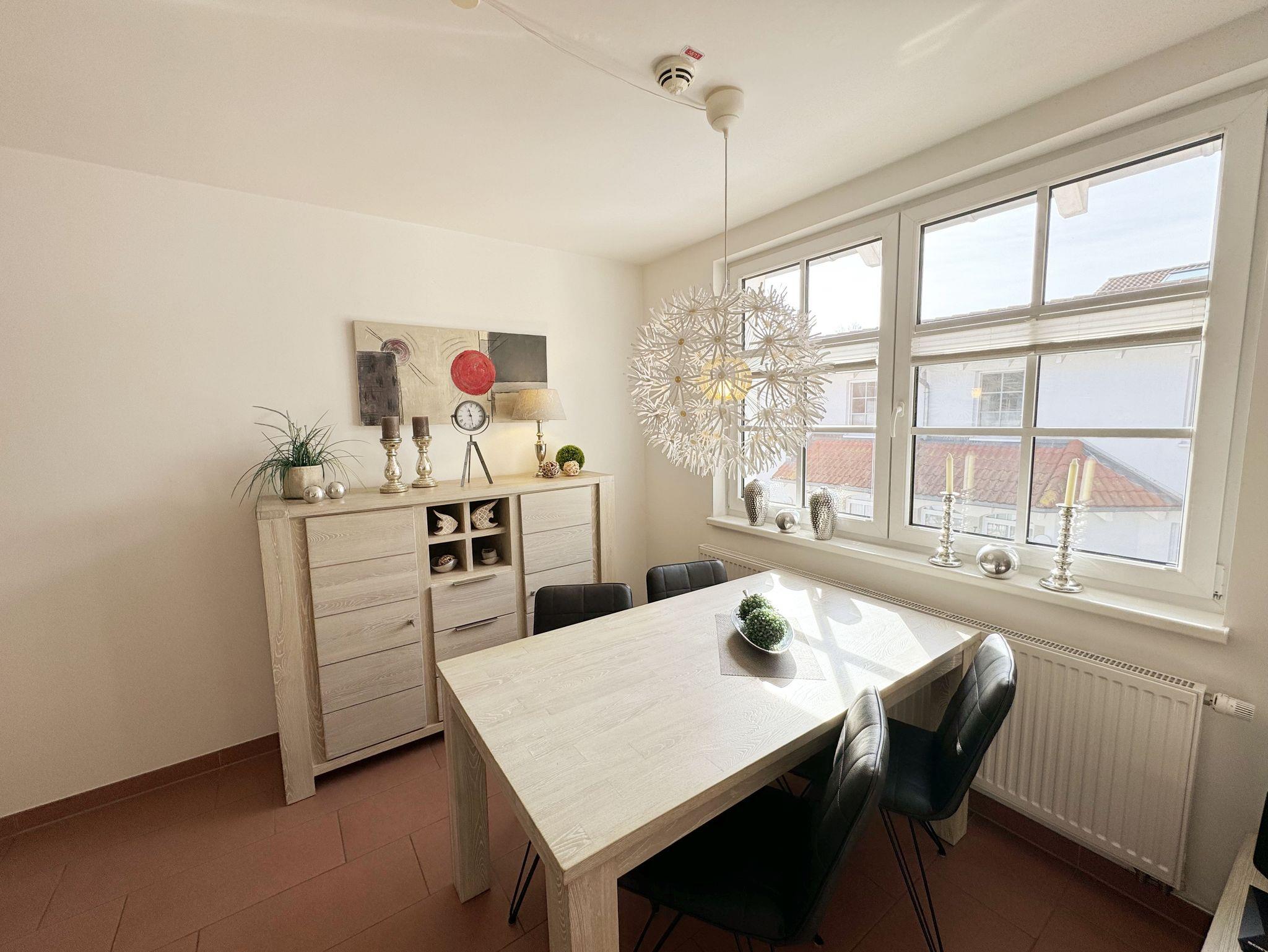 Unser geräumiges ca. 54 qm großes Appartement Nordlicht befindet sich in der 3. Etage und ist für 2 bis 4 Personen geeignet. Von der Tiefgarage aus erreichen Sie ganz bequem mit dem Fahrstuhl Ihre Ferienwohnung. Sie finden hier einen kombinierten Wohn- und Essbereich mit offener Küchenzeile. Diese ist voll ausgestattet mit Ceranfeld, Backofen, Spülmaschine, Kühl/Gefrierkombination, Mikrowelle, einen Kaffeevollautomaten sowie weitere diverse praktische Küchenutensilien. Der Lichtdurchflutete und offene Wohnbereich mit seinen großen Fensterfronten bietet Ihnen eine gemütliche Couch (Liegefläche 1,60 m x 2,00 m) die sich mit wenigen Handgriffen zur Schlafstätte für die 3. und 4. Person umfunktionieren lässt. Dazu gehören 2 passende Sessel, ein Esstisch mit 4 Stühlen, ein großes Sideboard mit Smart-TV, DVD-Player und einer Musikanlage mit iPhone-Dockingstation. Ein Internetanschluss (WLAN/LAN) steht Ihnen inklusive zur Verfügung. Im Schlafzimmer finden Sie ein hochwertiges Boxspringbett (Liegefläche 1,80m x 2,00m) zwei Nachttischkonsolen, einen großen Schwebetürenkleiderschrank, Ganzkörperspiegel sowie einen LCD-Kabel-TV. Vom Wohn- und Schlafbereich haben Sie Zugang zur geräumigen Dachterrasse, die in Richtung Süden liegt und mit komfortablen Gartenmöbeln für 4 Personen ausgestattet ist. Im Badezimmer finden Sie eine ebenerdige Klarglasdusche, einen Waschtisch, Handtuchtrockner, Wand- und Kosmetikspiegel, einen Haartrockner und ein WC. Zusätzlich befinden sich im Abstellraum der Wohnung ein Bügelbrett, ein Bügeleisen und diverse weitere Utensilien. 1x Kinderreisebett (ohne Matratze und Bett Inlett) sowie 1x Hochstuhl stehen Ihnen kostenfrei zur Verfügung. Waschmaschine und Trockner stehen Ihnen im Keller des Hauses gegen eine Gebühr zu Verfügung. Mit dem Fahrstuhl des Hauses A gelangen sie in das Untergeschoss der Meeresblickanlage, wo Sie ein großzügiger und heller Wellnessbereich erwartet. Hier können sie in einem Pool kleine Bahnen schwimmen, in 2 Saunen Ihren Kreislauf in Schwung bringen, in einem dazugehörigen Ruheraum Ihren Körper wieder beruhigen, in einer Schneckendusche sowie weiteren Duschen das kühle Nass genießen und auf einer Außenterrasse mit Außendusche die frische Luft einatmen. Ein eigener Strandkorb ist für Sie saisonbedingt und wetterabhängig von Mai bis September am Meer reserviert. Ein PKW-Stellplatz (Nr.53, Einfahrtshöhe 2,00m) ist für Sie in der Tiefgarage reserviert. Haustiere sind in dieser Wohnung nicht erlaubt. Die Erstausstattung eines Wäschepaketes (komplette Bettwäsche, 1 Duschhandtuch, 2 kleine Handtücher) können Sie bis 14 Tage vor Anreise gegen einen Aufpreis dazu buchen oder durch eigene ergänzen. Ab 2 gebuchten Paketen erhalten Sie einmalig 1 Geschirrhandtuch und 1 Duschvorleger hinzu.