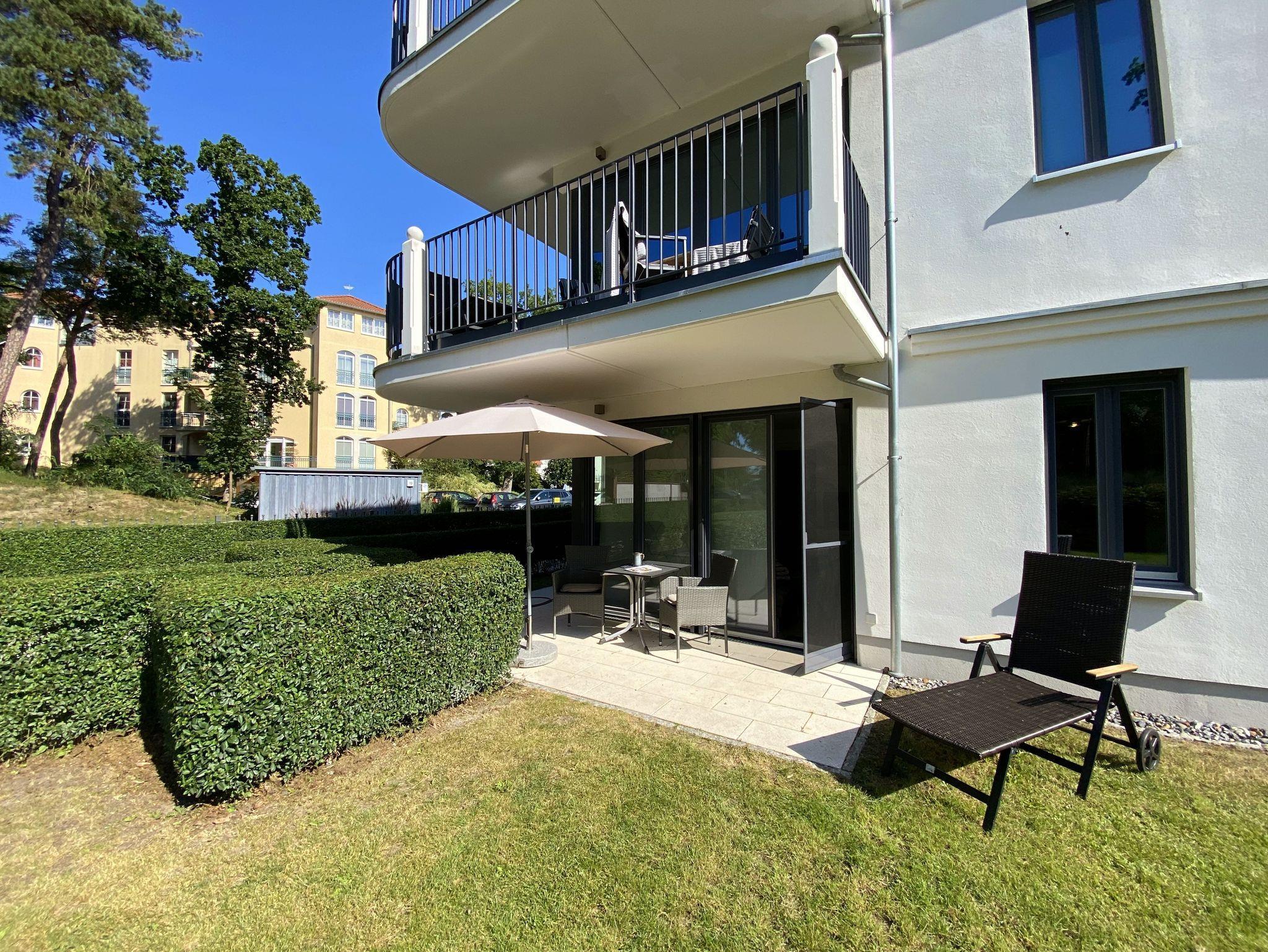 Moderne Ferienwohnung in Baabe mit Terrasse, Meerblick und Sauna erwartet Sie in erster Reihe zum Ostseestrand.