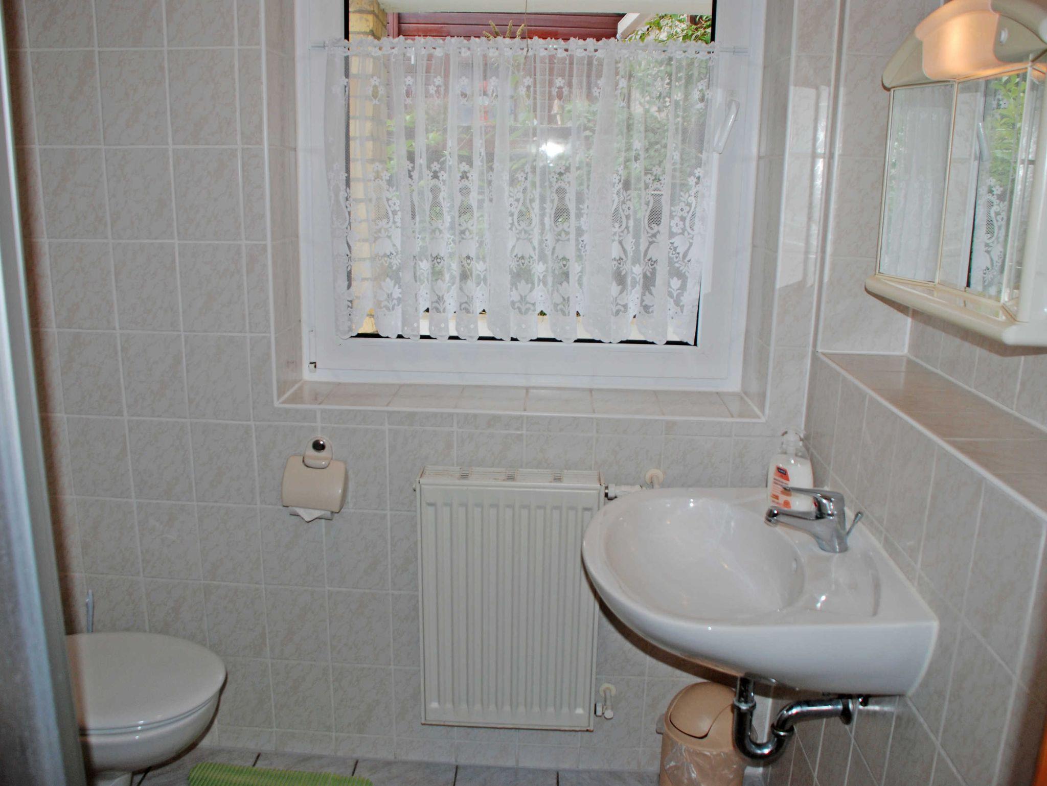 Das Bad ist mit Dusche, WC und Waschtisch ausgestattet und verfügt über Tageslicht.