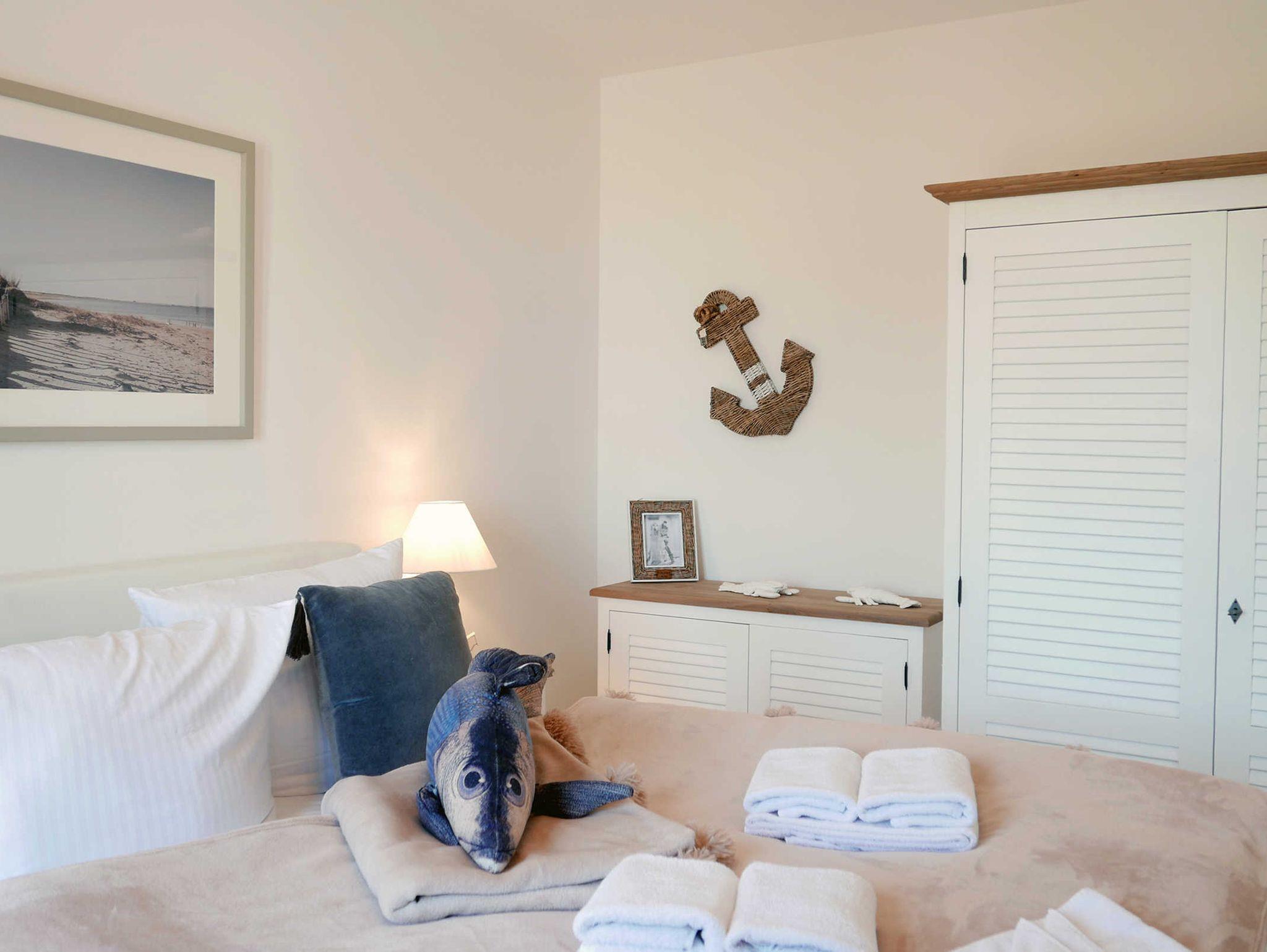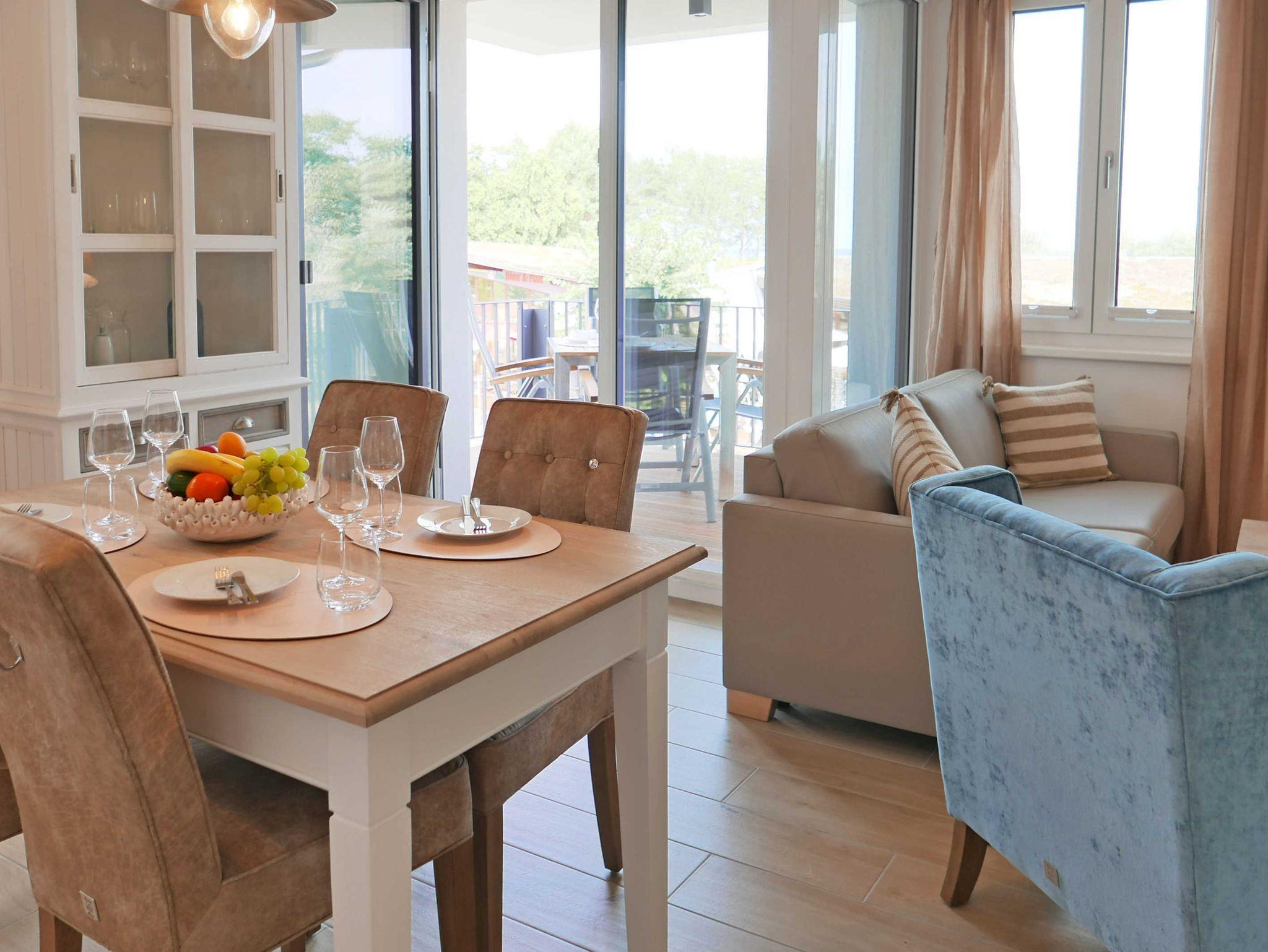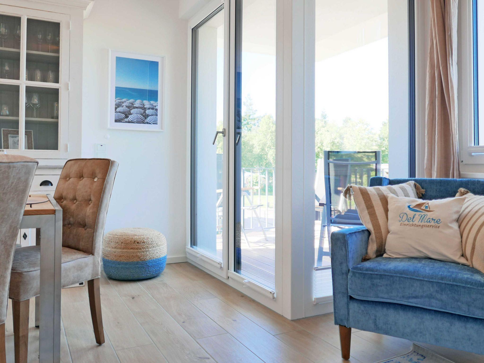 In dieser wunderbar hellen und hochwertig ausgestatteten Ferienwohnung bleiben keine Wünsche offen: Die gesamte Wohnung ist in maritimen Farben gehalten, sodass hier direkt Urlaubsatmosphäre aufkommt. Sowohl vom Balkon als auch von den bodentiefen Fenstern aus können Sie bis zum Meer blicken.