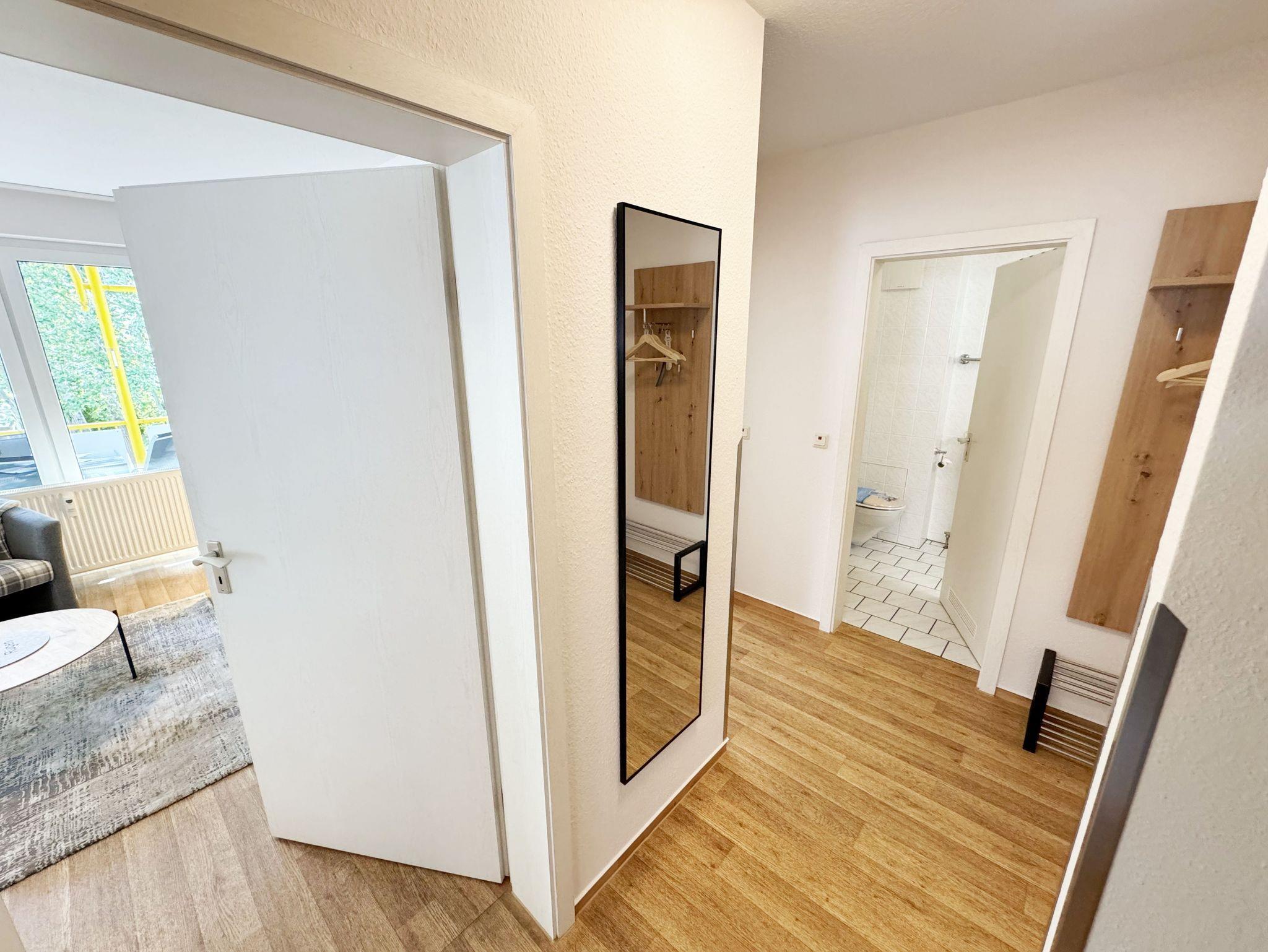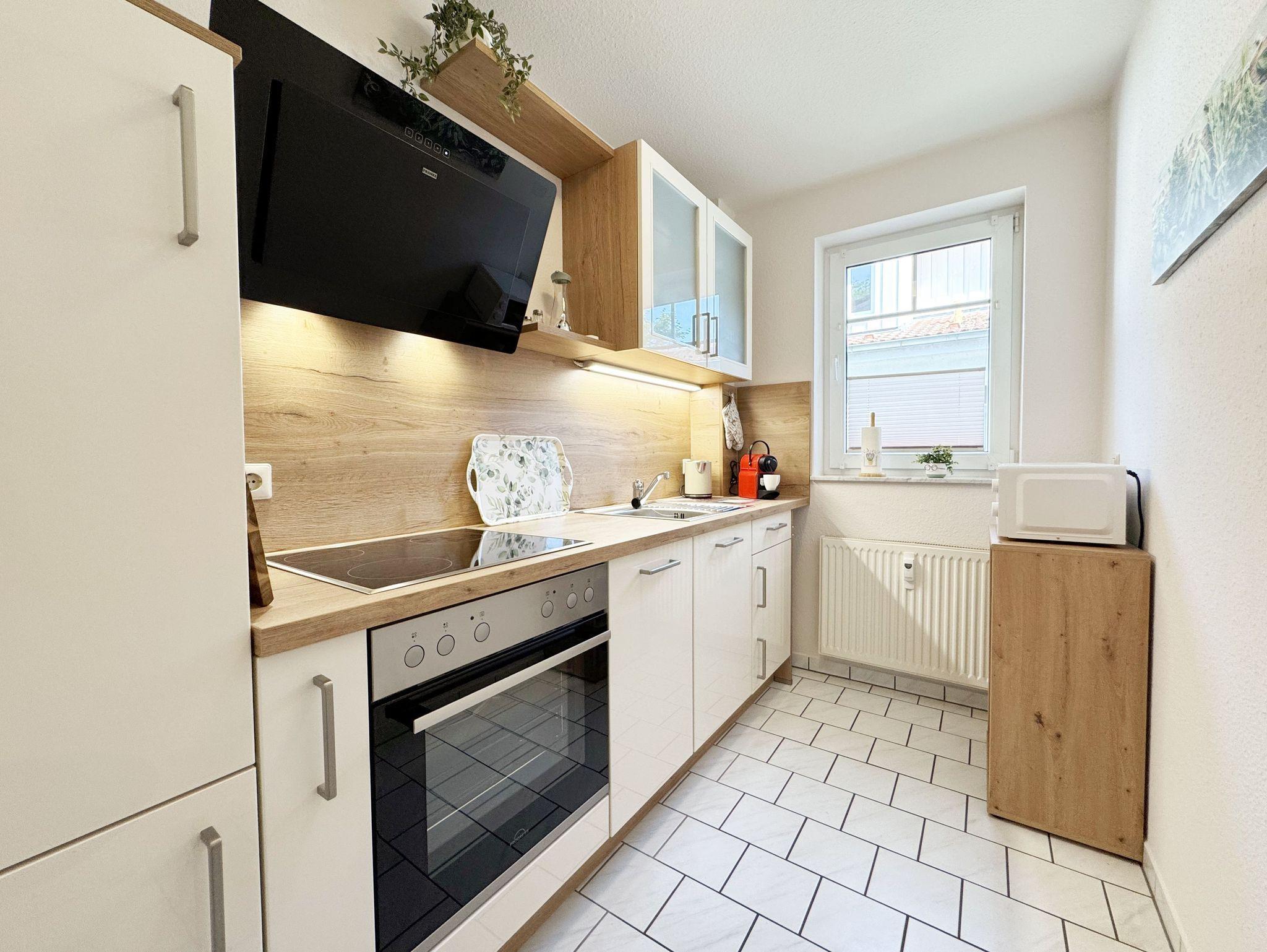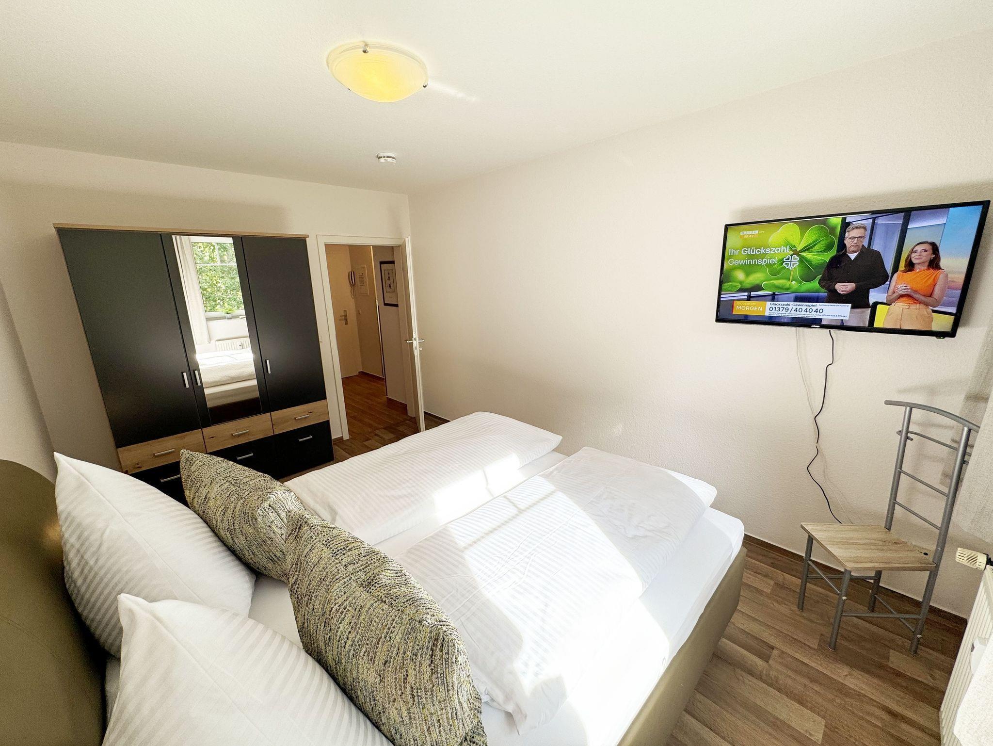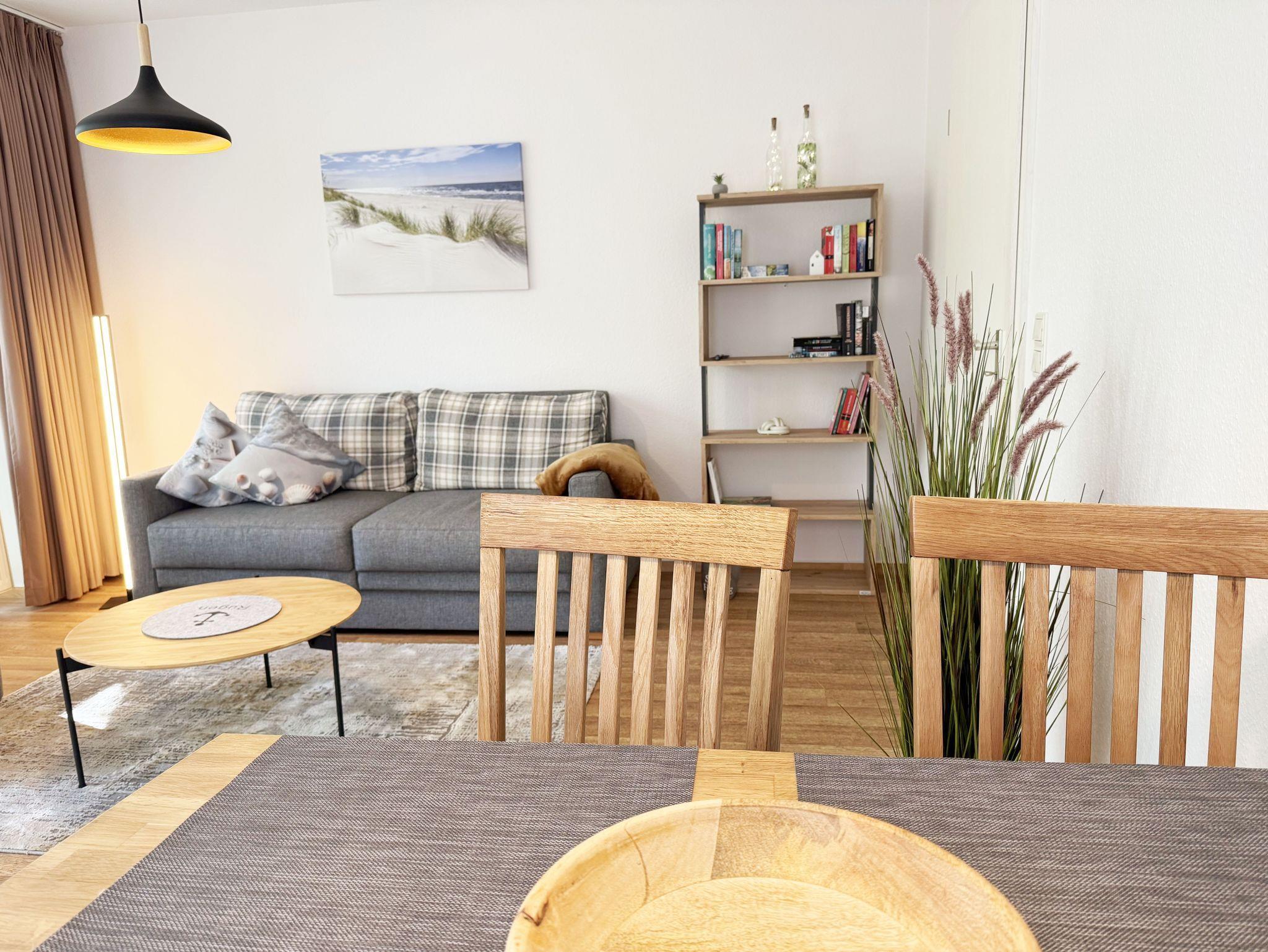Die gemütliche ca. 52 m² große Nichtraucher-Oase der Ruhe liegt idyllisch im 1. Obergeschoss der Villa Störtebeker (Nr. 15) und bietet Ihnen für max. 2 bis 4 Personen, einen herrlichen Blick ins Grüne. Vom großen Flur aus, mit Garderobe, einem Spiegel und einem Schrank, gelangen Sie in alle Räume. Die in allen Räumen verwendeten Möbel und Accessoires strahlen Ruhe und Gemütlichkeit aus ? perfekt, um dem Alltag zu entfliehen. Der großzügige, lichtdurchflutete Wohnbereich lädt mit einer Essecke, einer komfortablen Schlafcouch (1,60m x 2,00m, Aufbettung für 3./4. Person), einem Sessel, einen Relaxesessel, einer Stehlampe, einem TV-Board und einem 55-Zoll-Smart-TV zum Entspannen ein. Auch bei nicht so gutem Wetter kommt keine Langeweile auf: denn Spiele, ein DAB-Radio und eine Bücherecke sorgen für zusätzliche Unterhaltung. Ein kostenfreier WLAN-Zugang ist ebenfalls vorhanden. Stilvolle, teilweise dimmbare Lampen sorgen für eine Wohlfühlatmosphäre. Vom Wohnbereich gelangen Sie auf den 10 m² große, überdachten und nach Osten ausgerichteten Balkon, umgeben von Grün und Bäumen, ist es der perfekte Ort für entspannte Stunden. Je nach Windrichtung können Sie auch das Meer zart rauschen hören. Die separate Küche ist komplett ausgestattet mit einem Cerankochfeld, einem Backofen, einem Geschirrspüler, einem Kühlschrank mit Eisfach, einer Spüle sowie weiteren Elektrogeräten wie einer Nespresso-Kaffeemaschine, einer Kaffeemaschine, einen Eierkocher, einem Wasserkocher, einem Toaster, einer Mikrowelle und einem Rührgerät/Mixer. Im geräumigen Schlafzimmer erwartet Sie ein erholsamer Schlaf in einem Doppelbett in Komforthöhe (1,80m x 2,00m) mit verstellbaren Lattenrosten. Nachttischablagen mit Beleuchtung, ein Herrendiener, ein Kleiderschrank und ein weiterer Flachbild-TV sind ebenfalls vorhanden. Die Verdunklungsmöglichkeit, sowie Insektenschutzgitter und die ruhige Lage sind beste Voraussetzungen für ruhige Nächte. Das innenliegende Badezimmer, mit einem WC, einer Dusche, einem Fön, einem Kosmetikspiegel und einem Waschplatz, bietet Ihnen den täglichen Komfort. Eine Waschmaschine und ein Trockner stehen gegen Gebühr im Waschraum zur Verfügung. Haustiere sind nicht erlaubt. Ihre Fahrräder können Sie im gemeinschaftlichen, abschließbaren Fahrradhäuschen hinter dem Haus oder im abschließbaren Keller des Hauses abstellen. Ihr PKW-Stellplatz (Nr. 15) befindet sich direkt vor dem Haus. Die Erstausstattung eines Wäschepaketes (komplette Bettwäsche, 1 Duschhandtuch, 1 kleines Handtuch) können Sie bis 14 Tage vor Anreise gegen Aufpreis dazu buchen oder durch eigene Ergänzen. Ab 2 gebuchten Paketen erhalten Sie einmalig 1 Geschirrhandtuch und 1 Duschvorleger dazu.