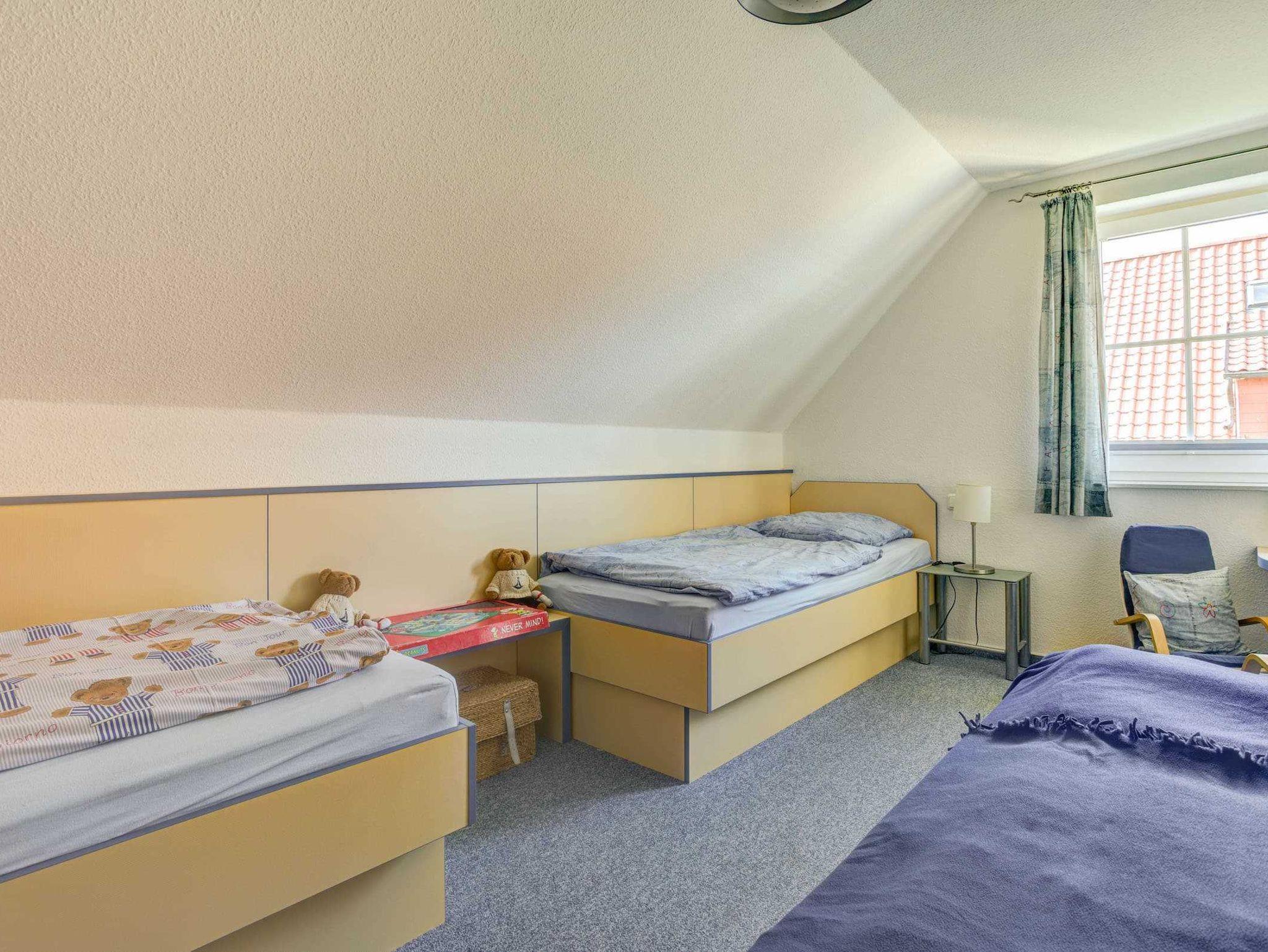 Aufteilung: 1 Wohnraum mit Sitzecke, TV (Kabel) & WLAN, darin anschließend eine offene Küche mit Küchenzeile (div. Ausstattung u.a. Spülmaschine), WC/DU; im OG 1 Schlafraum mit einem Doppelbett 1,80 x 2,00m (komfortables Hotelbett), 1 Schlafraum (Kinderzimmer) mit 3 einzelnen Betten je 0,80 x 2,00m, Bettwäsche und Handtücher sind selbstverständlich im Preis enthalten.