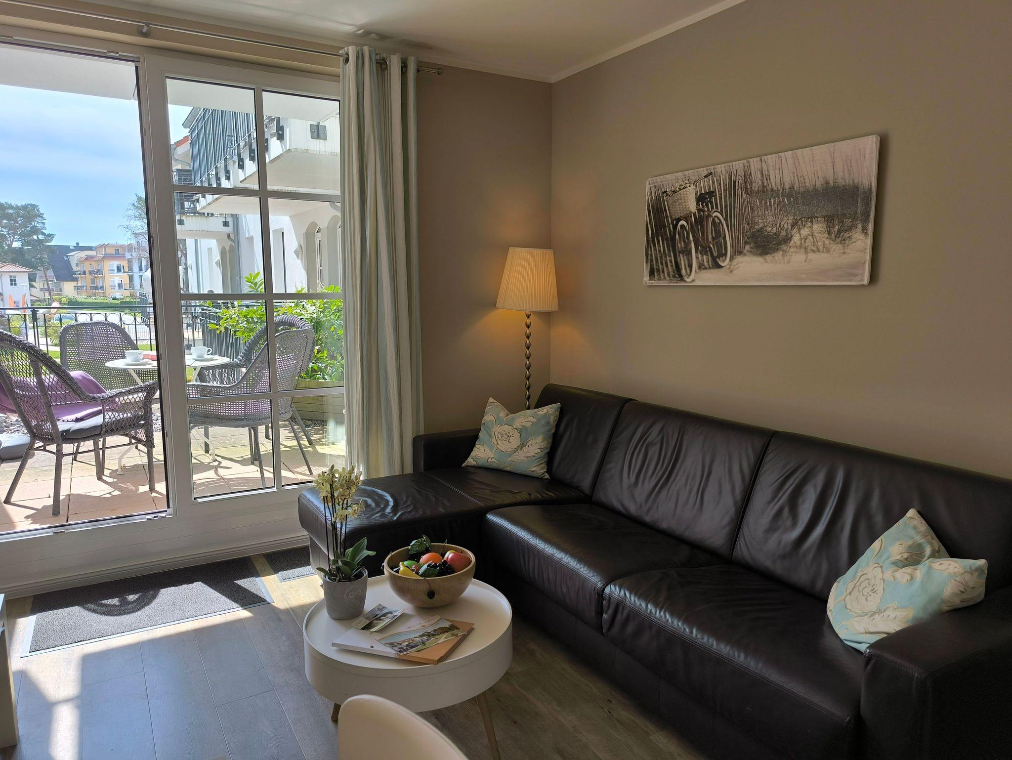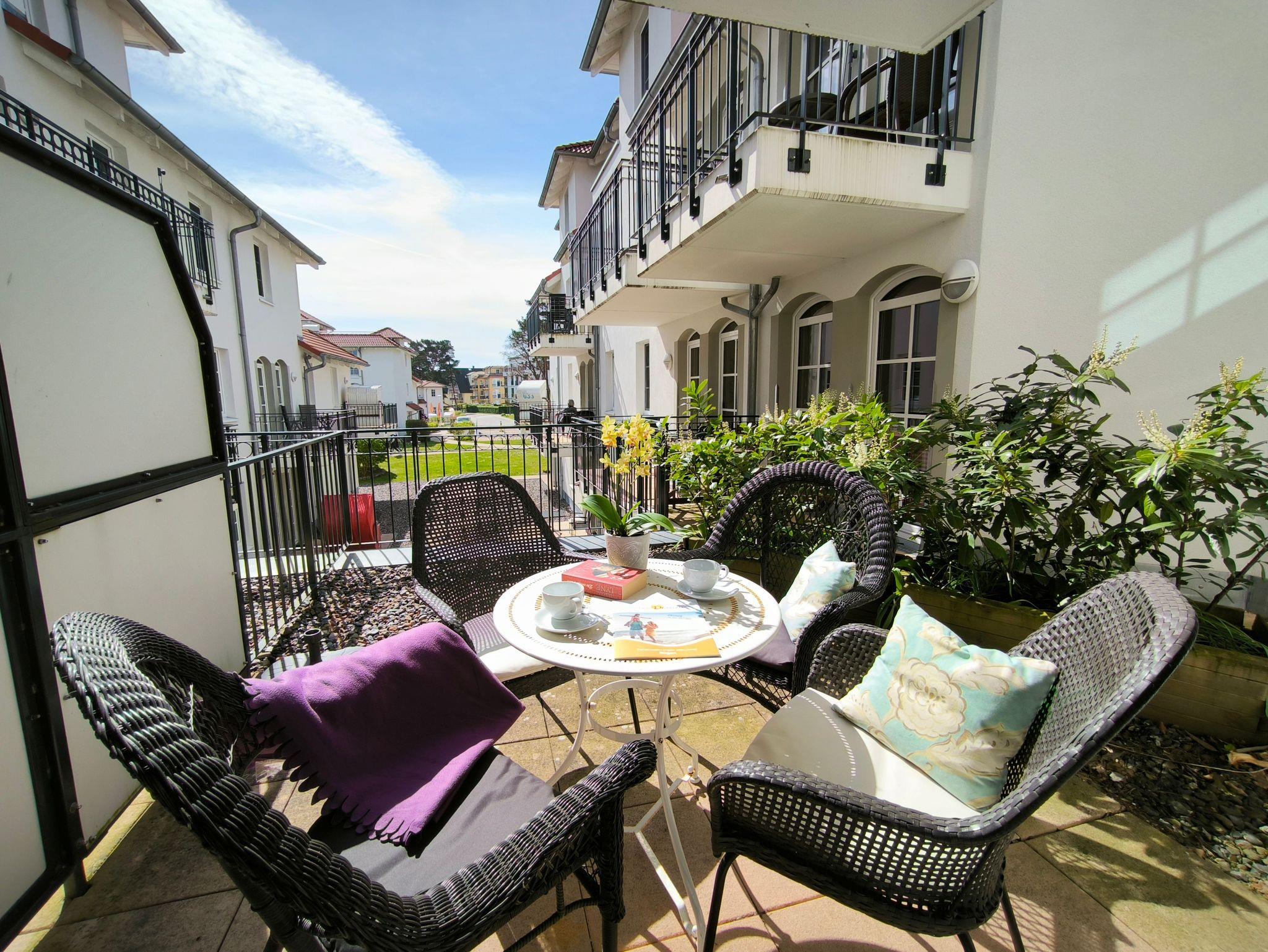 Moderne 2-Zimmer-Ferienwohnung mit Balkon, Strandkorb und Wellnessbereich direkt am Strand von Baabe.