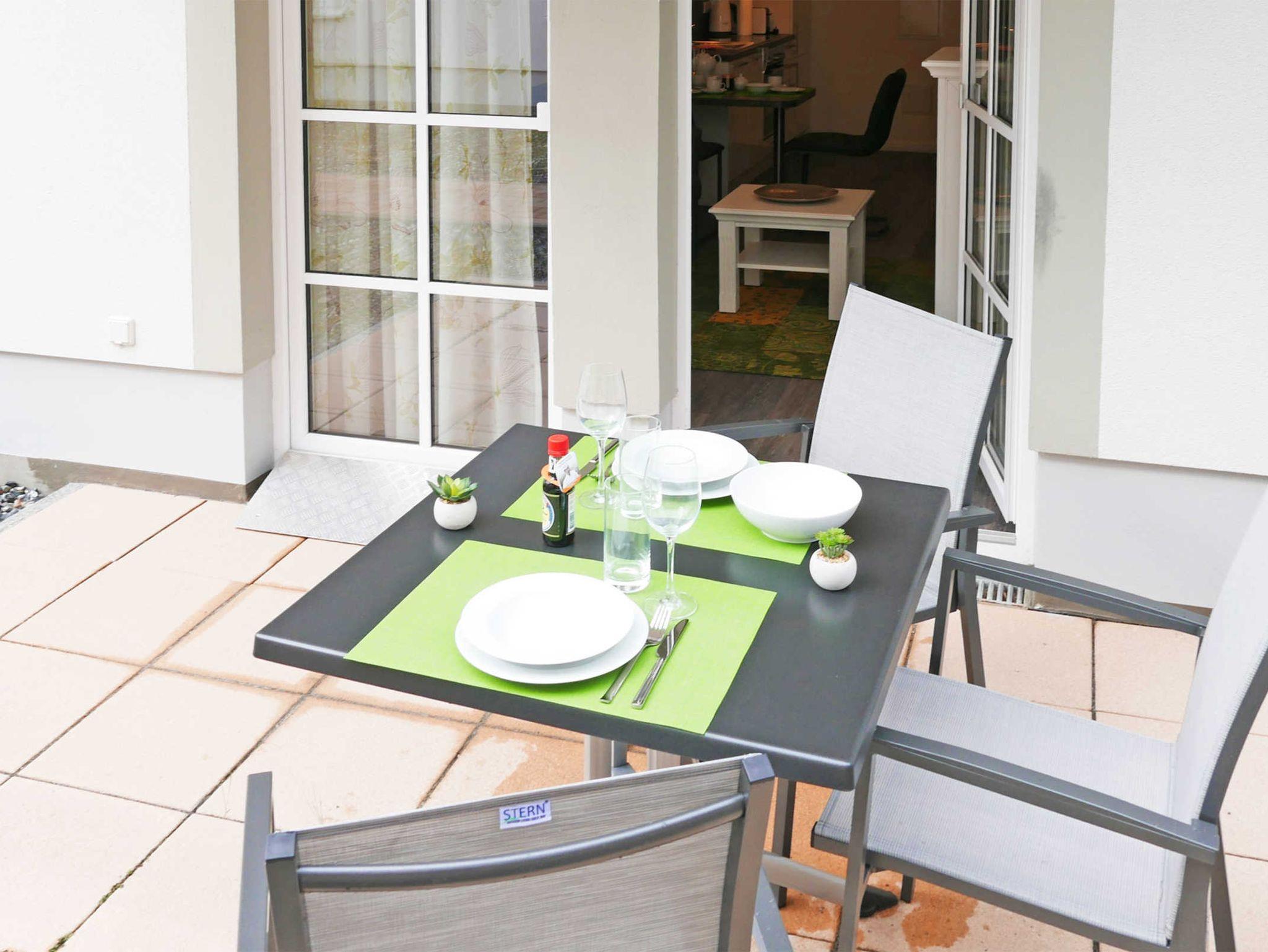 Die 2-Zimmer-Ferienwohnung für 2 Personen liegt im Erdgeschoß im Haus Meeresblick in direkter Strandnähe.
