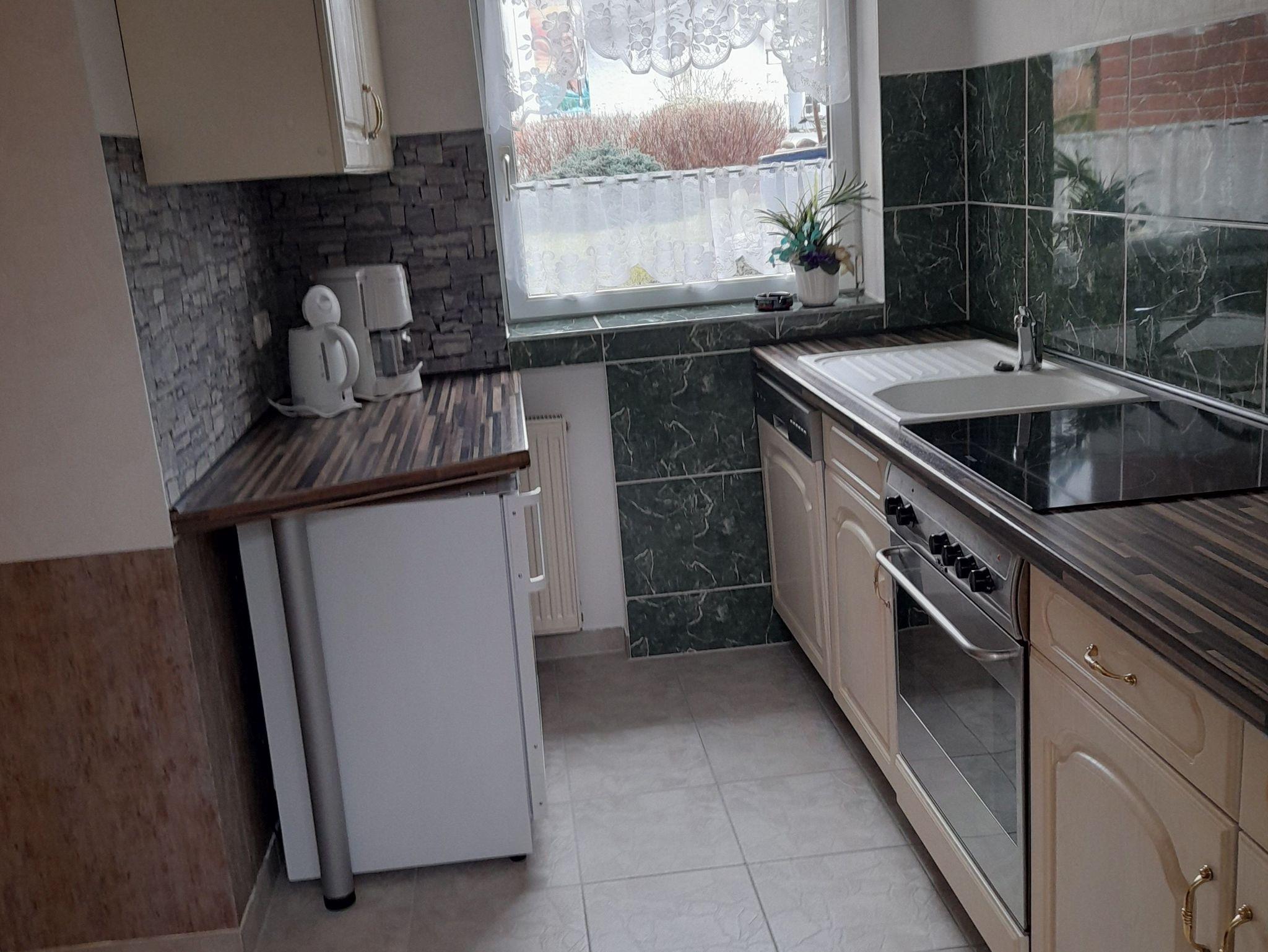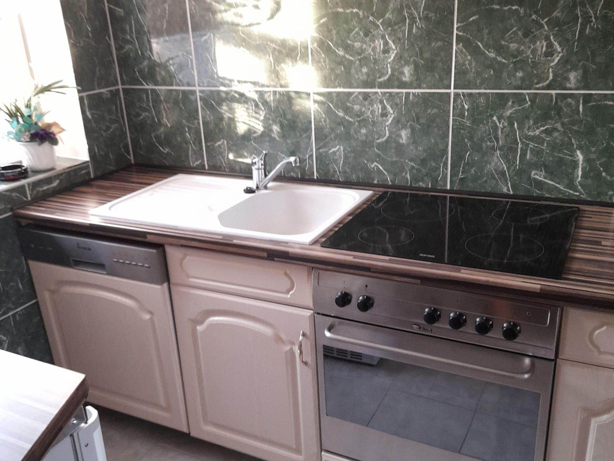 Küche mit Herd, Geschirrspüler, Mikrowelle, Kühlschrank, Kaffeemaschine ….