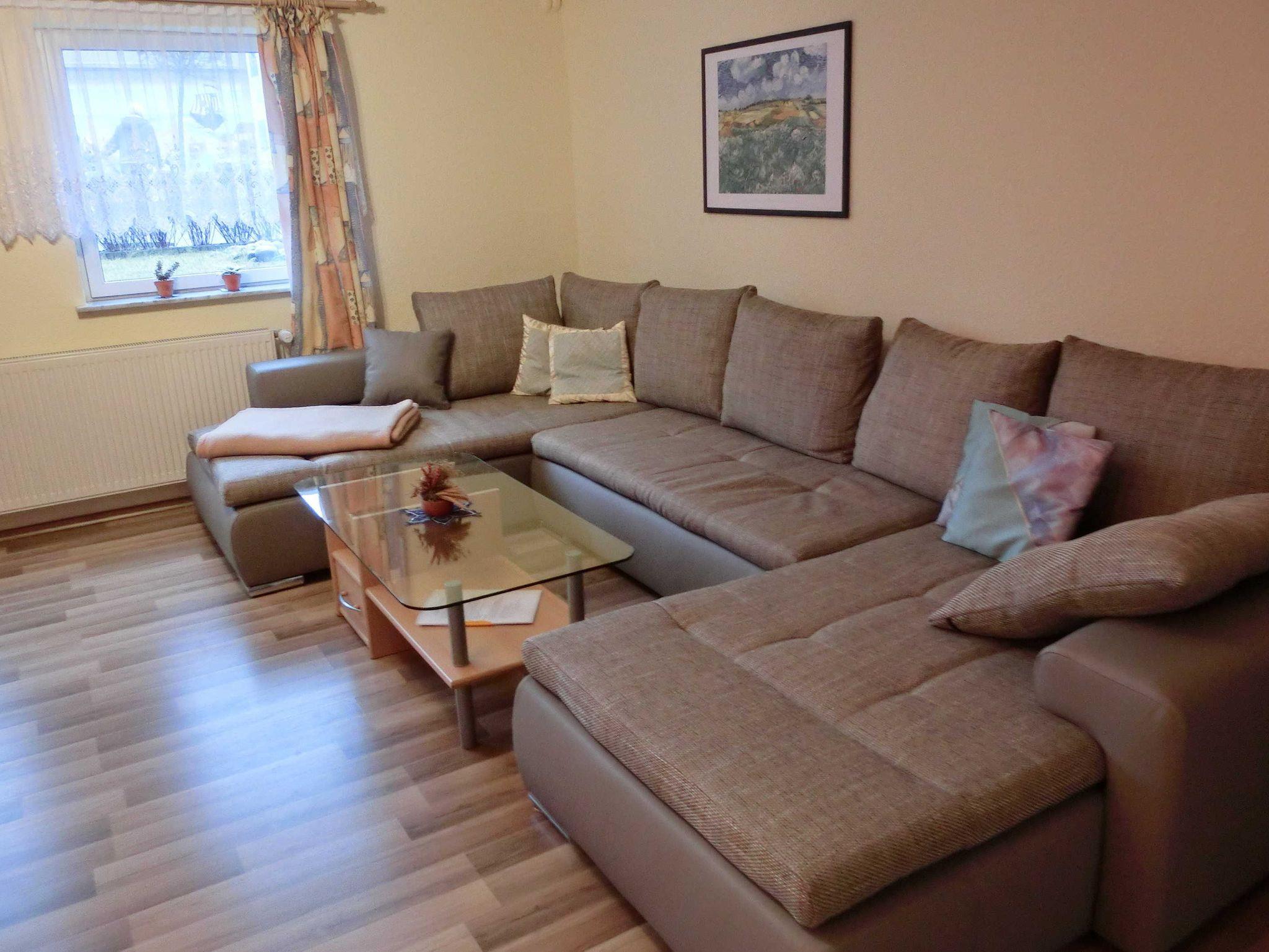 Großer Wohnraum mit Essecke, Eckcouch mit Ottomane, TV /CD