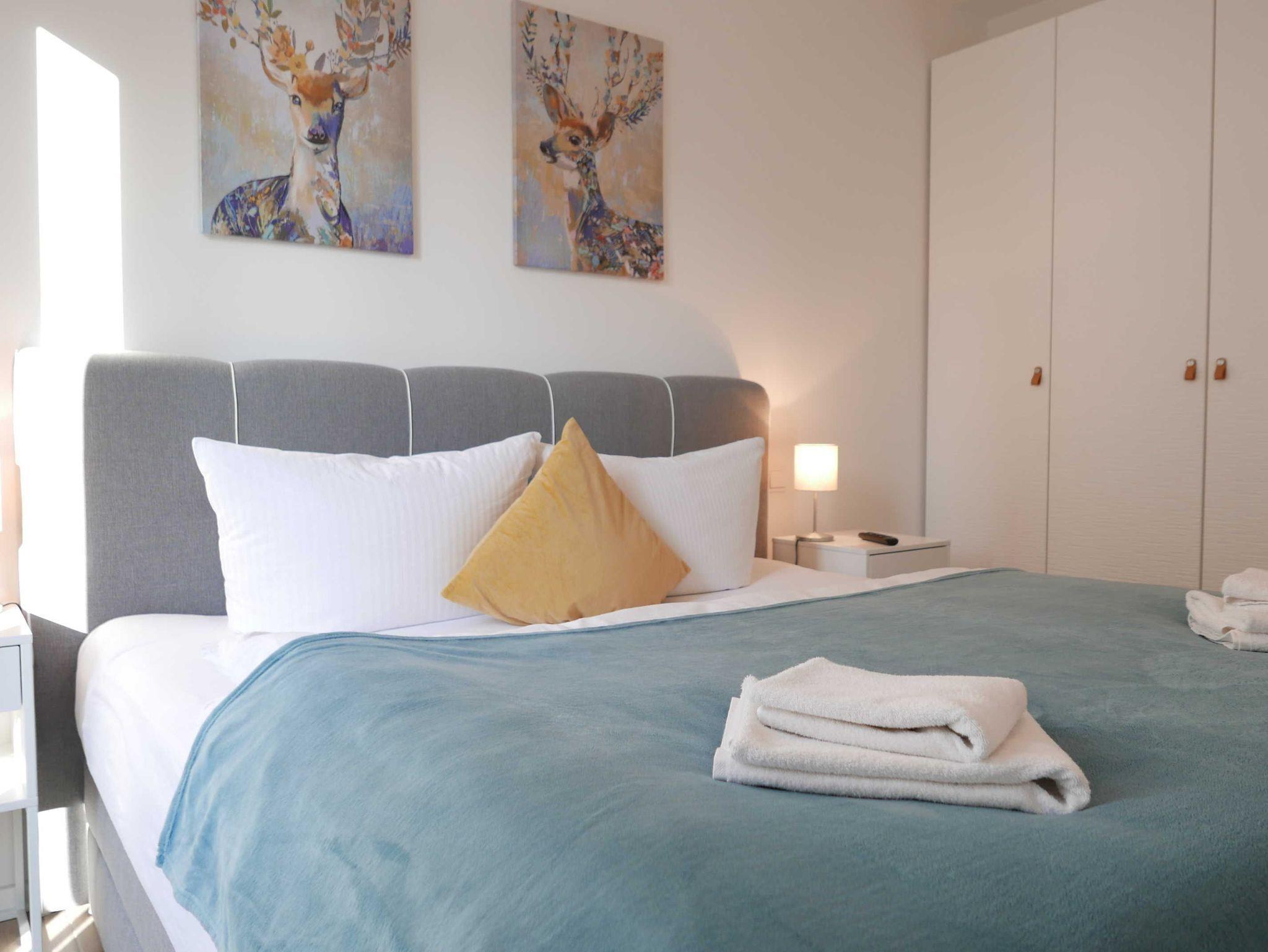 Freuen Sie sich auf erholsame Tage in dieser exklusiven 2-Zimmer-Ferienwohnung, die sowohl mit seitlichem Meerblick als auch mit einer privaten Farblichtsauna auftrumpft. In dem wohligen Wohnzimmer mit dimmbaren Lichtschaltern und integrierter Küchenzeile befindet sich neben einem gemütlichen Esstisch auch ein großes Schlafsofa für 1 Person (ausgezogen mit den Maßen 150 x 200 cm).