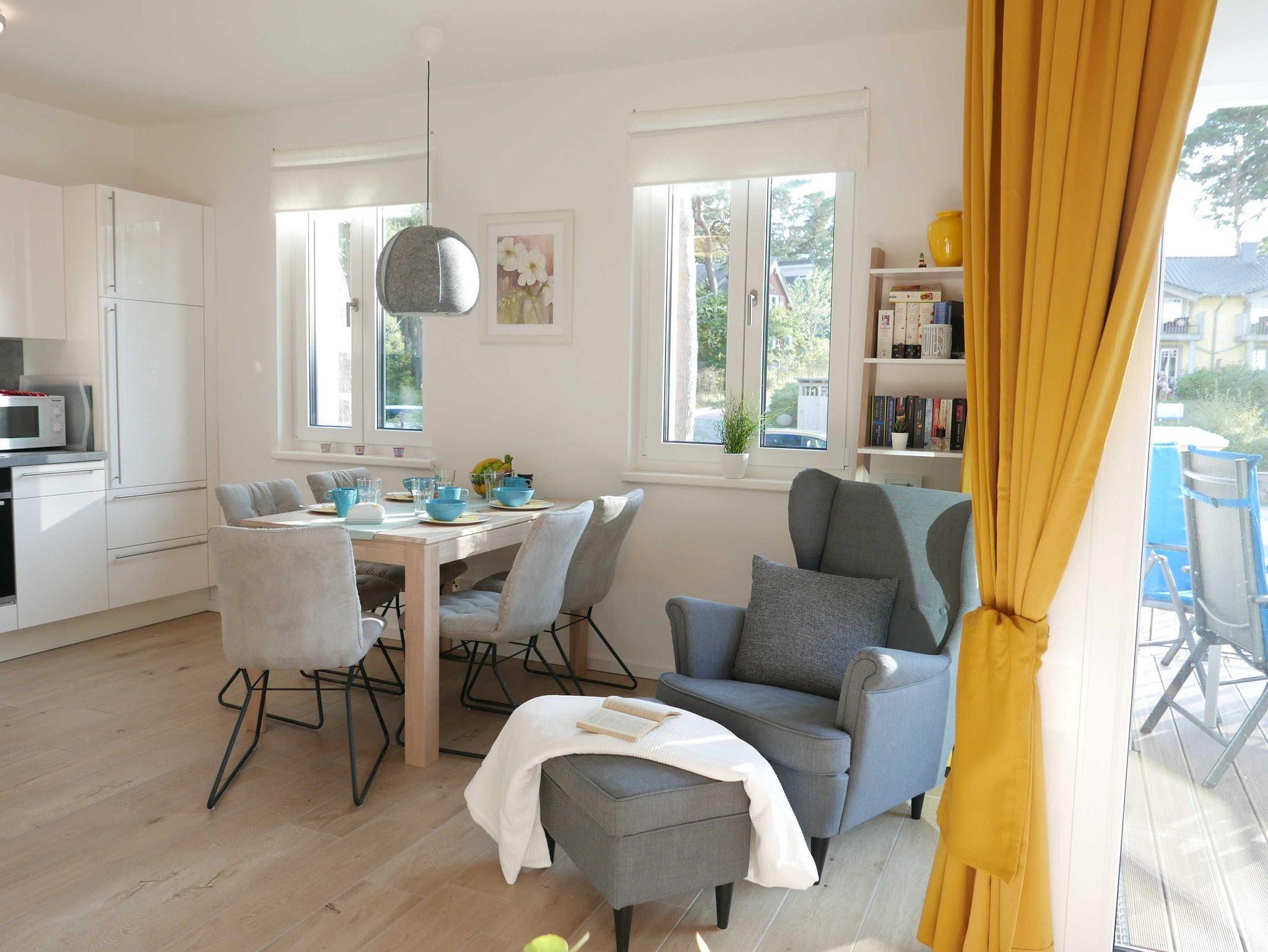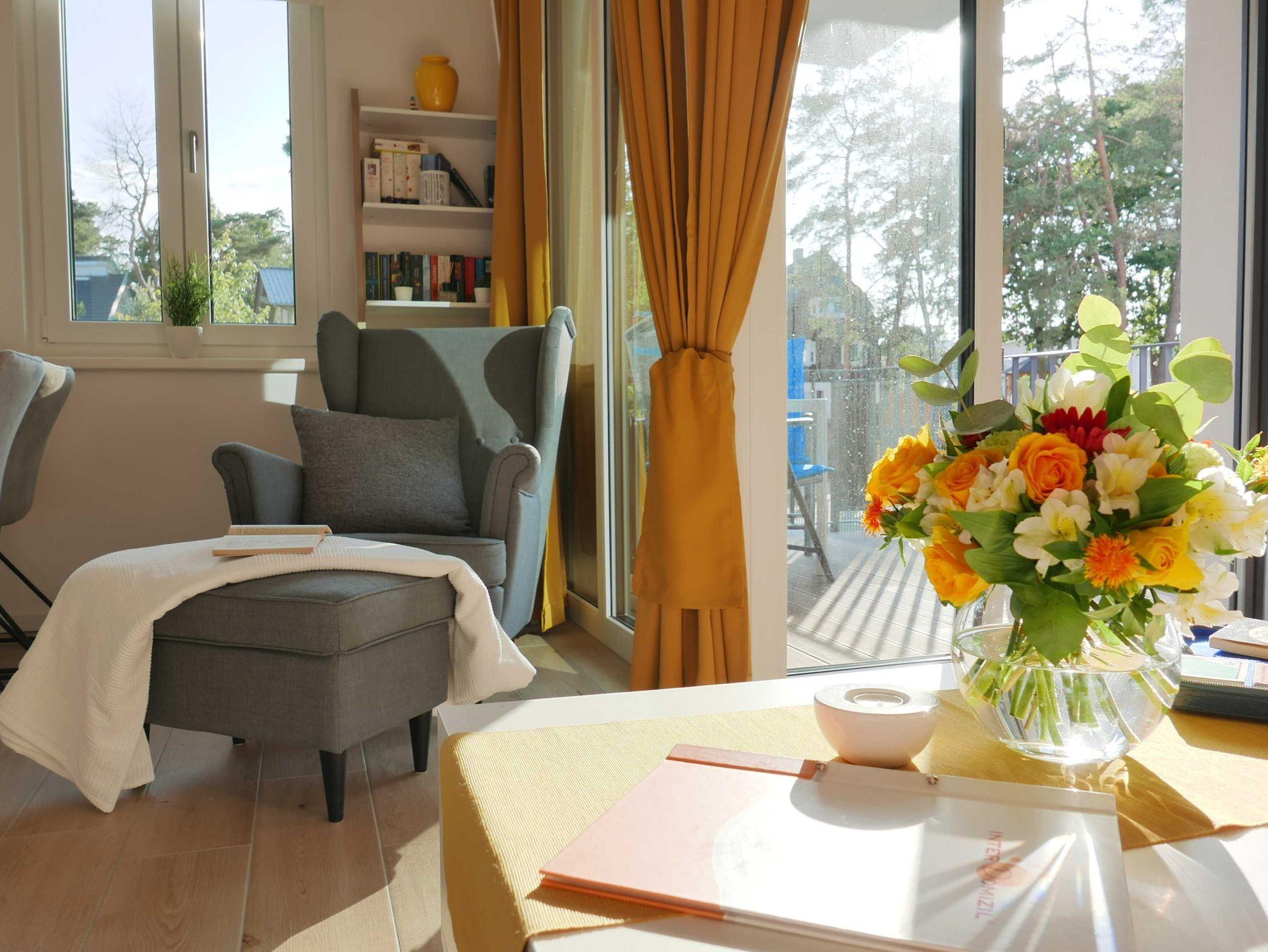 Exklusive 2-Zimmer-Ferienwohnung in Baabe mit seitlichem Meerblick und privater Sauna nahe dem Strand.