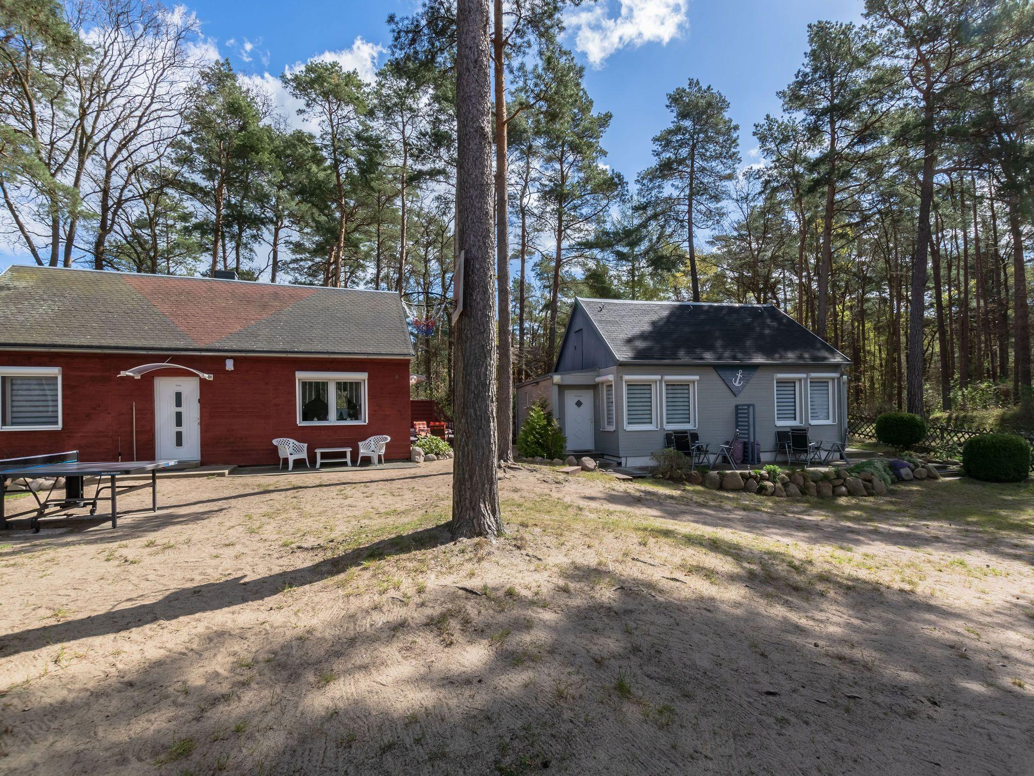 Auf einem 1.100 m² komplett umzäunten Grundstück, welches für alle Gäste der Anlage nutzbar ist, stehen 4 Ferienhäuser. Diese beherbergen die insgesamt 7 Wohnungen. Die gemütlichen Ferienwohnungen können 4, in einer Wohnung sogar 6 Personen beherbergen. Das Grundstück befindet sich im Kiefernwald mit viel Strandsand. Natur pur! Um die Natürlichkeit des Grundstücks zu erhalten, wurde auf Gehwegpflasterung so weit es ging verzichtet. Jede Wohnung hat eine eigene Terrasse mit Gartenmöbel und Holzkohlegrill. Für Fahrräder steht ein überdachter Fahrradständer bereit. Dort haben Sie die Möglichkeit, Ihr E-Bike kostenlos aufzuladen. Zu jeder Ferienwohnung stellen wir 1 PKW-Parkplatz kostenlos zur Verfügung. Diese befinden sich direkt vor dem Grundstück. Außerdem stellen wir kostenloses W-Lan zur Verfügung (dem Ort Baabe entsprechende Höchstleistung).