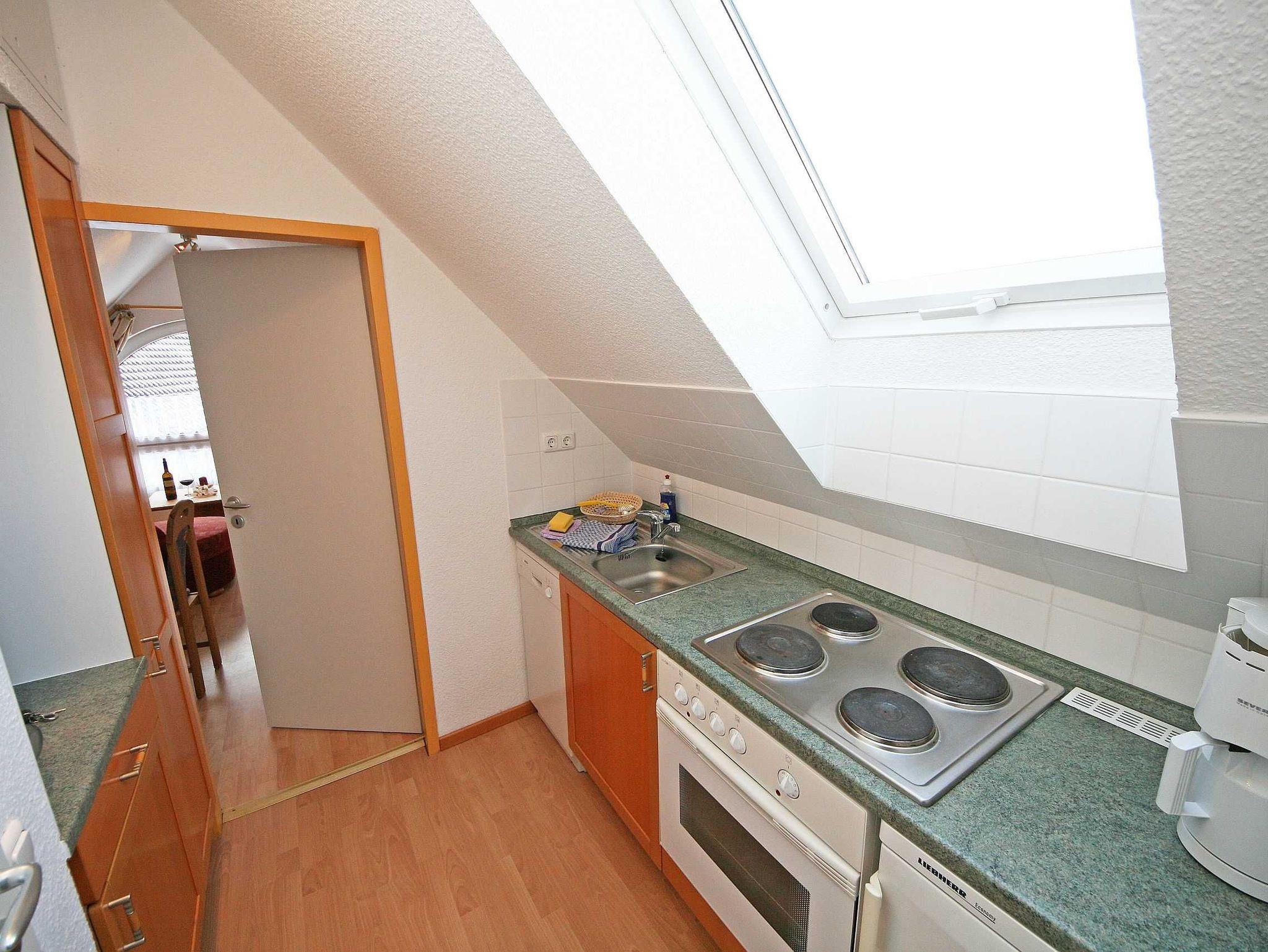 Gemütliche Ferienwohnung im Bäderstil mit Panoramafenster und moderner Komfortküche in Baabe auf Rügen.