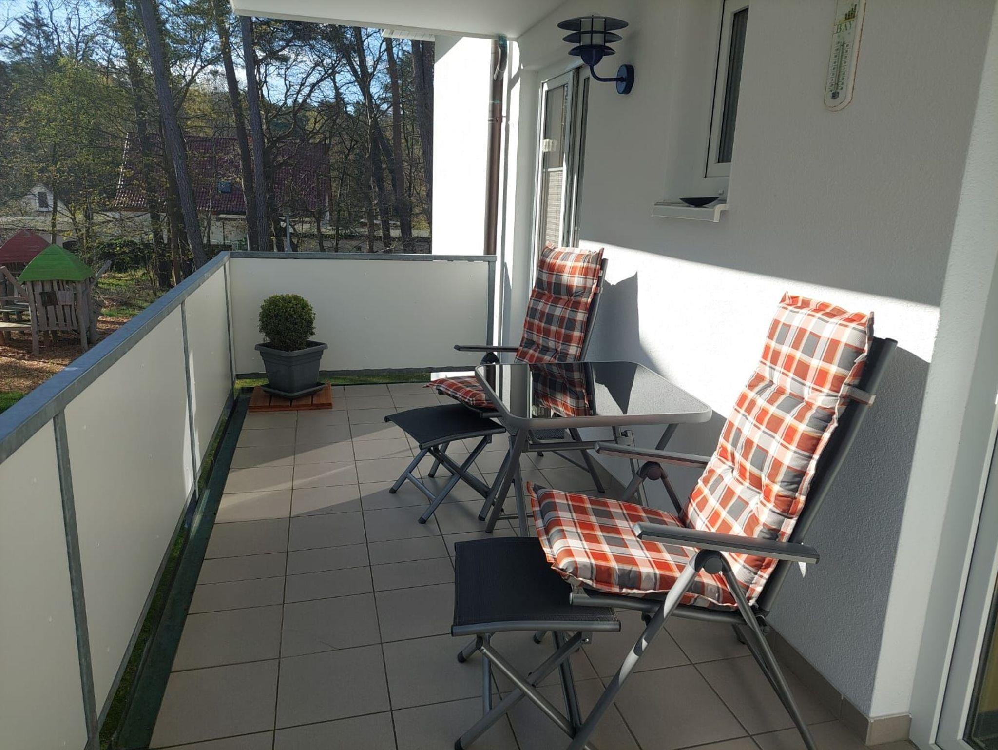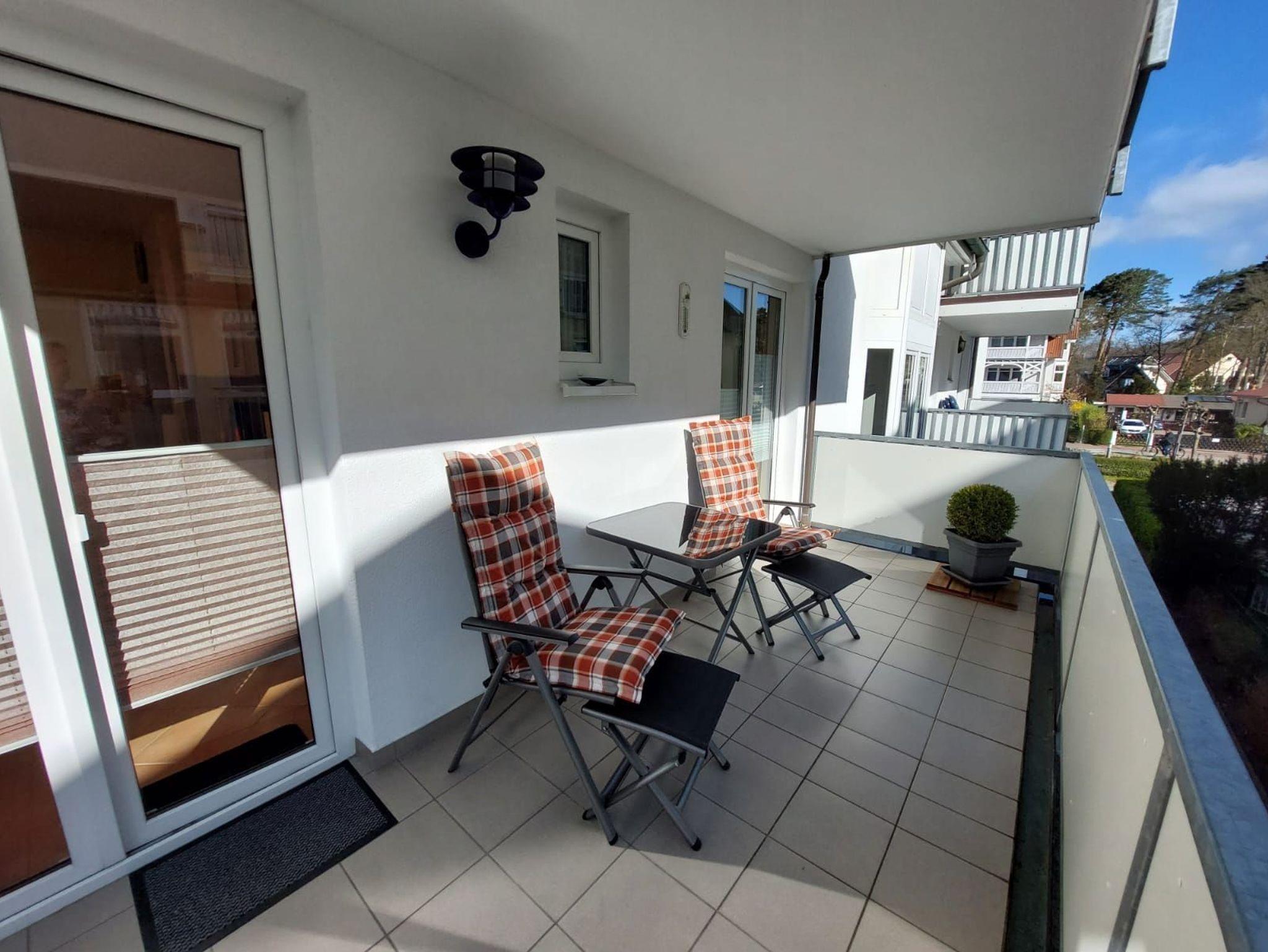 Moderne Ferienwohnung Strandvogel 3 in Baabe, ruhig gelegen, 400 m vom Ostseestrand, mit Balkon, WLAN und Tiefgaragenstellplatz.