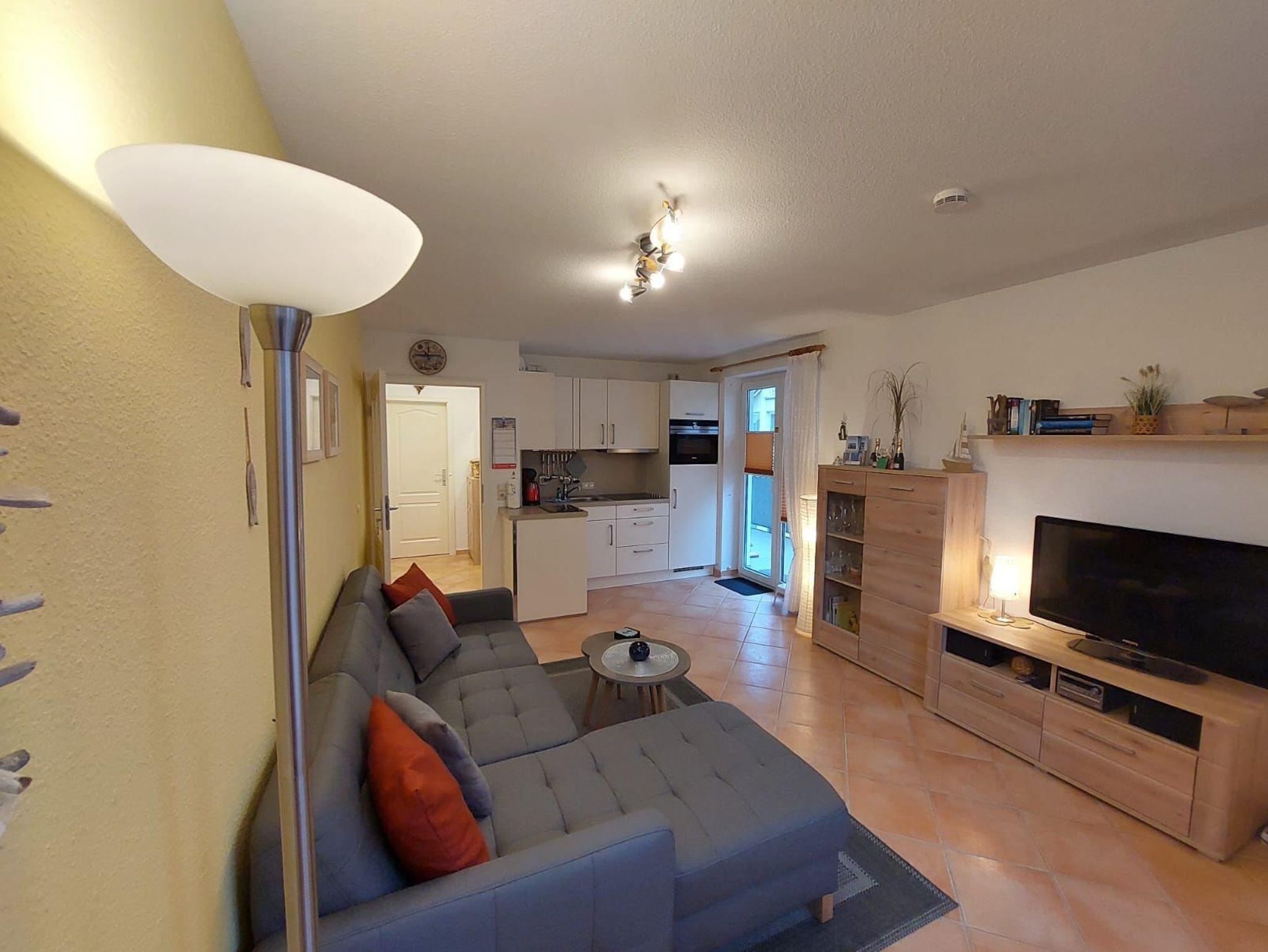 Die moderne und maritim eingerichtete NICHTRAUCHER-Ferienwohnung Strandvogel 3, 41 qm, max. 2 Gäste, Wohnzimmer, Schlafzimmer, Bad/Dusche, Küchenzeile im WZ, Lift, WLAN, Balkon) liegt angenehm ruhig in der ersten Etage eines 2001 errichteten Appartementhauses, nur etwa 400 m vom feinsandigen Badestrand an der Ostsee.