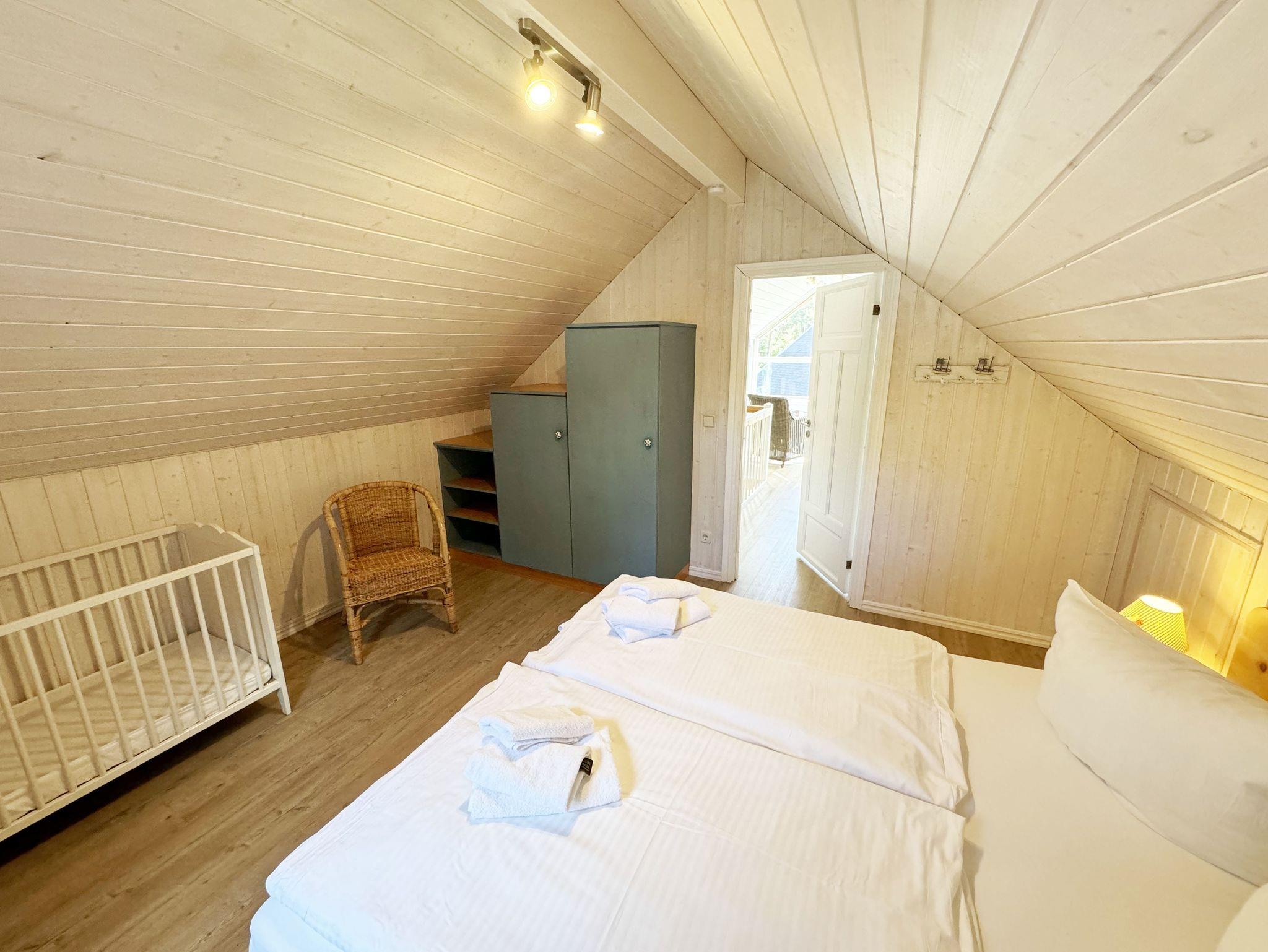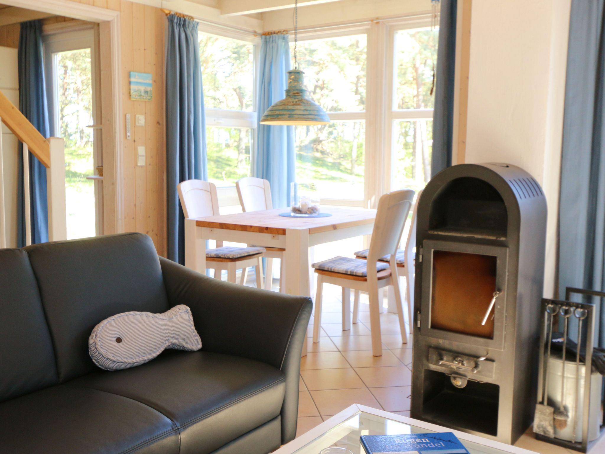 Das haustierfreie Nichtraucherferienhaus „Sandkörnchen“ bietet ausreichend Platz für 4 Erwachsene und 1 Kleinkind bis 3 Jahre im Kinderbett. Das 80 qm große Holzhaus in typisch skandinavischem Stil ist sehr liebevoll ausgestattet und bietet eine hochwertige Einrichtung auf zwei Etagen. Es erwartet Sie im Erdgeschoss ein großer Wohn- und Essbereich mit Kaminofen und Smart-TV, Blu Ray-Player sowie ein DAB-Radio-CD-Player. Auch auf einen Internetanschluss über WLAN brauchen Sie im Urlaub nicht verzichten. Dieser ist für Sie inklusive. Zwei gemütliche Ledercouchen mit Couchtisch und einem Sideboard garantieren entspannende Abende. Insektenschutzgitter befinden sich im Erdgeschoss sowie der Terrassentür. Der lichtdurchflutete stilvolle Essbereich mit Vollholzmöbeln bietet Ihnen ausreichend Platz für 4 Personen. Die moderne Einbauküche ist ausgestattet mit allem was man für das alltägliche Leben braucht. Deshalb gehören ein Kühlschrank mit Gefrierfach, ein Backofen mit Ceranfeld und Dunstabzug, eine Mikrowelle, eine Spülmaschine, ein nickelfreier Wasserkocher, eine Kaffeemaschine, eine Senseo Padmaschine, ein Toaster, ein Eierkocher, ein Mixer, Teekannen, reichlich Geschirr und Gläser sowie selbstverständlich alle weiteren Utensilien zum Kochen und Essen zum Inventar. Ebenfalls Teil des Erdgeschosses ist ein Schlafzimmer mit einem Doppelbett (1,80 m x 2,00 m) mit hochwertigen Kaltschaummatratzen und verstellbaren Lattenrosten, einem Nachtschrank und einer Nachttischablage sowie einem dreitürigen Kleiderschrank mit Spiegel. Insektenschutzgitter und Verdunklungsplissees sorgen hier für einen ruhigen, erholsamen Schlaf. Das großzügige Bad mit ebenerdiger Dusche, Eckbadewanne, Sauna, Waschmaschine, Handtuchtrockner, Fön und großem Waschtisch wird Sie begeistern. Sie erreichen es vom Flur aus, welcher mit Schuhschrank, Garderobe und Spiegel möbliert ist. Im Wohnbereich sowie im Bad sorgt die Fußbodenheizung für angenehme Wärme. In der 1. Etage befindet sich eine helle Galerie mit großer Fensterfront und gemütlicher Sitzecke, kleinem Tisch und Leselampe mit Blick zum Meer und in den Kiefernwald. Das zweite Schlafzimmer, gemütlich unter Dachschrägen, ist von hier aus erreichbar. Es ist mit einem Massivholzbett (1,60 m x 2,00 m), verstellbare Lattenroste, 2 Nachttischablagen, einem stabilen Kinderbett sowie einem Kleiderschrank ausgestattet. Das Fenster ist auch hier mit einem Verdunklungsplissees und Insektenschutzgitter versehen. Für unsere kleinen Gäste stehen 1x Hochstuhl und 1x stabiles Kinderbett (ohne Bettinlett) inklusive zur Verfügung. Haustiere sind im Haus nicht erlaubt. Auf der großzügigen bestuhlten Holzterrasse (Südost/West) haben ein Strandkorb (Mai-September), Sonnenliegen und ein Sonnenschirm zusätzlich ihren Platz gefunden. Eine angenehme Wärme wird durch Infrarotheizkörper ausgestrahlt. Für Ihre Räder befindet sich am Haus ein Fahrradständer. Im Anbauschuppen können Sie diverse Strandutensilien unterbringen. Ein PKW-Stellplatz (Nr. 271) befindet sich direkt vor dem Haus. Ab einem Aufenthalt von 7 Nächten, ist ein Sack Kaminholz in der Zeit vom 01.Oktober bis 30. April für Sie inklusive. Die Erstausstattung eines Wäschepaketes (komplette Bettwäsche, 1 Duschhandtuch, 2 kleine Handtücher) können Sie bis 14 Tage vor Anreise gegen einen Aufpreis dazu buchen oder durch eigene ergänzen. Ab 2 gebuchten Paketen erhalten Sie einmalig 1 Geschirrhandtuch und 1 Duschvorleger hinzu.