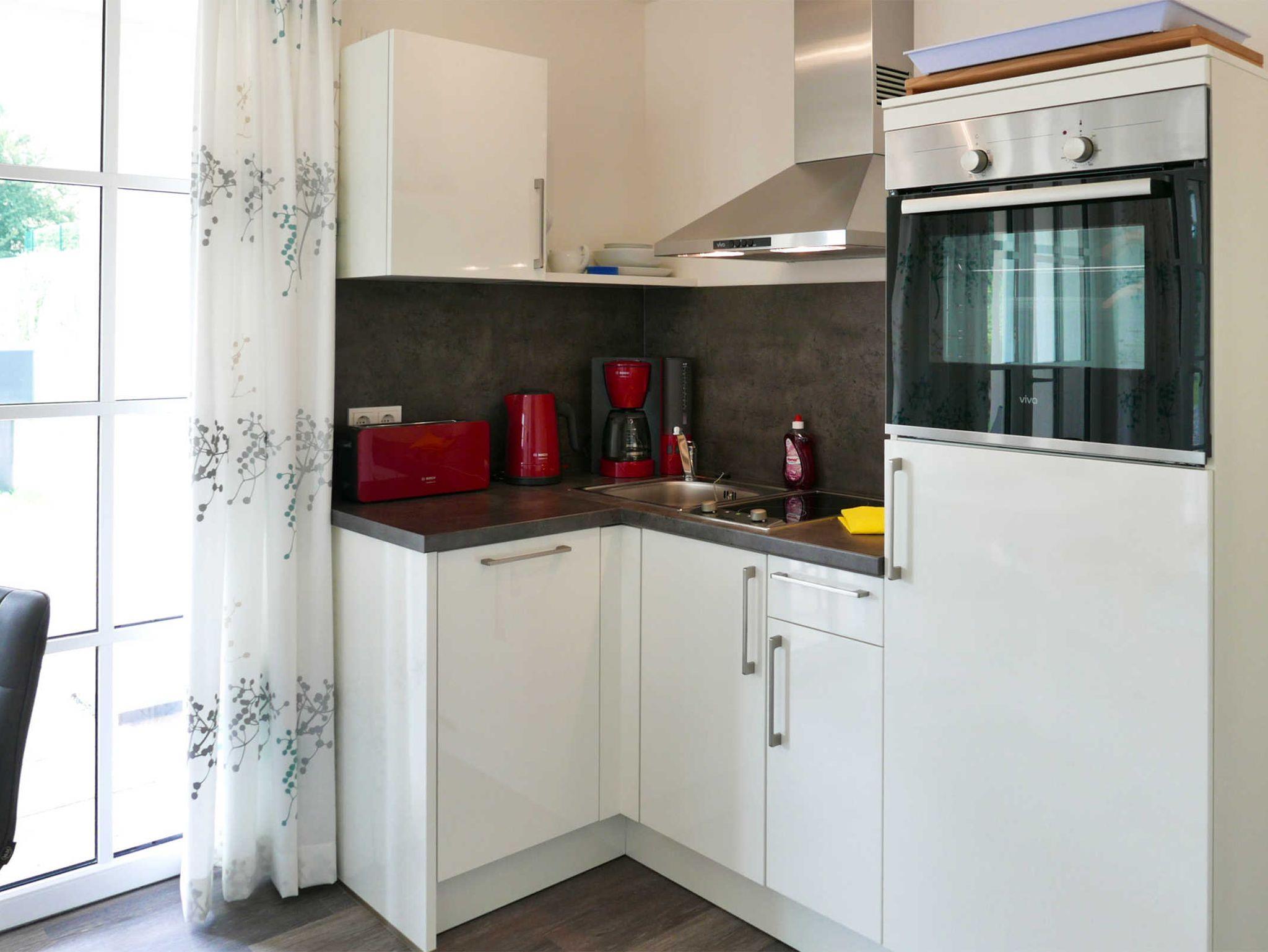 Die 2-Zimmer-Ferienwohnung für 2 Personen liegt im Erdgeschoss des Hauses. Von hier haben Sie einen direkten Zugang zum Strand. Das Schlafzimmer ist mit einem hochwertigen Boxspringbett (180 x 200 cm) ausgestattet. Der Wohn-/Essbereich verfügt über eine moderne Küchenzeile, einem Essplatz sowie einem gemütlichen Sofabereich. Auf der großzügigen Terrasse lässt sich herrlich frühstücken. Die Wohnung ist stufenfrei und allergikerfreundlich.