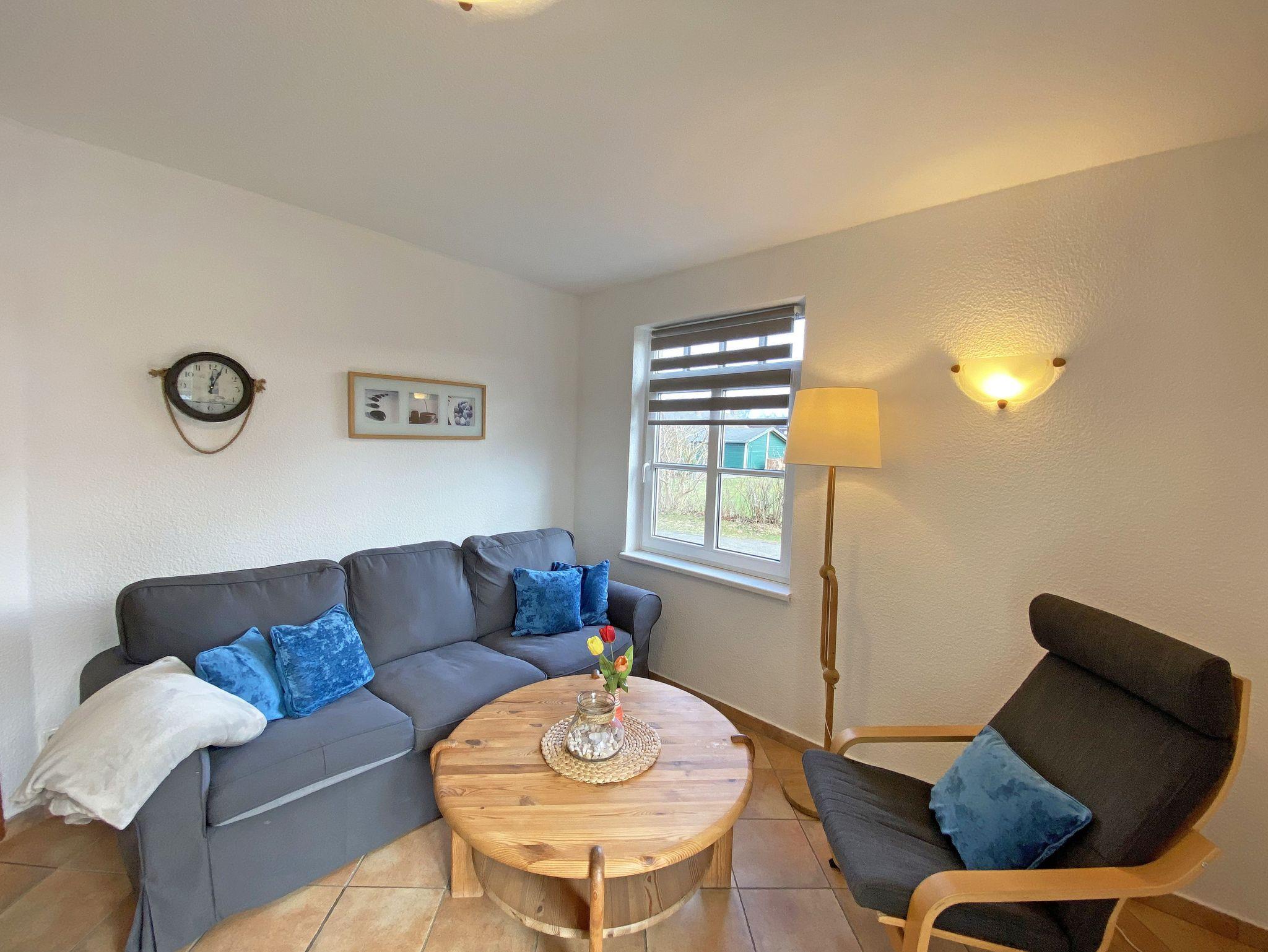 Herzlich Willkommen in Haus Rügenwind! Die 55qm große komfortable und voll ausgestattete 3-Zimmer Ferienwohnung in ruhiger Lage (Nichtraucher, 3 Erwachsene, 1 Kind bis 17 J.) befindet sich im Erdgeschoss mit einem im Bäderstil gestalteten überdachten Terrassenbereich (Südseite) sowie umliegender Grünfläche. Gartentisch, Gartenstühle sowie 2 Sonnenliegen vervollständigen Ihren Außenbereich. Grillen auf Ihrer Terrasse ist gestattet. Büsche und ein Sichtschutz zur Nachbarwohnung wahren Ihre Privatsphäre. Die Wohnung ist in allen Räumen mit Fußbodenheizung ausgestattet. Der Wohnbereich ist im Rügener Stil mit einer gemütlichen Couch, Korbsessel, Tisch, Sideboard sowie LCD-SatTV in HD-Qualität und CD-Player mit Radio ausgestattet. Ihr Essbereich mit großem Tisch und vier Stühlen befindet sich direkt zwischen Terrasse und dem offenen, aber separaten Kochbereich, der mit 4 Kochplatten, Kühlschrank mit ***Gefrierteil, Geschirrspüler, Backofen, Mikrowelle, Kaffeemaschine, Toaster, Wasserkocher, usw. voll ausgestattet ist. Das große Schlafzimmer verfügt über ein Doppelbett (2x90x200cm) in angenehmer Liegehöhe mit hochwertigen Matratzen in Hotel-Qualität und je einem eigenen Nachttisch mit Lampe. Der 2m breite Kleiderschrank (Spiegeltüren) bietet ausreichend Platz für Ihre gesamte Kleidung. Das Fenster kann zur Nacht mit einem hochwertigen dichten Rollo zuverlässig abgedunkelt werden. Das zweite Schlafzimmer ohne Kleiderschrank ist mit zwei Einzelbetten über Eck ausgestattet (je 80x200 cm), wovon eins erhöht eingebaut ist (98 cm hoch). Leselampen, 2 Hocker und ein Schubladenelement und eine Verdunklung runden die Einrichtung ab. Das Tageslicht-Badezimmer ist mit einer Glas-Dusche, Toilette, Fön, Handtuchhalter-Heizung und einem großen Waschtisch mit reichlich Ablageflächen ausgestattet. Der große eingelassene Spiegel bietet Platz für 2 Personen. Durch die massive Bauweise mit Kalksandstein bietet Haus Rügenwind zu jeder Jahreszeit ein angenehmes Raumklima und zusätzlich den idealen Schallschutz zwischen den Wohnungen. Zusätzlicher Service ist WLAN, welches Sie während des gesamten Aufenthaltes komplett kostenfrei nutzen dürfen. In einem Gemeinschaftsraum finden Sie zusätzlich eine Waschmaschine (Münzgeräte) (in den Monaten: November bis Ende März nicht im Betrieb). Für eine Kleinkind-Aufbettung (inklusive) stehen ein Kinderreisebett (mit Matratze, ohne Bett Inlett) sowie ein Hochstuhl für Sie bereit. Direkt am Haus befindet sich Ihr Parkplatz Nr. 2 (inklusive). Für Ihre Fahrräder gibt es direkt hinter dem Haus ebenfalls einen geeigneten Stellplatz. Haustiere sind gegen eine Gebühr willkommen, dürfen jedoch nicht die Schlafräume betreten. Die Erstausstattung eines Wäschepaketes (komplette Bettwäsche, 1 Duschhandtuch, 2 kleine Handtücher) können Sie bis 14 Tage vor Anreise gegen einen Aufpreis dazu buchen oder durch eigene ergänzen. Ab 2 gebuchten Paketen erhalten Sie einmalig 1 Geschirrhandtuch und 1 Duschvorleger hinzu. Wir freuen uns auf Ihren Besuch!