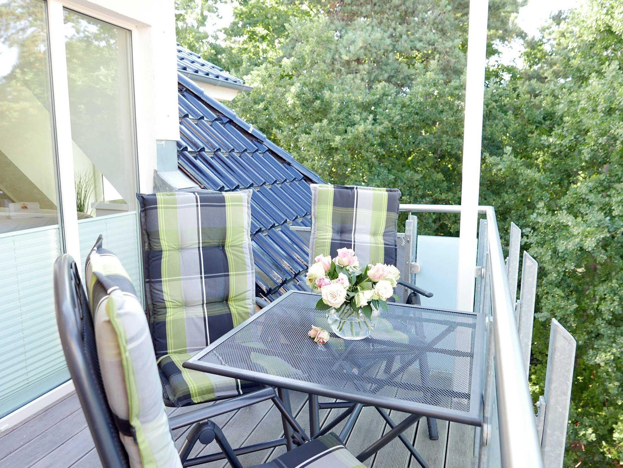 Lichtdurchflutete 3-Zimmer-Ferienwohnung für bis zu 6 Personen mit tollem Balkon, hier hat man einen herllichen Blick über die Dächer des Ostseebad Baabe.