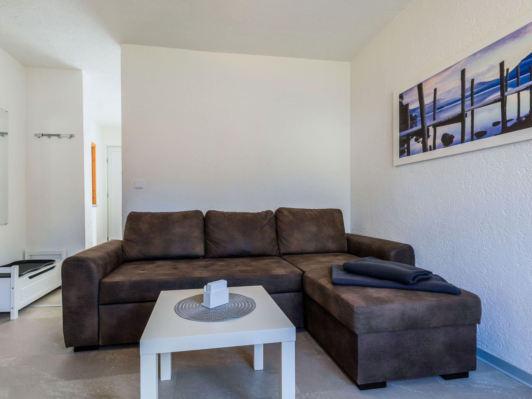 Der gemütliche Wohnbereich überzeugt mit einer Couchgarnitur, einem Fernseher und einem Radio. Zudem können hier 2 weitere Personen auf dem Schlafsofa die Nächte verbringen.