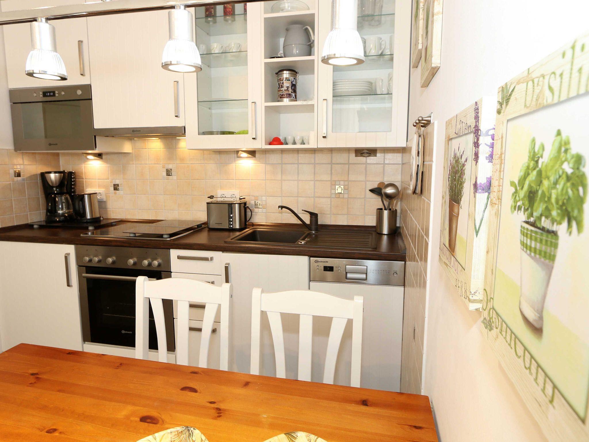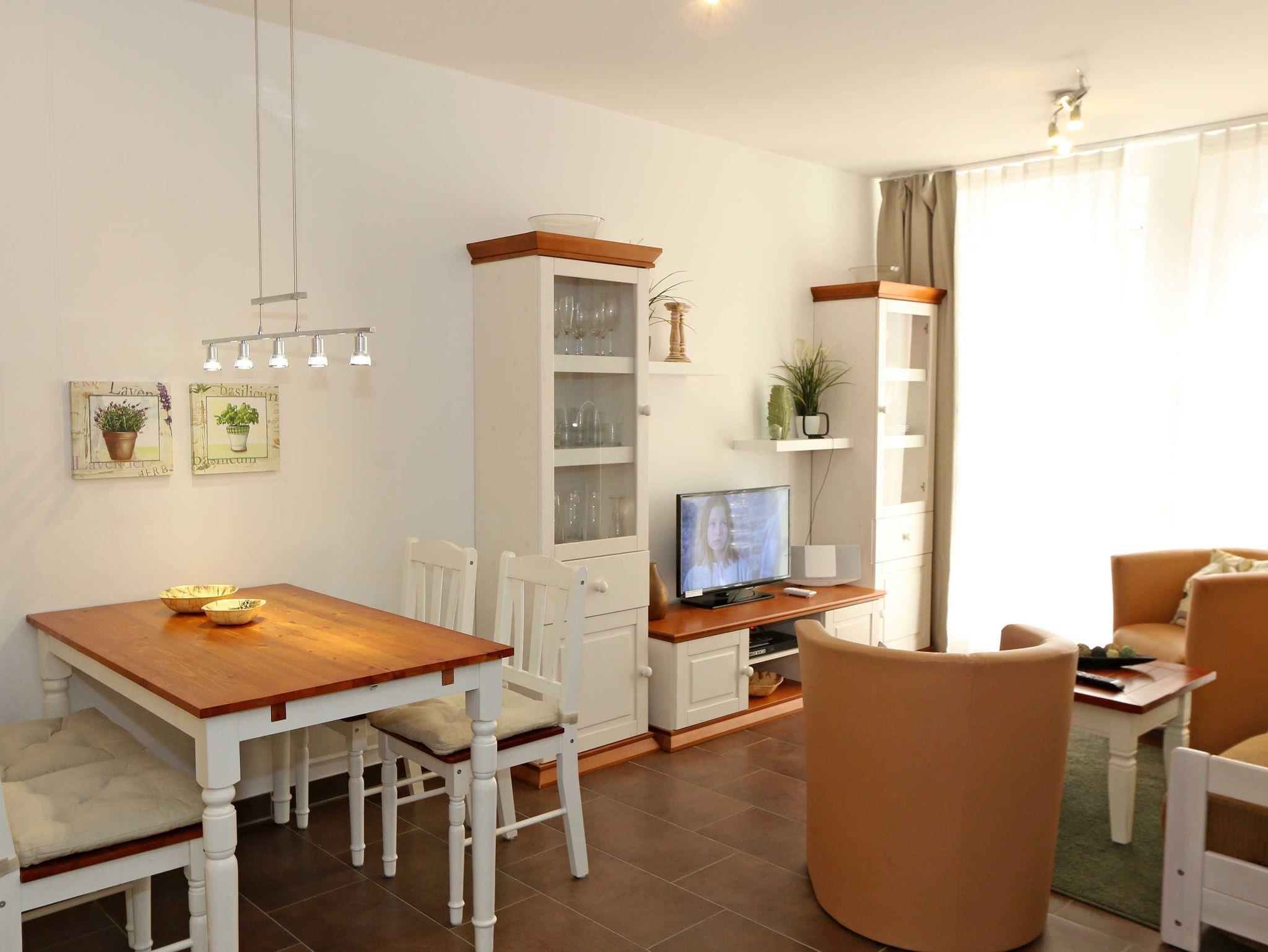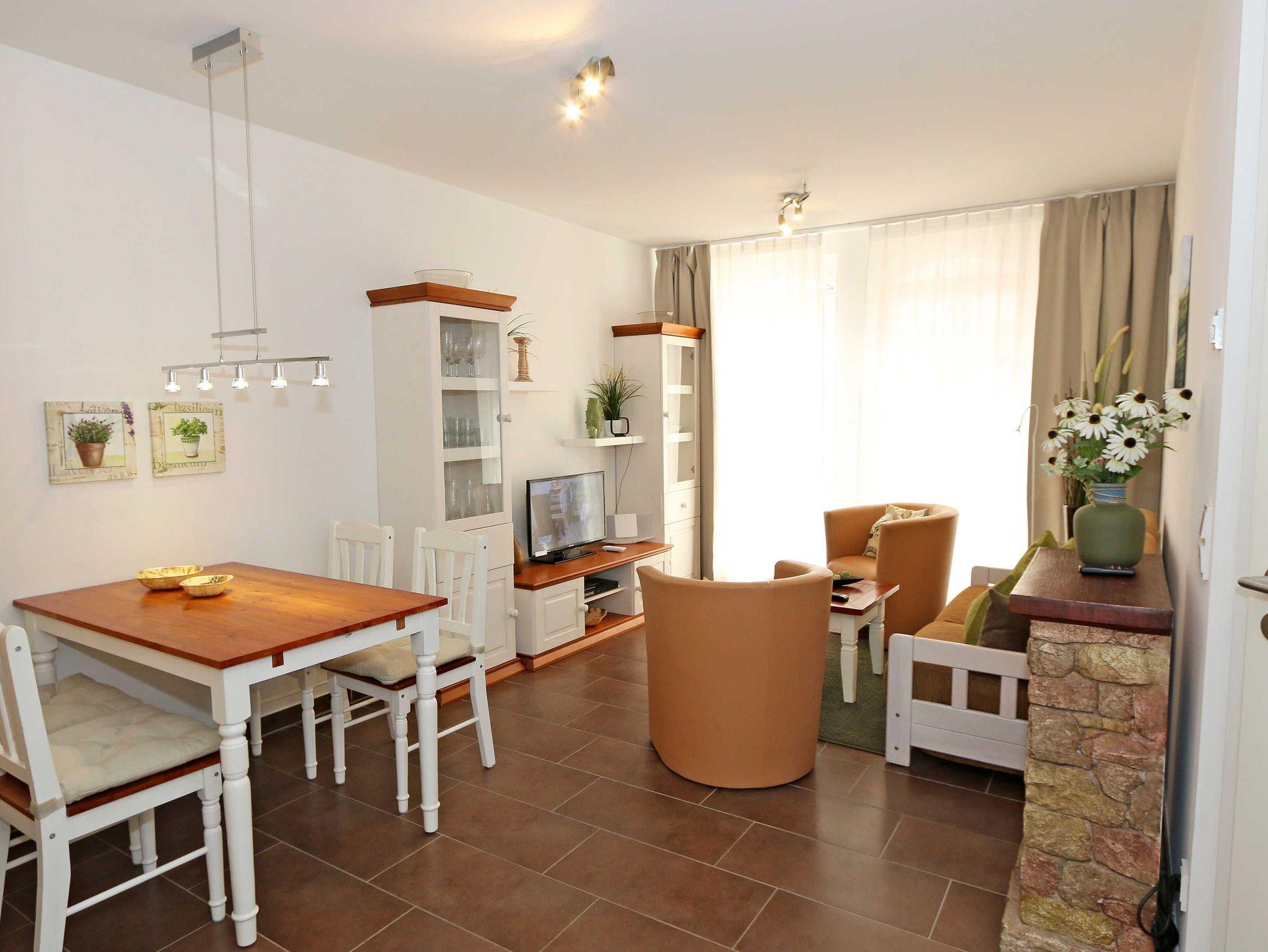 Ihre Nichtraucher/Ferienwohnung ist mit viel Liebe zum Detail ausgestattet und eingerichtet worden. Sie wohnen in einer ca. 40 qm 2-Zimmer Wohnung, die für 2 bis 4 Personen ausgelegt ist. Die Wohnung A.0.04 befindet sich im Erdgeschoss und ist per Fahrstuhl von der Tiefgarage bequem zu erreichen. In der Wohnung finden Sie einen kombinierten Wohn/Koch- und Essbereich. Die integrierte Küchenzeile lässt mit Mikrowelle, Backofen, Ceranfeld, Spülmaschine, Kühlschrank mit Gefrierfach, Kaffeemaschine, Nespresso Maschine und anderen praktischen Hilfsutensilien keine Wünsche offen. Im Wohnbereich ist eine Essecke, eine gemütliche Couch, die in wenigen Handgriffen zur 2. Schlafstätte umfunktioniert werden kann (1,60m x 2,00m), ein Couchtisch, eine Stehlampe, 2 Vitrinen, ein Sideboard mit Smart-TV, DVD-Player und eine Musikanlage vorhanden. Auch auf einen Internetanschluss (WLAN) müssen Sie im Urlaub nicht verzichten. Dieser ist für Sie inklusive! Die Terrasse ist vom Wohn/Essbereich begehbar und komplett möbliert. Ein Strandkorb gehört auf Ihrer Terrasse von April bis Oktober für Sie dazu. Das Schlafzimmer ist mit einem Doppelbett (1,80m x 2,00m), Nachttischkonsolen mit Beleuchtung, einem Kleiderschrank, eine Kleiderablage, einen Safe und ein 2. Smart-TV ausgestattet. Das Bad verfügt über eine ebenerdige Dusche, einen Waschplatz, ein WC, ein Handtuchheizkörper, ein Kosmetikspiegel sowie einen festinstallierten Fön. Im Abstellraum befinden sich Reinigungsutensilien sowie ein Wäscheständer. Ein eigener PKW-Stellplatz (Nr.81, Einfahrtshöhe 2,00 m) befindet sich in der Tiefgarage des Hauses. Im Keller des Hauses haben Sie die Möglichkeit eine Waschmaschine/Trockner gegen Gebühr zu nutzen. Keine Haustiere erlaubt!! (Menschen mit Tierhaarallergie vor Buchung der Wohnung Kontakt mit dem Vermieter aufnehmen). Mit dem Fahrstuhl des Hauses A gelangen sie in das Untergeschoss der Meeresblickanlage, wo Sie ein großzügiger und heller Wellnessbereich erwartet. Hier können sie in einem Pool kleine Bahnen schwimmen, in 2 Saunen Ihren Kreislauf in Schwung bringen, in einem dazugehörigen Ruheraum Ihren Körper wieder beruhigen, in einer Schneckendusche sowie weiteren Duschen das kühle Nass genießen und auf einer Außenterrasse mit Außendusche die frische Luft einatmen. Die Erstausstattung eines Wäschepaketes (komplette Bettwäsche, 1 Duschhandtuch, 2 kleine Handtücher) können Sie bis 14 Tage vor Anreise gegen einen Aufpreis dazu buchen oder durch eigene ergänzen. Ab 2 gebuchten Paketen erhalten Sie einmalig 1 Geschirrhandtuch und 1 Duschvorleger hinzu.