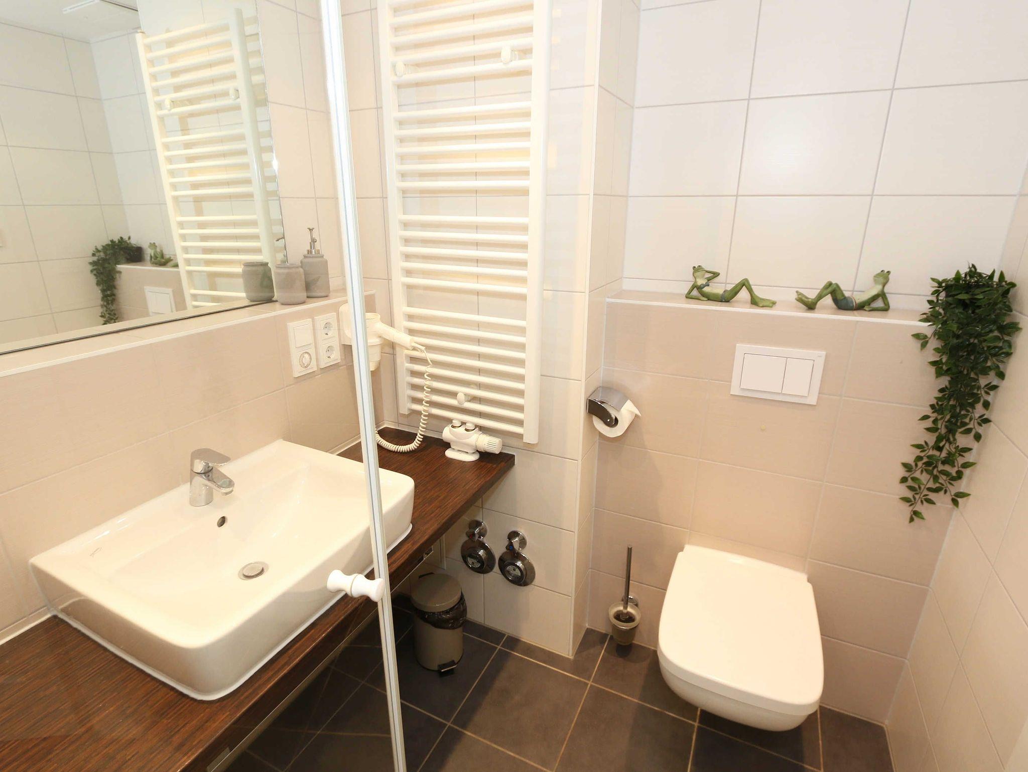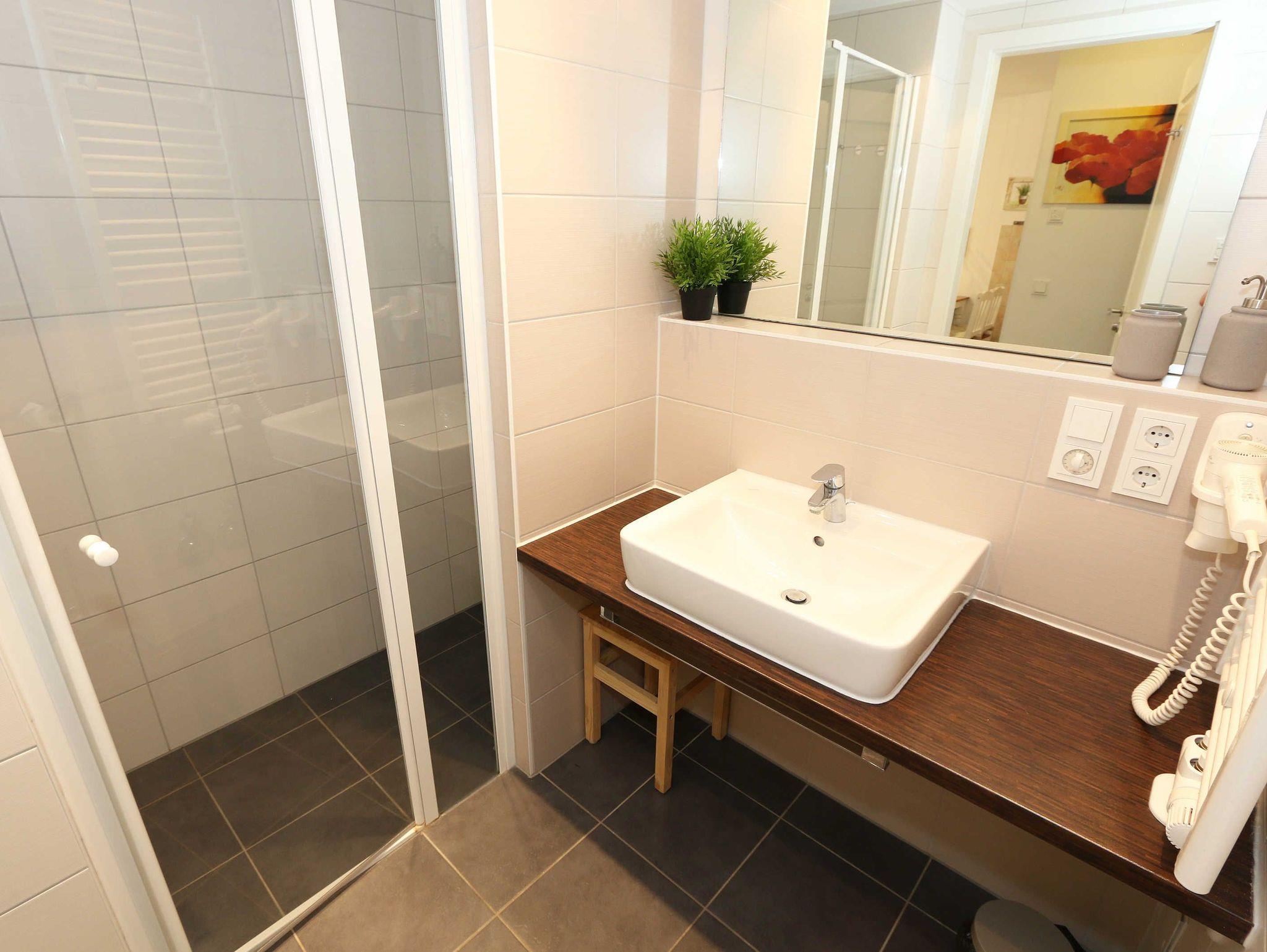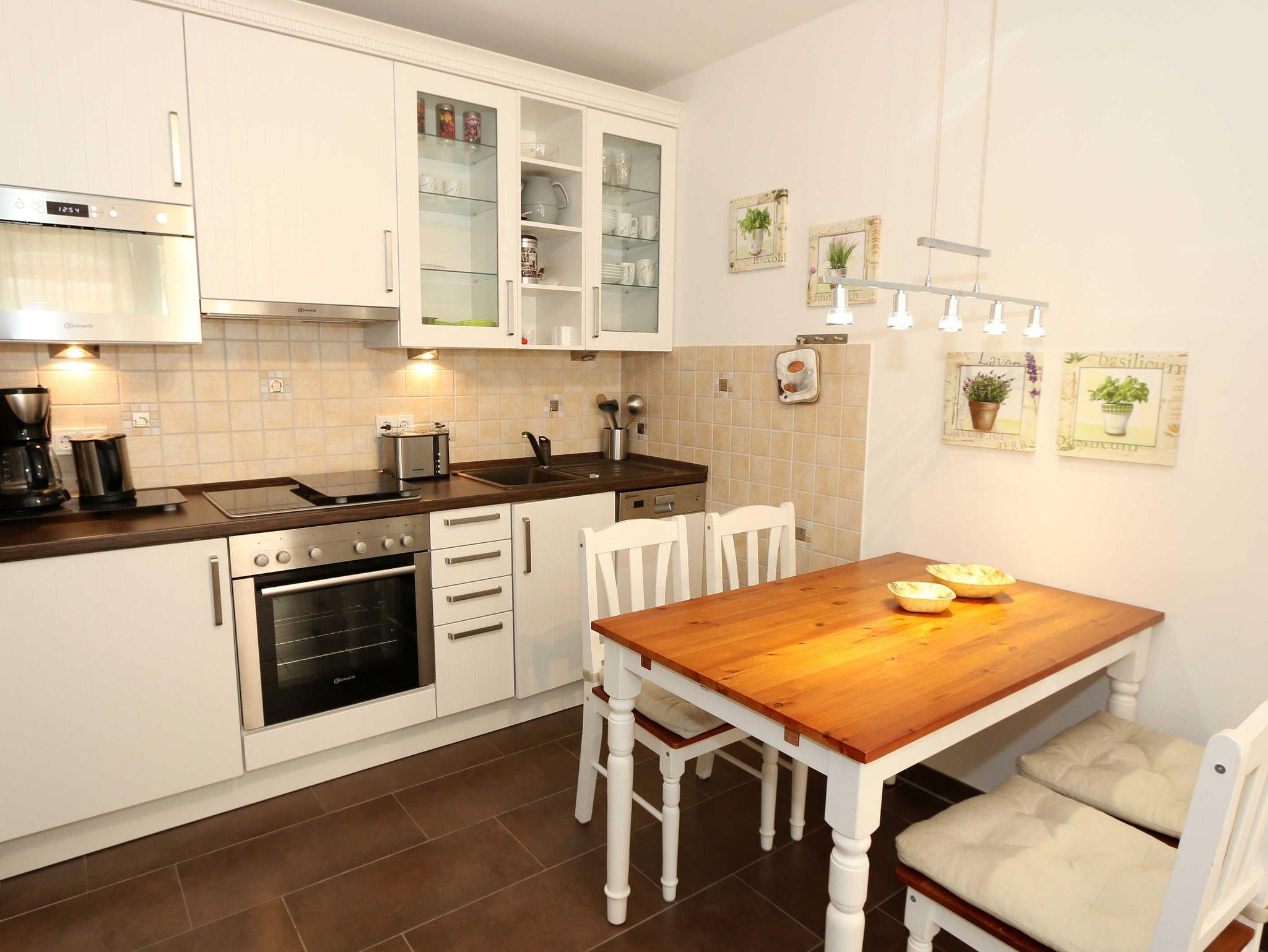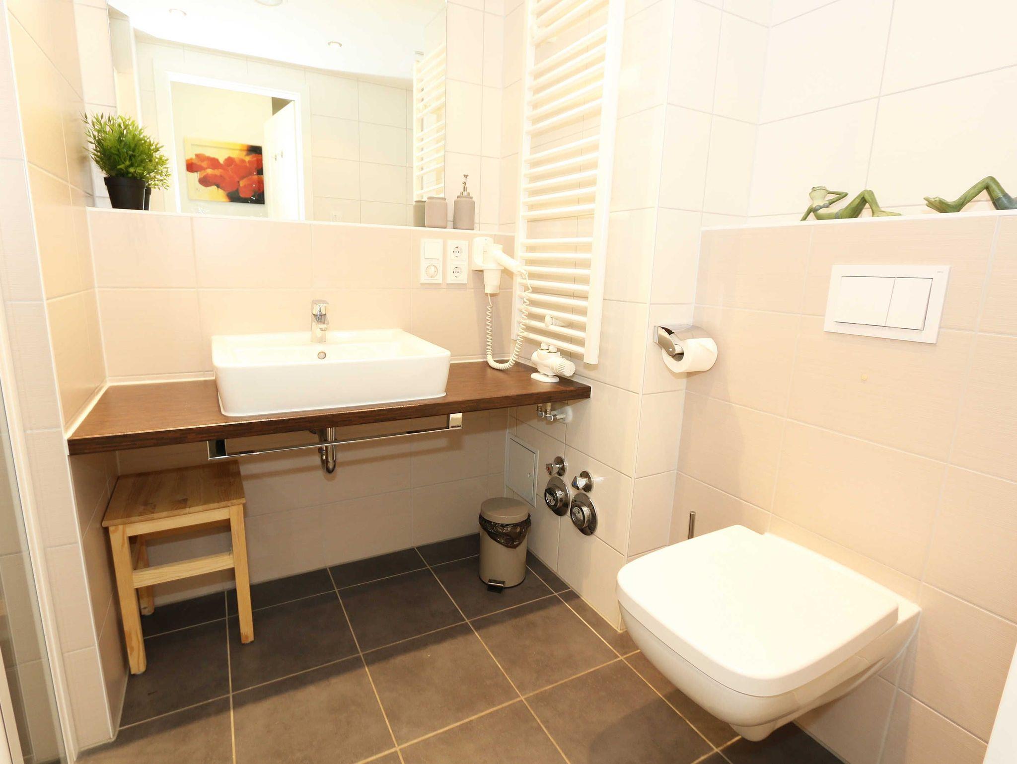 Ihre Nichtraucher/Ferienwohnung ist mit viel Liebe zum Detail ausgestattet und eingerichtet worden. Sie wohnen in einer ca. 40 qm 2-Zimmer Wohnung, die für 2 bis 4 Personen ausgelegt ist. Die Wohnung A.0.04 befindet sich im Erdgeschoss und ist per Fahrstuhl von der Tiefgarage bequem zu erreichen. In der Wohnung finden Sie einen kombinierten Wohn/Koch- und Essbereich. Die integrierte Küchenzeile lässt mit Mikrowelle, Backofen, Ceranfeld, Spülmaschine, Kühlschrank mit Gefrierfach, Kaffeemaschine, Nespresso Maschine und anderen praktischen Hilfsutensilien keine Wünsche offen. Im Wohnbereich ist eine Essecke, eine gemütliche Couch, die in wenigen Handgriffen zur 2. Schlafstätte umfunktioniert werden kann (1,60m x 2,00m), ein Couchtisch, eine Stehlampe, 2 Vitrinen, ein Sideboard mit Smart-TV, DVD-Player und eine Musikanlage vorhanden. Auch auf einen Internetanschluss (WLAN) müssen Sie im Urlaub nicht verzichten. Dieser ist für Sie inklusive! Die Terrasse ist vom Wohn/Essbereich begehbar und komplett möbliert. Ein Strandkorb gehört auf Ihrer Terrasse von April bis Oktober für Sie dazu. Das Schlafzimmer ist mit einem Doppelbett (1,80m x 2,00m), Nachttischkonsolen mit Beleuchtung, einem Kleiderschrank, eine Kleiderablage, einen Safe und ein 2. Smart-TV ausgestattet. Das Bad verfügt über eine ebenerdige Dusche, einen Waschplatz, ein WC, ein Handtuchheizkörper, ein Kosmetikspiegel sowie einen festinstallierten Fön. Im Abstellraum befinden sich Reinigungsutensilien sowie ein Wäscheständer. Ein eigener PKW-Stellplatz (Nr.81, Einfahrtshöhe 2,00 m) befindet sich in der Tiefgarage des Hauses. Im Keller des Hauses haben Sie die Möglichkeit eine Waschmaschine/Trockner gegen Gebühr zu nutzen. Keine Haustiere erlaubt!! (Menschen mit Tierhaarallergie vor Buchung der Wohnung Kontakt mit dem Vermieter aufnehmen). Mit dem Fahrstuhl des Hauses A gelangen sie in das Untergeschoss der Meeresblickanlage, wo Sie ein großzügiger und heller Wellnessbereich erwartet. Hier können sie in einem Pool kleine Bahnen schwimmen, in 2 Saunen Ihren Kreislauf in Schwung bringen, in einem dazugehörigen Ruheraum Ihren Körper wieder beruhigen, in einer Schneckendusche sowie weiteren Duschen das kühle Nass genießen und auf einer Außenterrasse mit Außendusche die frische Luft einatmen. Die Erstausstattung eines Wäschepaketes (komplette Bettwäsche, 1 Duschhandtuch, 2 kleine Handtücher) können Sie bis 14 Tage vor Anreise gegen einen Aufpreis dazu buchen oder durch eigene ergänzen. Ab 2 gebuchten Paketen erhalten Sie einmalig 1 Geschirrhandtuch und 1 Duschvorleger hinzu.