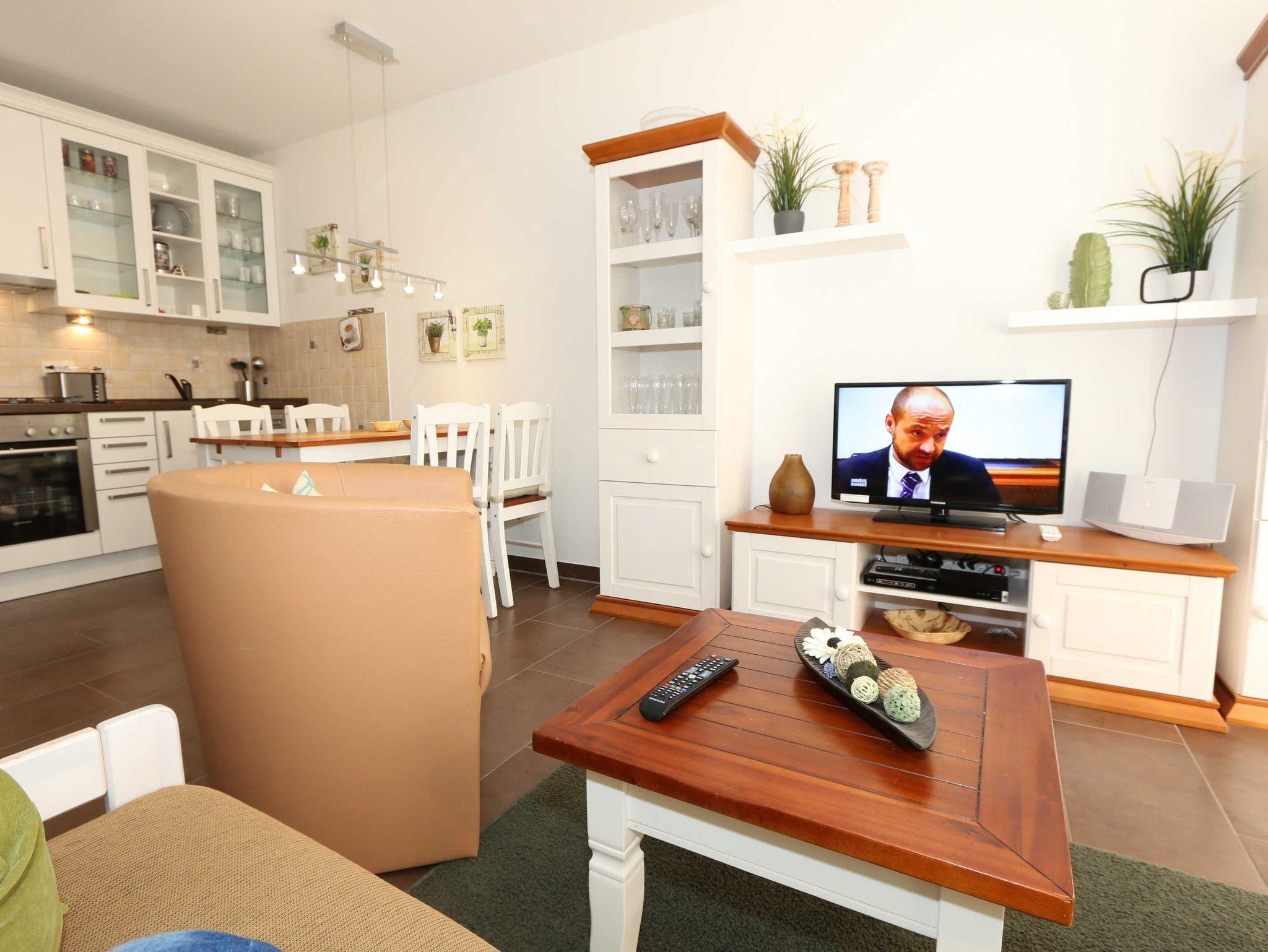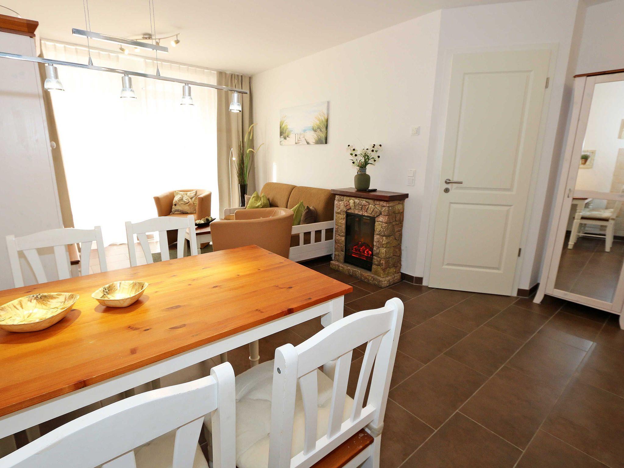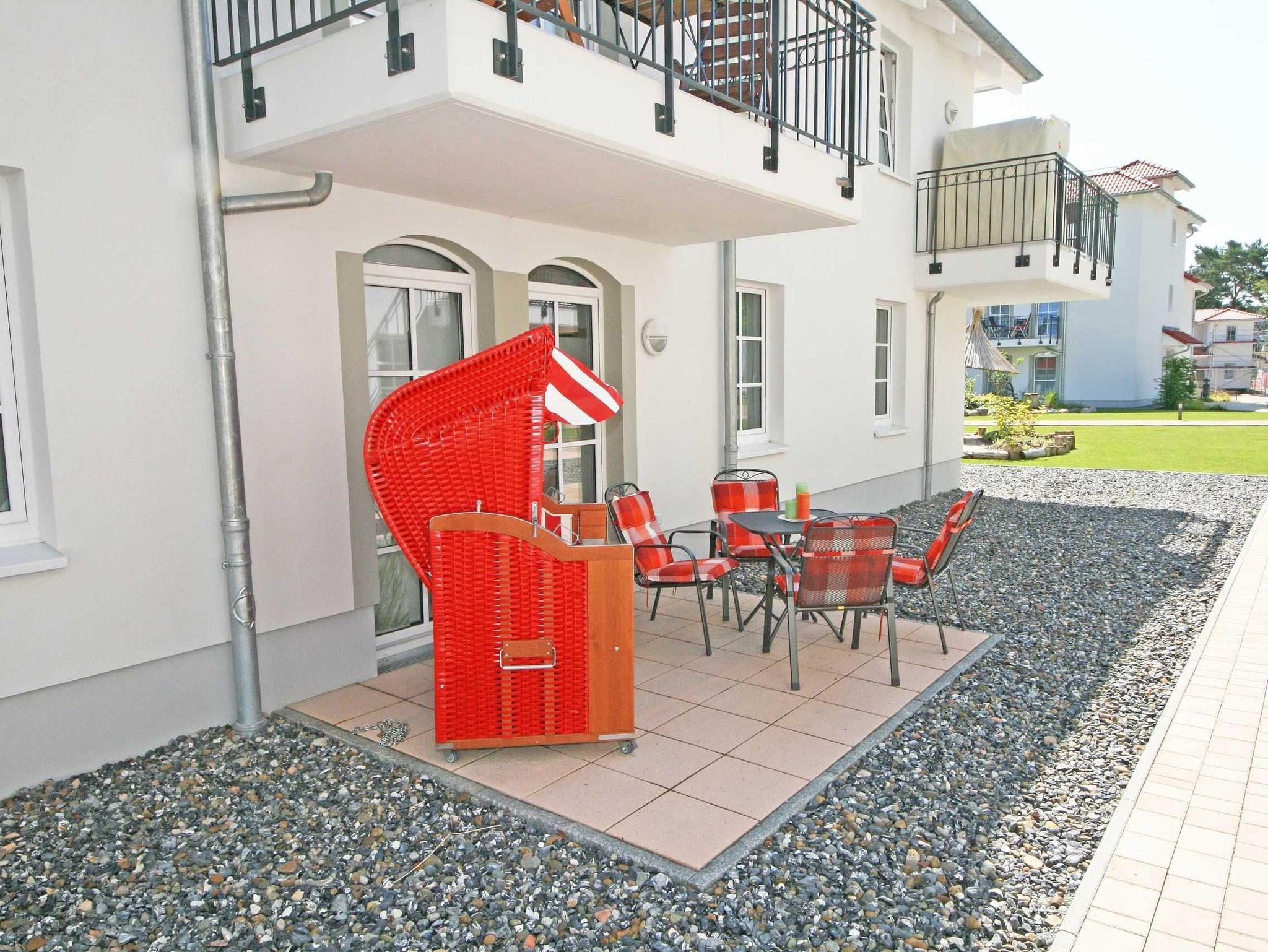 Moderne Ferienwohnung Weiße Düne mit Terrasse nahe feinem Sandstrand in Baabe auf Rügen.