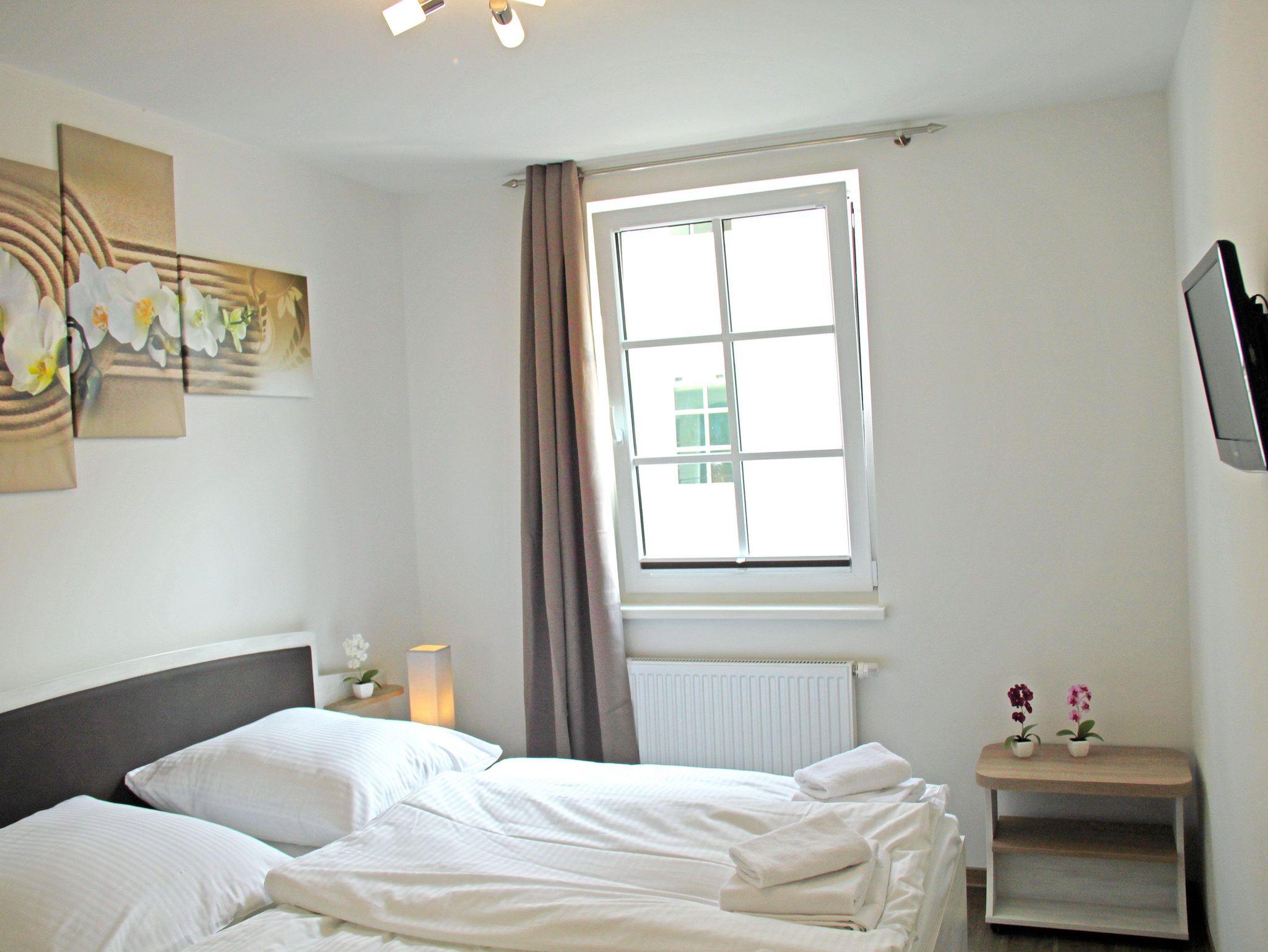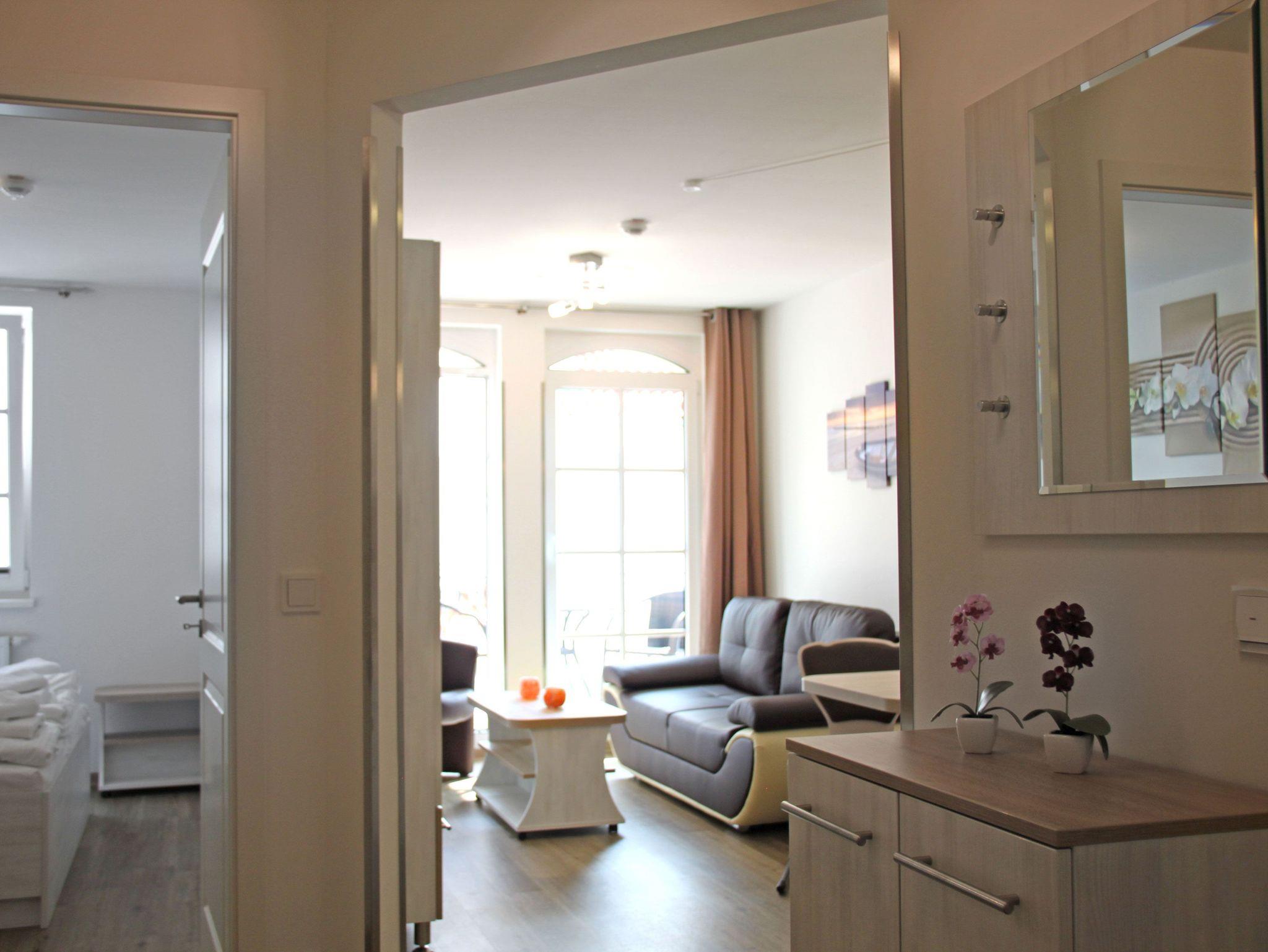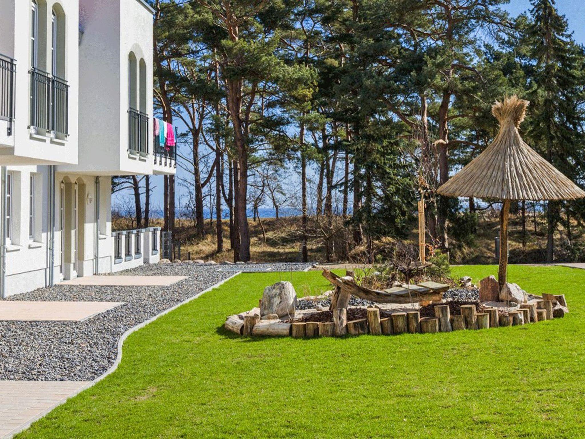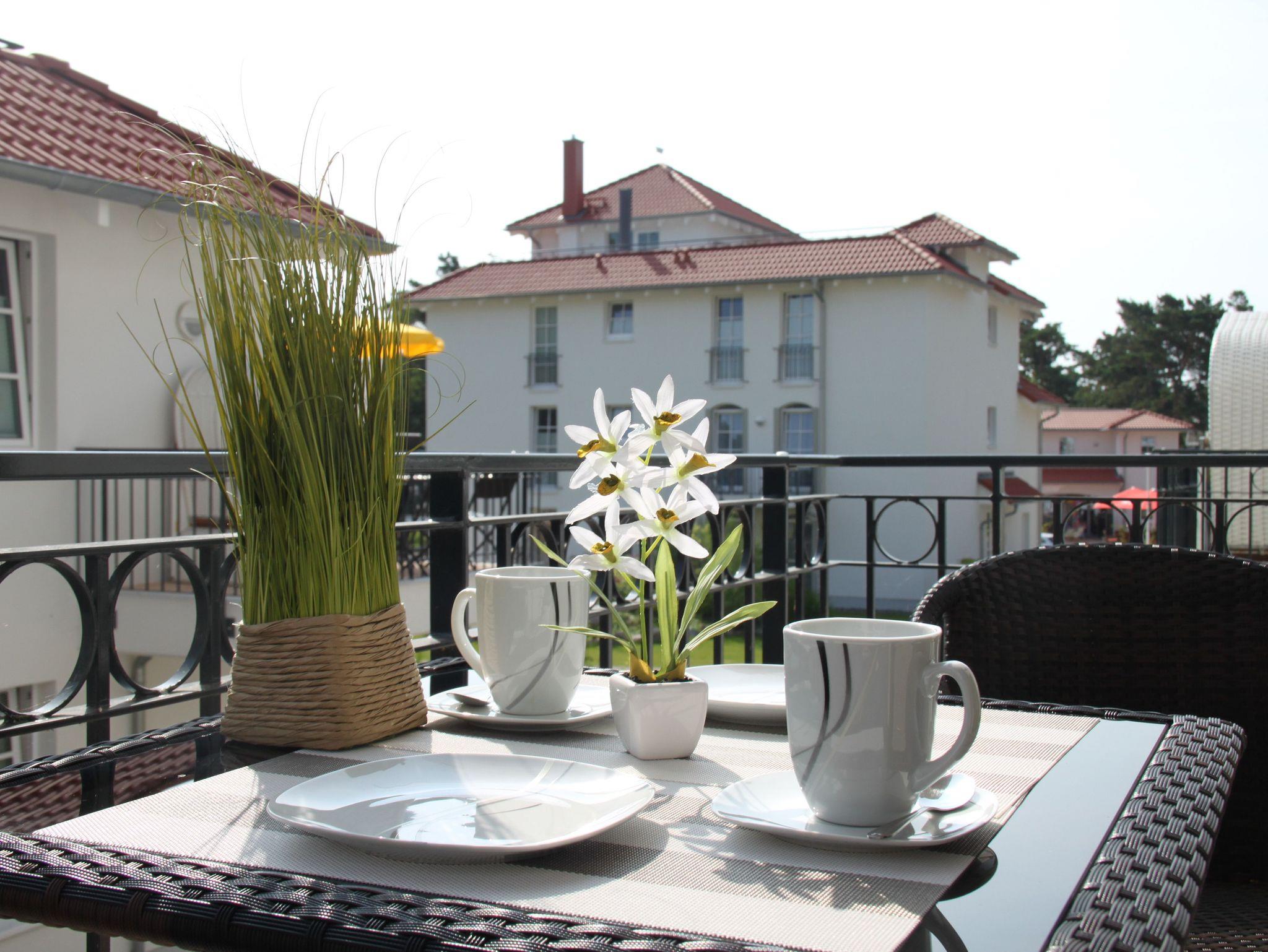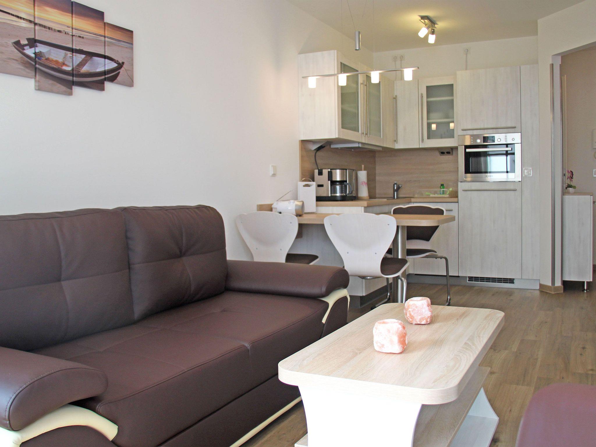 Helle 2-Zimmer-Ferienwohnung im Haus Meeresblick direkt am Strand von Baabe mit Wellnessbereich und Tiefgarage.