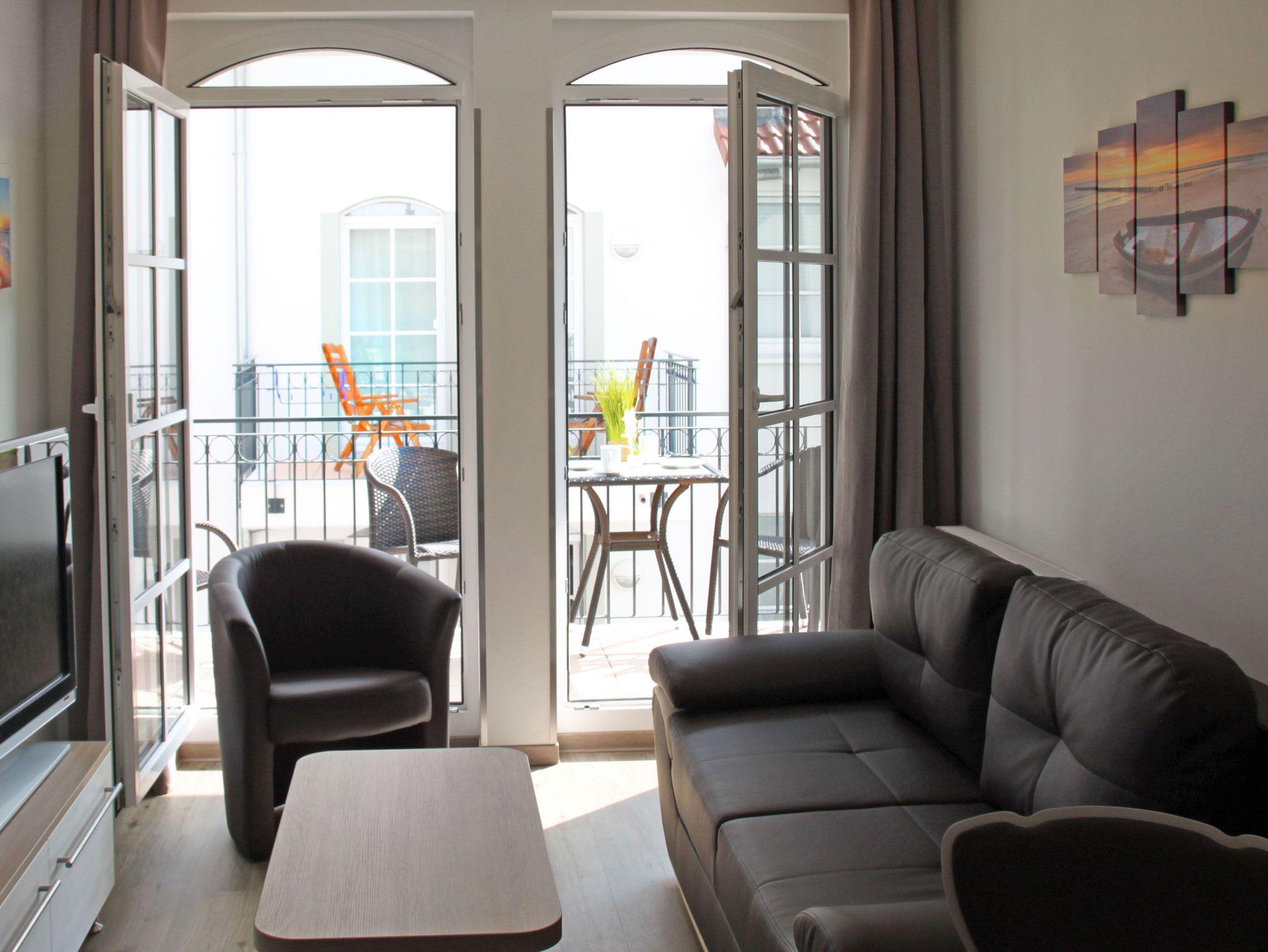 Vom Wohn-/ Esszimmer aus haben Sie Zugang zum Balkon, auf dem Sie bei Meeresrauschen Entspannung finden. Das Wohn-/ Esszimmer ist lichtdurchfluteten und exquisit.