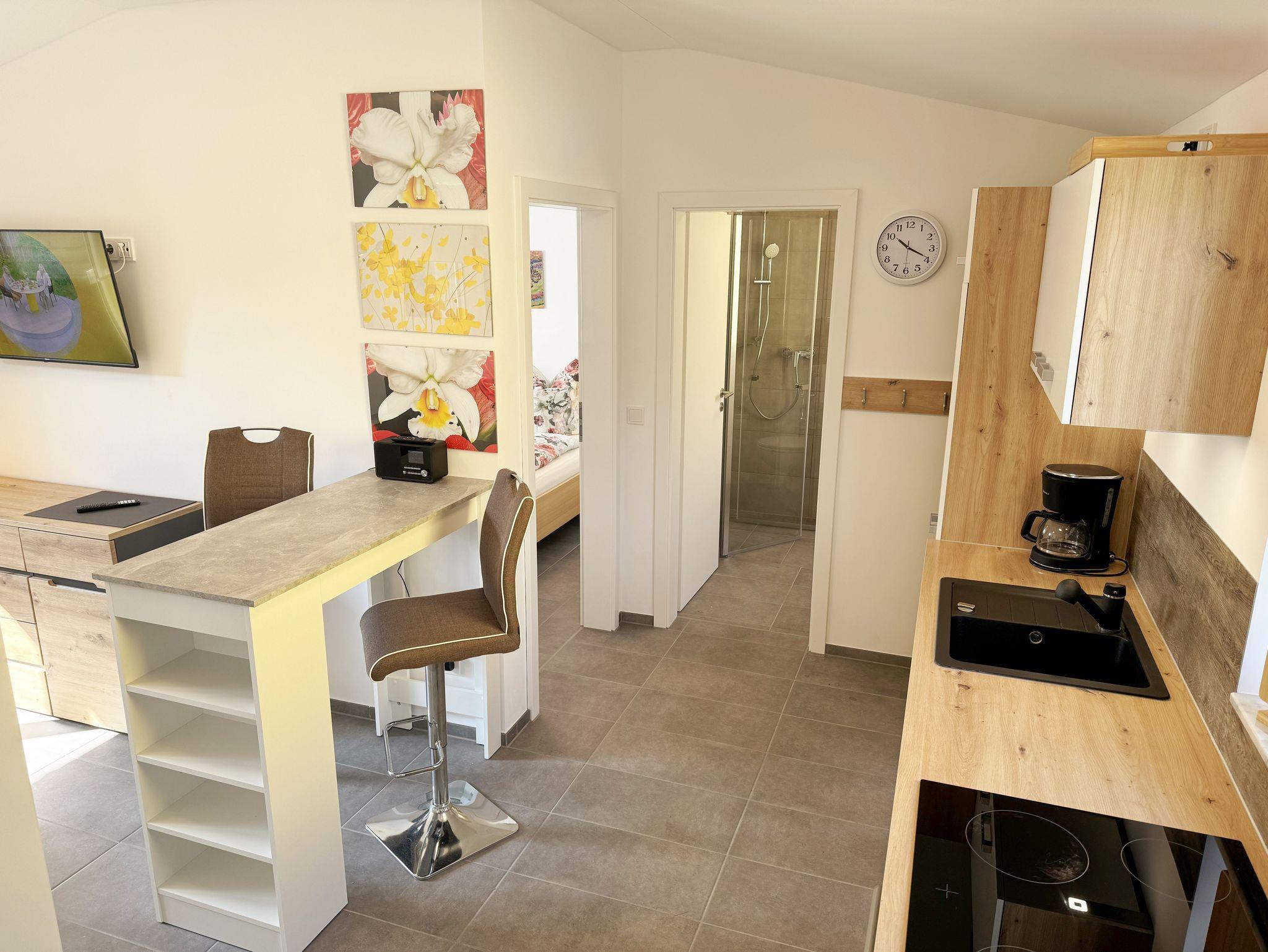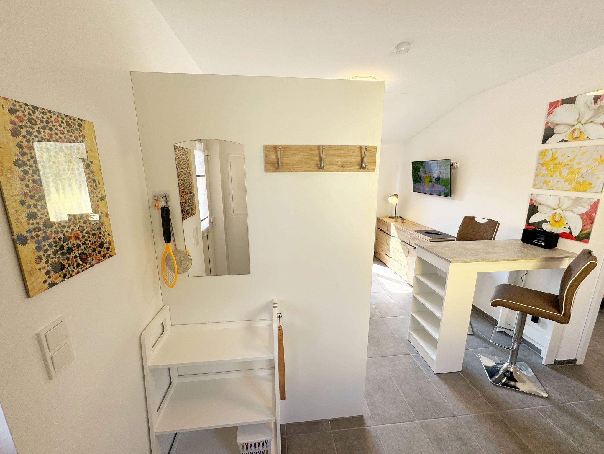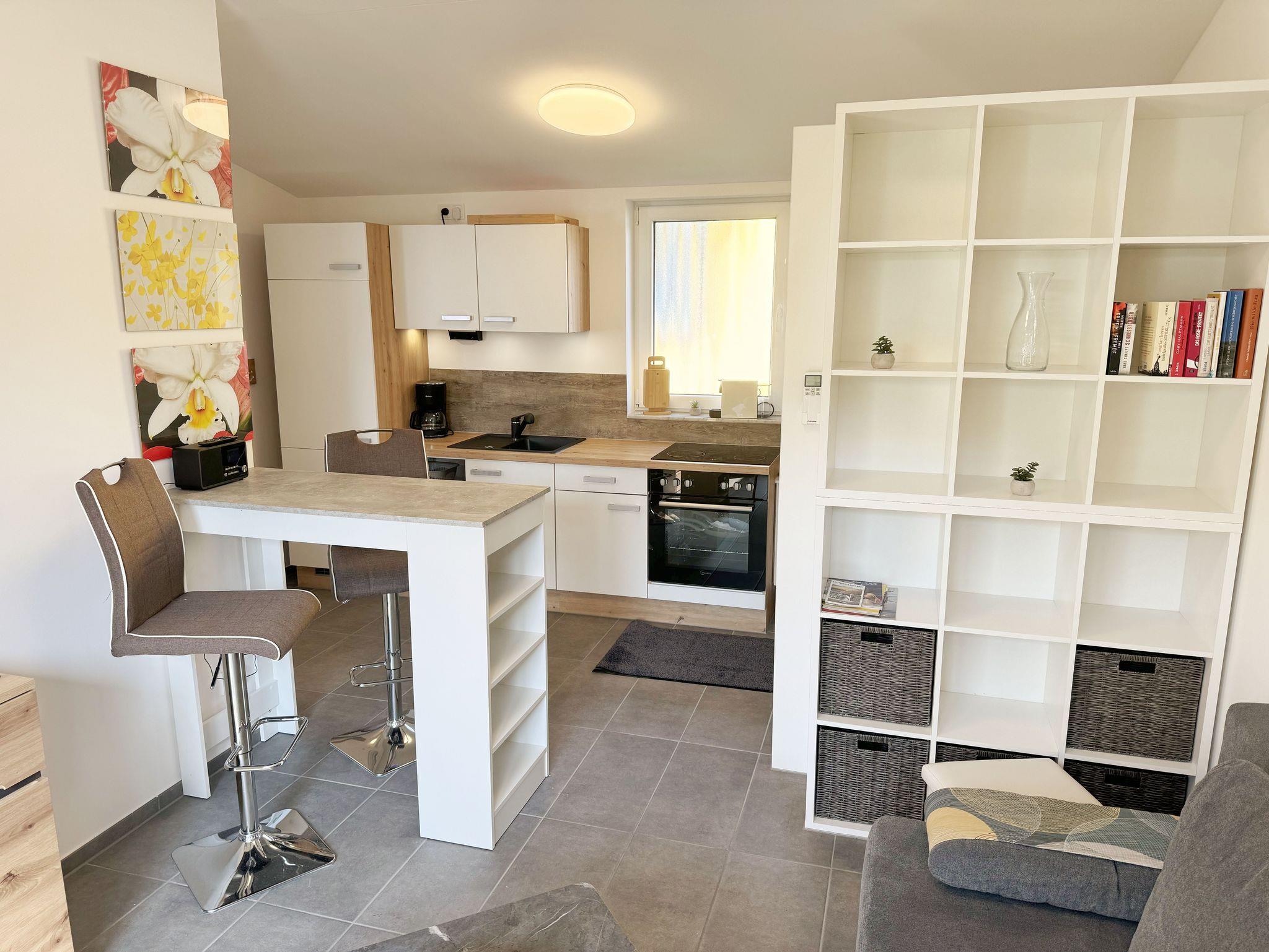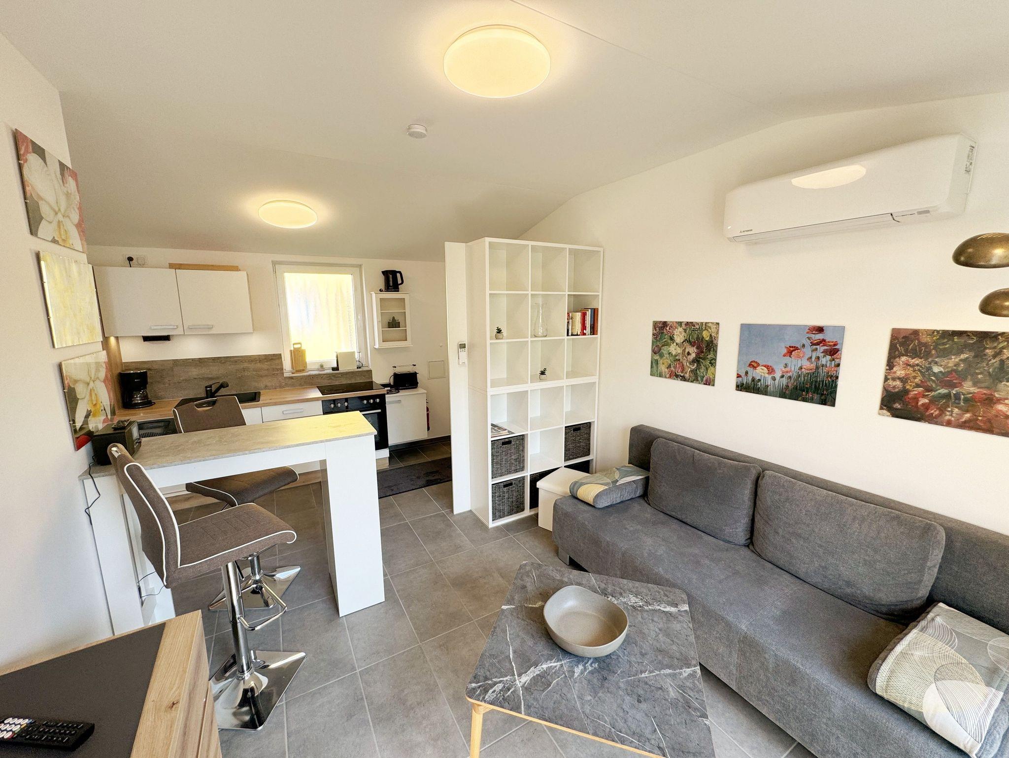 Der 2024 fertiggestellte, gemütliche und liebevoll eingerichtete Bungalow Nr.02 „Fantasie“ bietet Ihnen Platz für max. 2 Personen. Der Nichtraucher Bungalow umfasst ca. 40 m². Beim Betreten des Hauses befindet sich die offene Küchenzeile welche mit einem Cerankochfeld, einem Backofen, einer Geschirrspülmaschine, einem Kühlschrank mit Gefrierfach, einem Geschirrspüler, einem Mixer, einer Kaffeemaschine, einer Nespresso Maschine, einem Wasserkocher, einem Toaster und umfangreichen Küchenutensilien ausgestattet ist. Im angrenzenden Wohnbereich rundet ein Essplatz in Form eines Thekentisches mit bequemen Stühlen den Küchenbereich ab. Im Wohnbereich bietet Ihnen eine Couch mit einem Couchtisch, einer Designer-Stehlampe, einem Sideboard mit einem Smart-TV, WLAN und einem DAB-Radio den benötigten Komfort. Das wohnliche Ambiente wird zudem durch einige Fotografien abgerundet. Für viel natürliches Licht sorgt die große Terrassentür. Durch einen kleinen Absatz gelangen Sie hier auf Ihre bestuhlte Terrasse (Süden) mit einem Sonnenschirm, einem Holzkohlegrill sowie einen an der Wand befestigten Wäschetrockner. Im großen Schlafzimmer mit einem Doppelbett (1,80m x 2,00m), Nachttischablagen mit Beleuchtung, einem Kleiderschrank, Verdunklungsmöglichkeit und Insektenschutzgitter können Sie einen erholsamen Schlaf genießen. Im modernen Tageslicht-Bad befindet sich eine ebenerdige Dusche, ein Waschplatz, ein WC, ein Kosmetikspiegel, ein beheizbarer Handtuchtrockner sowie ein Fön. Der gesamte Bungalow ist mit einer hochwertigen Keramikfliese ausgelegt. Für kühle oder heiße Tage können Sie ein Split Gerät (Klima & Wärme), das sich im Wohnbereich befindet, nutzen. Im kleinen Abstellraum, im Eingangsbereich, befindet sich ein Staubsauger, Wischutensilien, sowie ein Besen mit Handfeger und Schaufel. Sie möchten in Ihrem Urlaub Fahrrad fahren? Hierfür finden Sie im angrenzenden Fahrradschuppen zusätzlich 2 Fahrräder mit einer 26 & 28iger Rahmengröße, die Sie gerne nutzen können (kein Vertragsbestandteil) oder Sie bringen gerne auch Ihre eigenen Räder mit, welche Sie hier abstellen können. Ein PKW-Stellplatz (Nr. 2) befindet sich direkt auf dem Grundstück und ist für Sie inklusive. Haustiere sind nicht erlaubt. Die Erstausstattung eines Wäschepaketes (komplette Bettwäsche, 1 Duschhandtuch, 1 kleines Handtuch) können Sie bis 14 Tage gegen einen Aufpreis dazu buchen oder durch eigenes Ergänzen. Ab 2 gebuchten Paketen erhalten Sie einmalig 1 Geschirrhandtuch und 1 Duschvorleger hinzu.