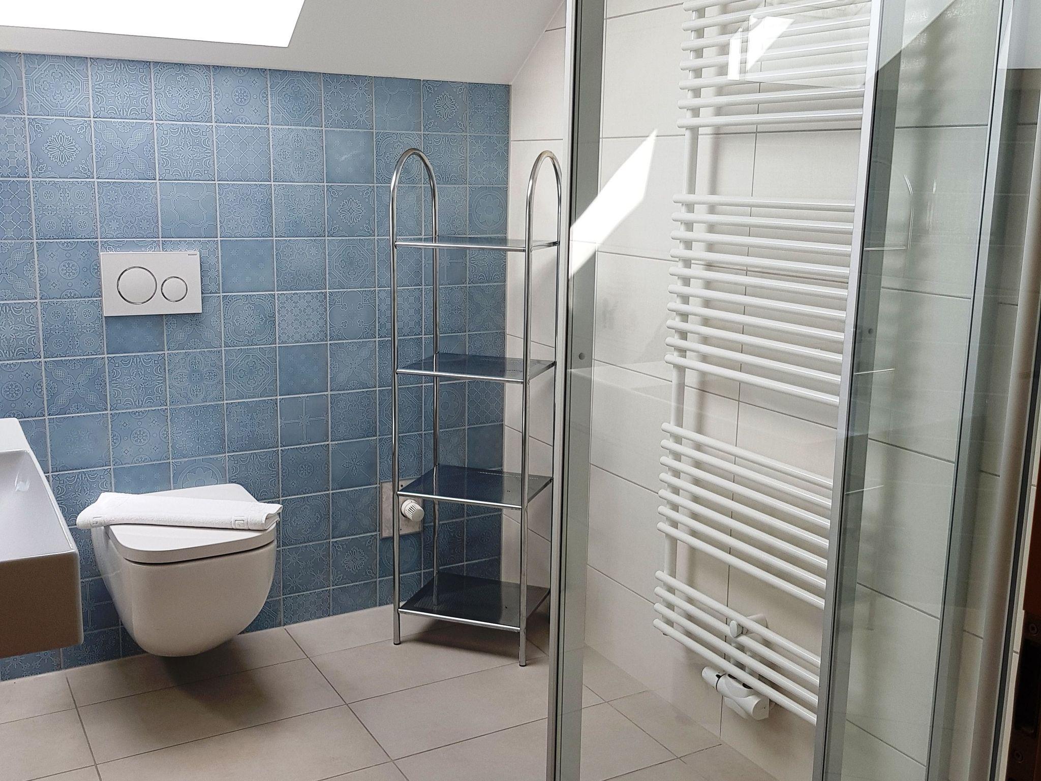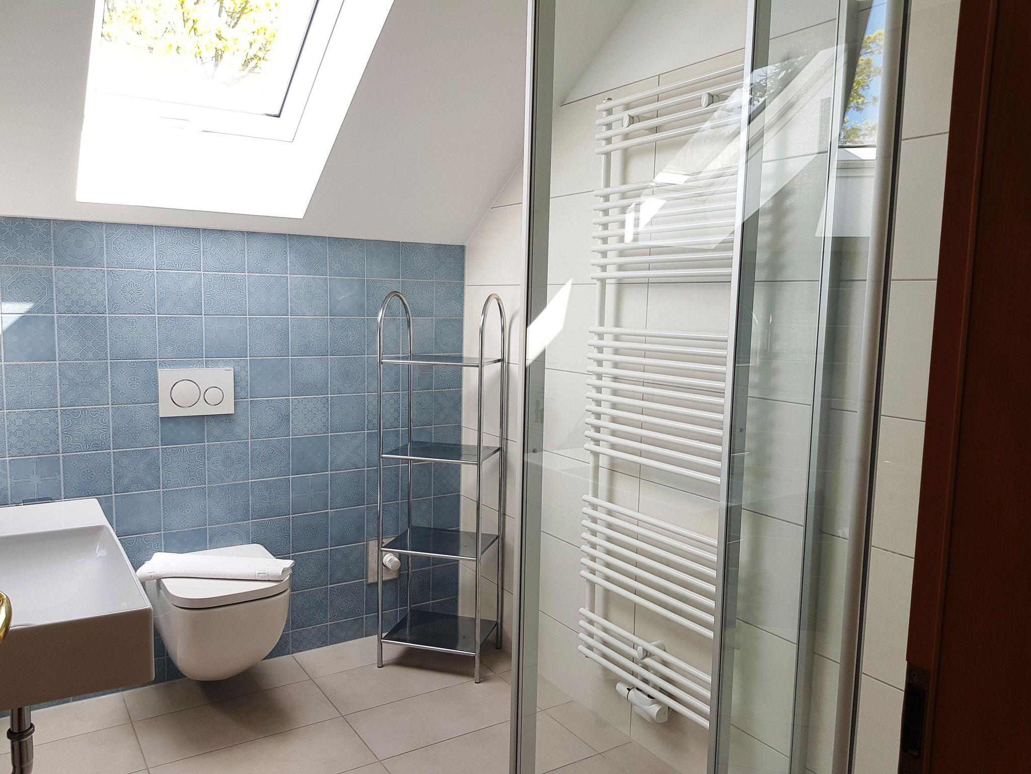 • Tageslichtbad mit Dusche, WC, Waschplatz und Fußbodenheizung