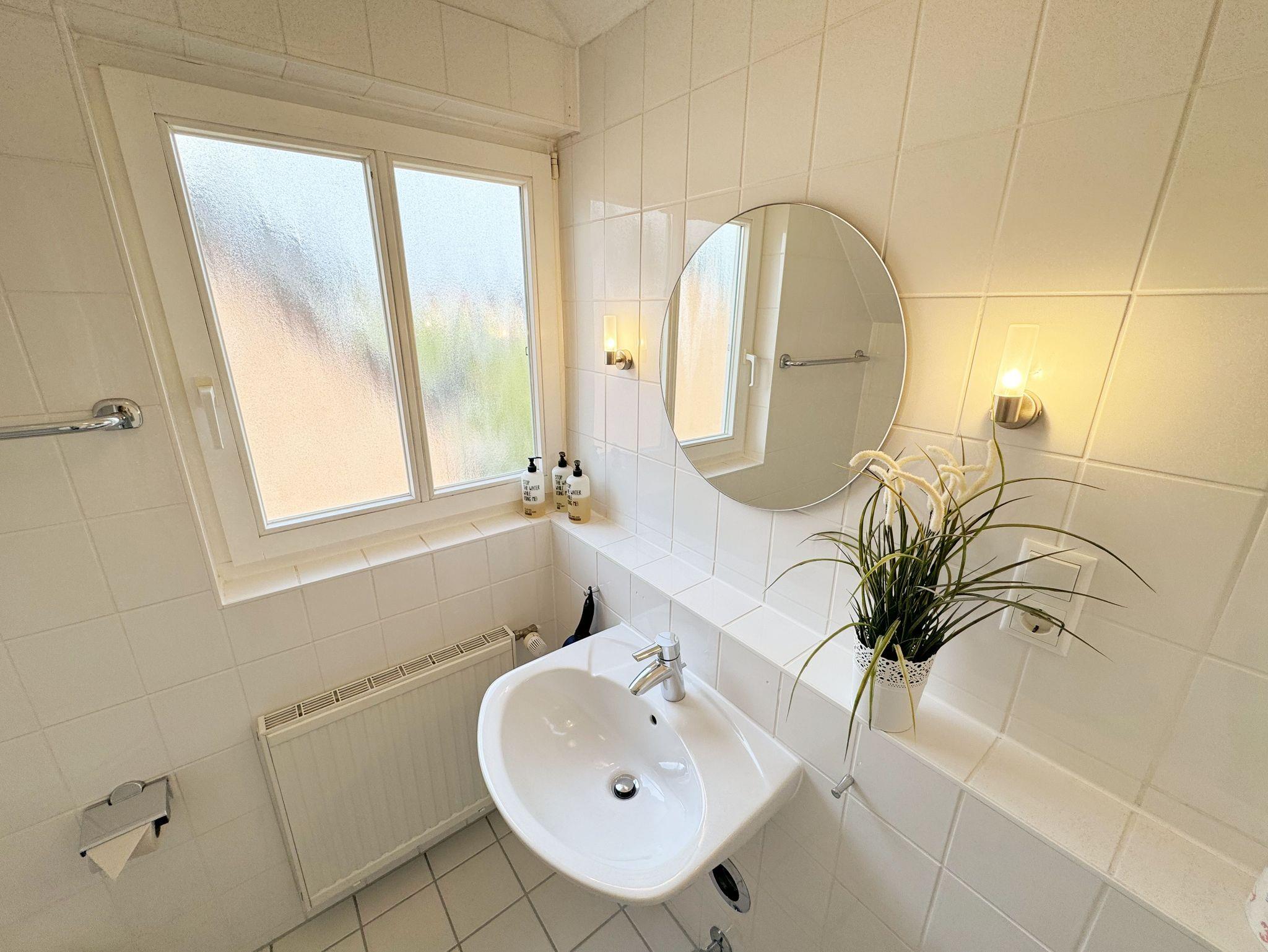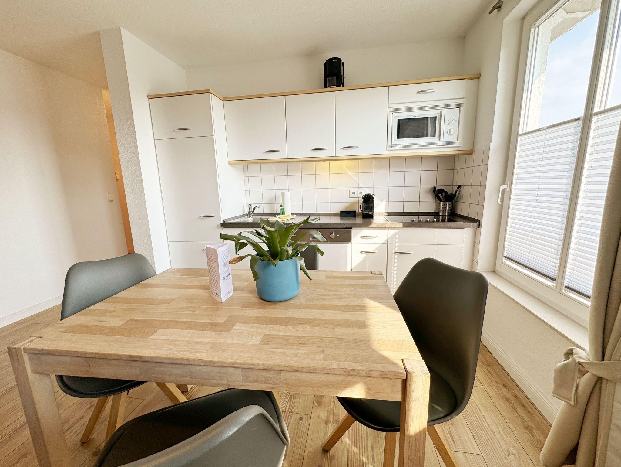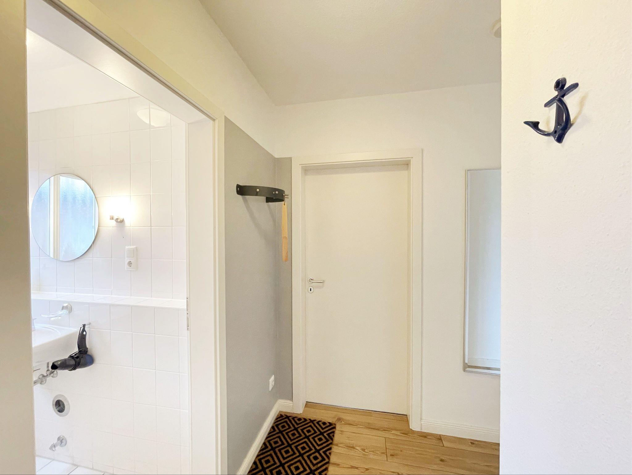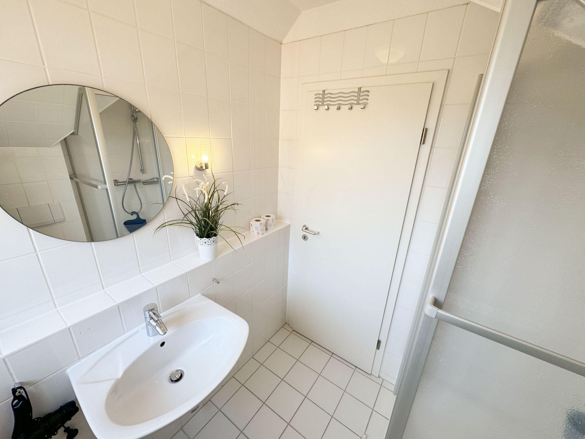 Die 70 qm Nichtraucher-Maisonette-Wohnung ist modern und hell im skandinavischen Stil eingerichtet und bietet Platz für max. 4 Erwachsene + 1 Kleinkind bis 3 Jahre im Kinderreisebett. Fotografien der Insel lassen Sie beim Eintreten auf der Insel ankommen. Über einen kleinen Flur mit Garderobe gelangen Sie direkt in den großen Wohn- und Essbereich mit Einbauküche. Die bodentiefen Fenster mit Absturzsicherung und Insektenschutzgittern sorgen für viel Tageslicht. Der Wohnbereich ist gemütlich gestaltet und lädt zum Entspannen ein. Er verfügt über eine bequeme Eckcouch mit variablem Fußteil, ein Couchtisch, einen Sessel und eine Stehlampe. Hier können Sie es sich gemütlich machen, einen Film auf dem 32-Zoll-Smart-TV genießen oder der Musik aus dem Bluetooth-Radio lauschen. Ein WLAN-Anschluss rundet den technischen Bereich ab. In dem Sideboard finden Sie ausreichend Stauraum für Ihre persönlichen Gegenstände. Zusätzlich befindet sich dort eine Spielesammlung für die ganze Familie sowie eine kleine Auswahl an Büchern. Die Einbauküche beinhaltet alles, was Sie zur Zubereitung Ihrer Mahlzeiten benötigen. Wie ein Induktionsherd, ein Kühlschrank mit Gefrierfach, eine Mikrowelle und ein Geschirrspüler. Darüber hinaus steht Ihnen sowohl eine Filter-Kaffeemaschine als auch eine Nespresso-Kapselmaschine, ein Wasserkocher, ein Toaster, ein Messerblock sowie viele Kochutensilien zur Verfügung. Ein Esstisch rundet den Küchenbereich ab. Von hier aus gelangen Sie über eine Treppe in den oberen Schlafbereich. Hier befinden sich zwei Einzelbetten (je 0,90m x 2,00m), die auch zu einem Doppelbett verschoben werden können, verstellbare Lattenroste, zwei Nachttischablagen mit Leseleuchten, ein Kleiderschrank sowie ein Verdunklungsrollo. Der Raum bietet dazu Platz, um ein Kinderreisebett aufzustellen. Die Treppe ist dazu durch ein Treppenschutzgitter gesichert. Das unter Schlafzimmer verfügt über ein komfortables Doppelbett (1,60m x 2,00m) mit Wand-Nachttischlampe, verstellbare Lattenroste sowie ein geräumiger Kleiderschrank. Die bodentiefen Fenster sind mit Verdunklungsvorhängen und Insektenschutzgitter ausgestattet, um Ihnen einen erholsamen Schlaf zu ermöglichen. Das kompakte Tageslicht-Bad ist funktional gestaltet und verfügt über eine Eck-Dusche, ein Fön, ein WC, ein Waschplatz und ein Insektenschutzgitter. Eine Ablage bietet Platz für Kosmetikutensilien und ein beleuchteter Spiegel sorgt für die richtige Ausleuchtung. Ebenso finden Sie in Ihrer Wohnung einen Wäscheständer, Reinigungsutensilien und einen Standventilator vor. Wenn es Sie nach draußen zieht, so steht Ihnen ein 2500 qm großer Gemeinschaftsgarten zur Verfügung, der zum Verweilen einlädt. Dort finden Sie Strandkörbe Sitzgelegenheiten sowie einen Grillplatz, den Sie gemeinsam mit anderen Gästen nutzen können. Ein Haustier ist gegen eine Gebühr ein gern gesehener Gast. Ihre mitgebrachten oder geliehenen Fahrräder können Sie auf dem Grundstück abstellen. Ein PKW-Stellplatz befindet sich direkt am Haus. Die Erstausstattung eines Wäschepaketes (komplette Bettwäsche, 1 Duschhandtuch, 2 kleine Handtücher) können Sie bis 14 Tage vor Anreise gegen einen Aufpreis dazu buchen oder durch eigene ergänzen. Ab 2 gebuchten Paketen erhalten Sie einmalig 1 Geschirrhandtuch und 1 Duschvorleger hinzu.