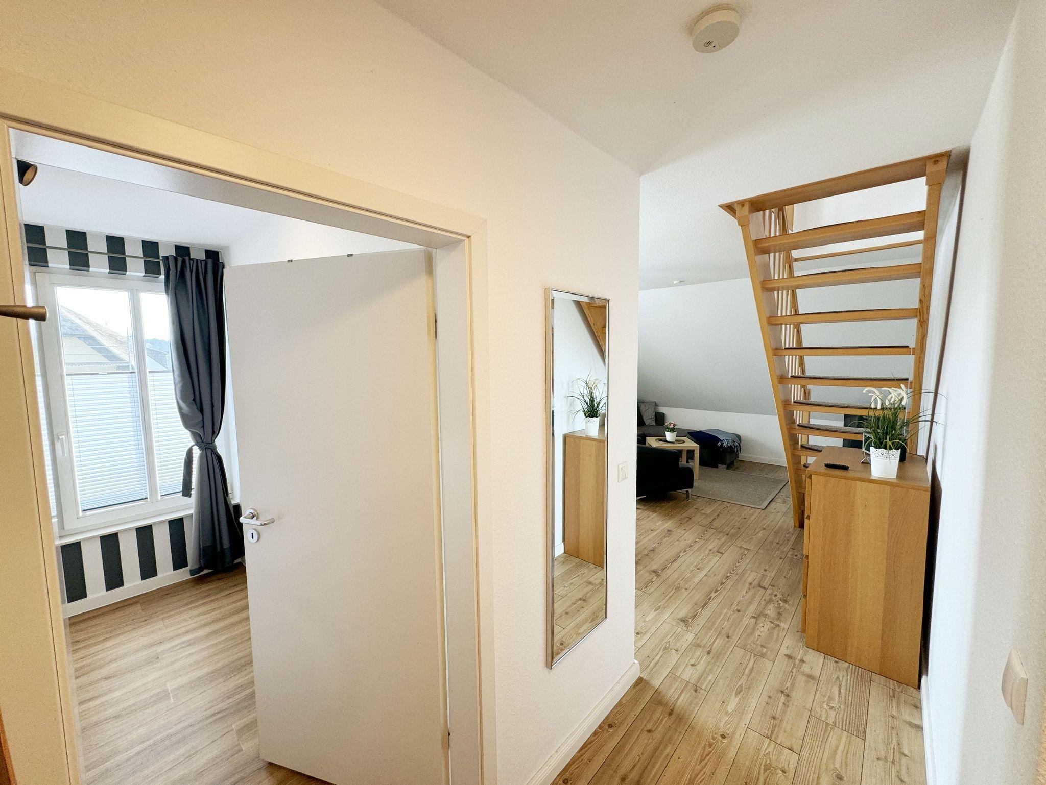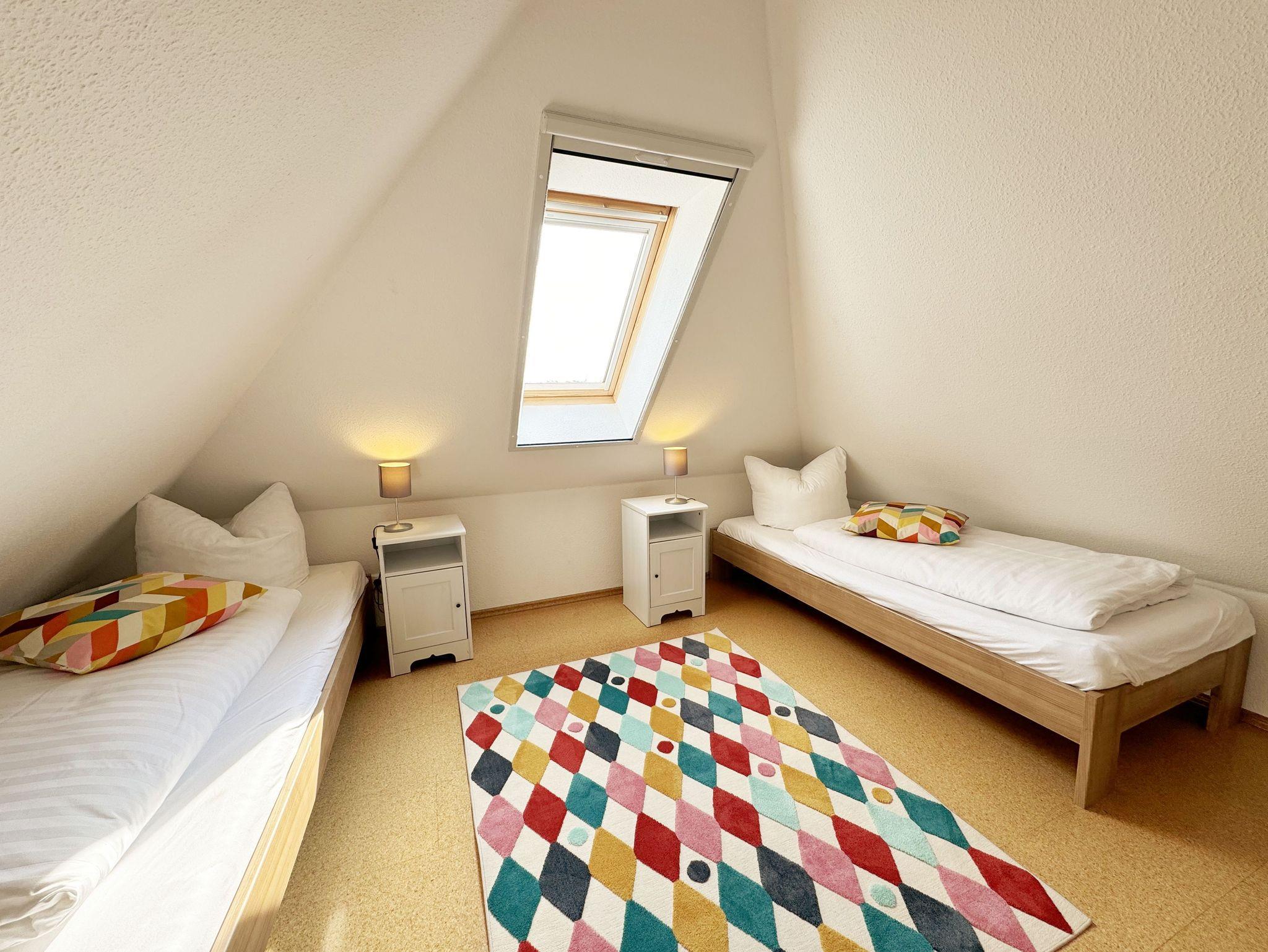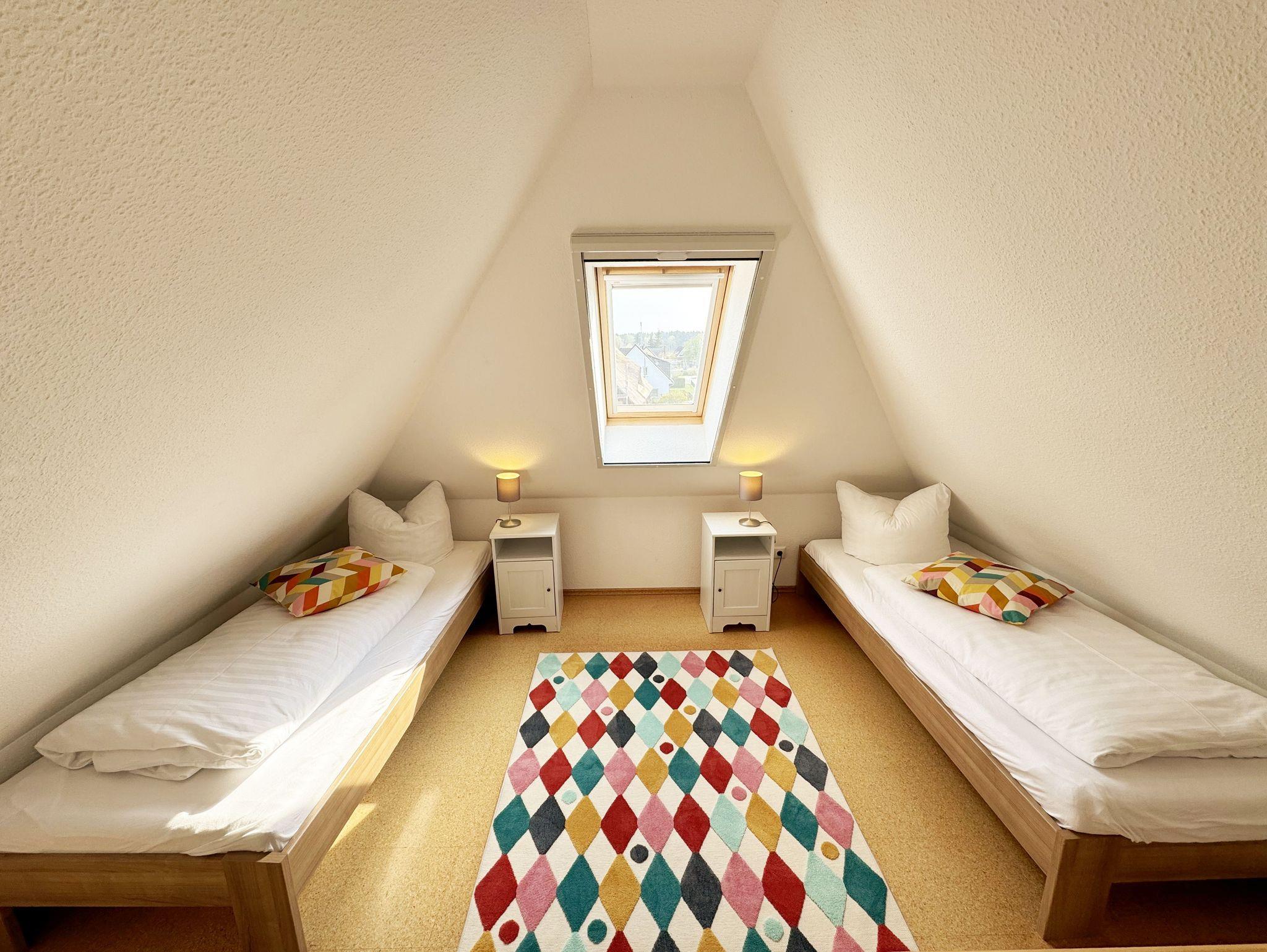 Die Ferienwohnung Kranichloft befindet sich im Obergeschoss des Gästehaus Am Brook.