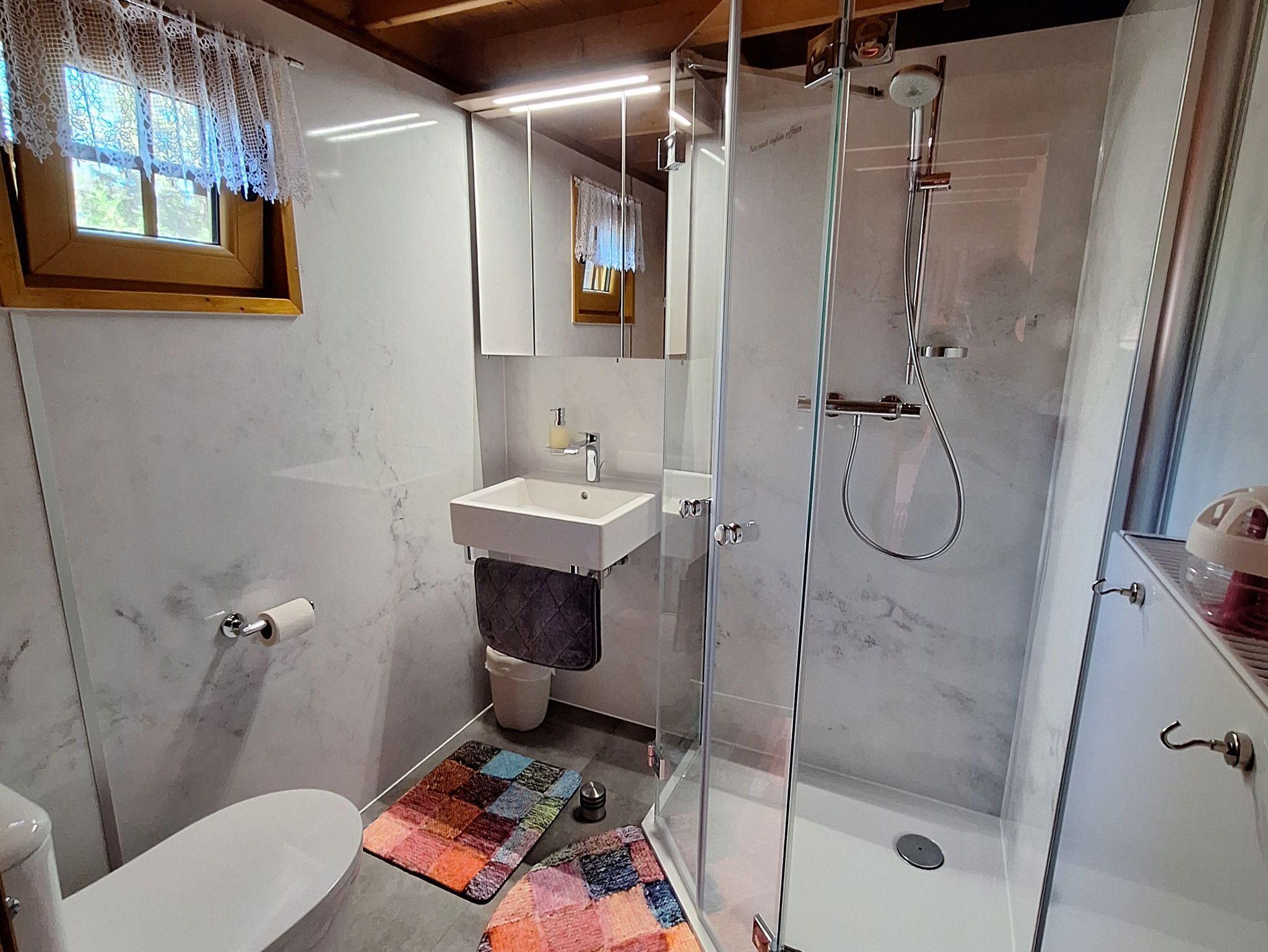Im Sanitärbereich befinden sich WC und Dusche.