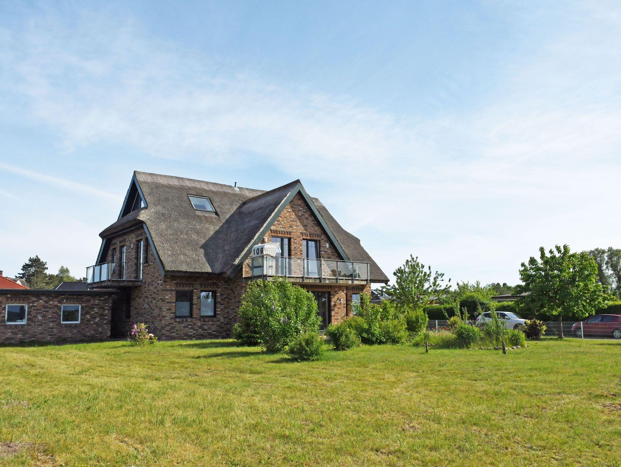 Die schöne große Ferienwohnung befindet sich in der 1. Etage des Reetdachhauses und verfügt über einen separaten Eingang. Sie ist ca. 135 qm groß, hat Platz für maximal 6 Erwachsene und 2 Kinder bis 3 Jahre im Kinderreisebett.