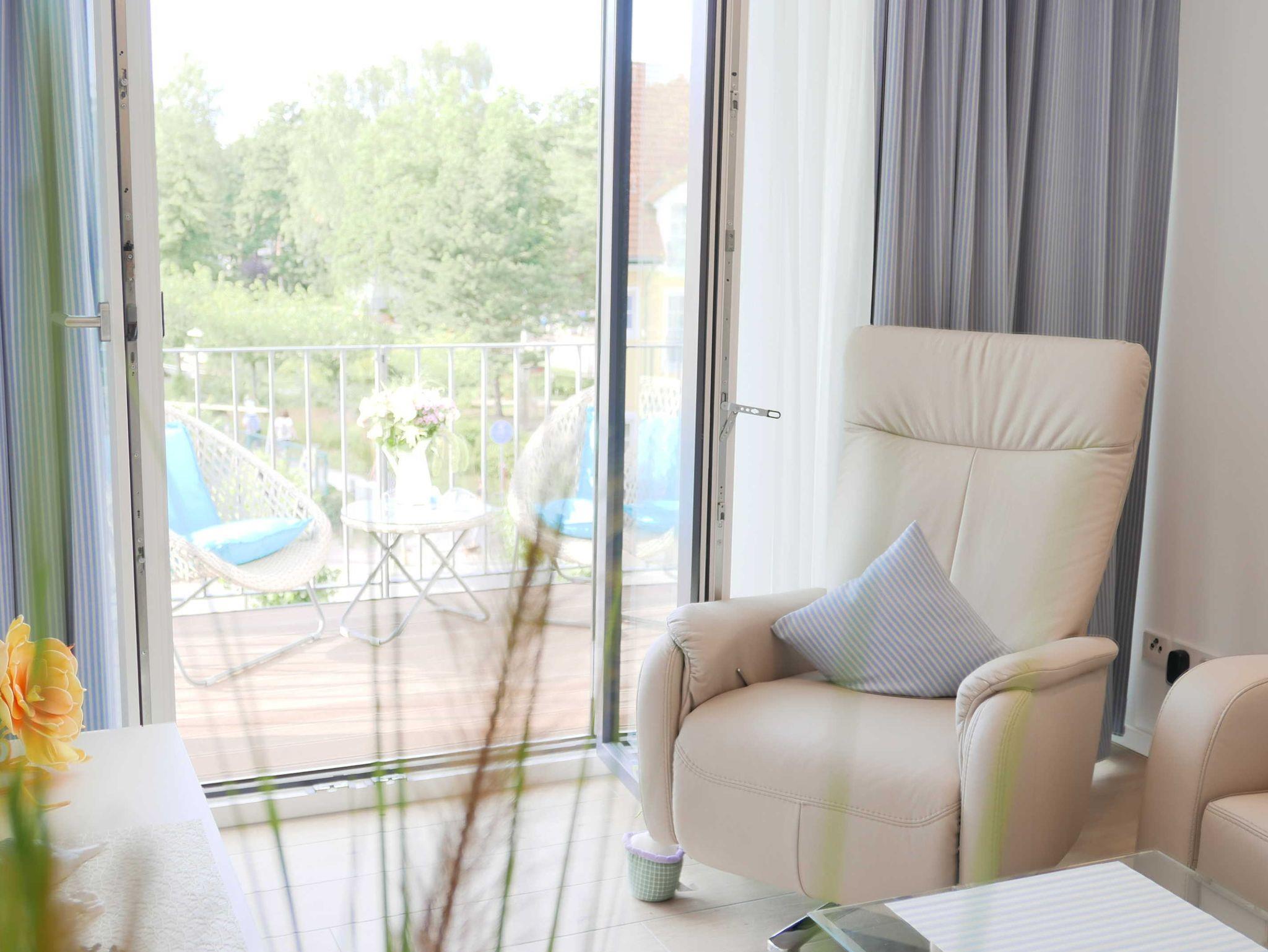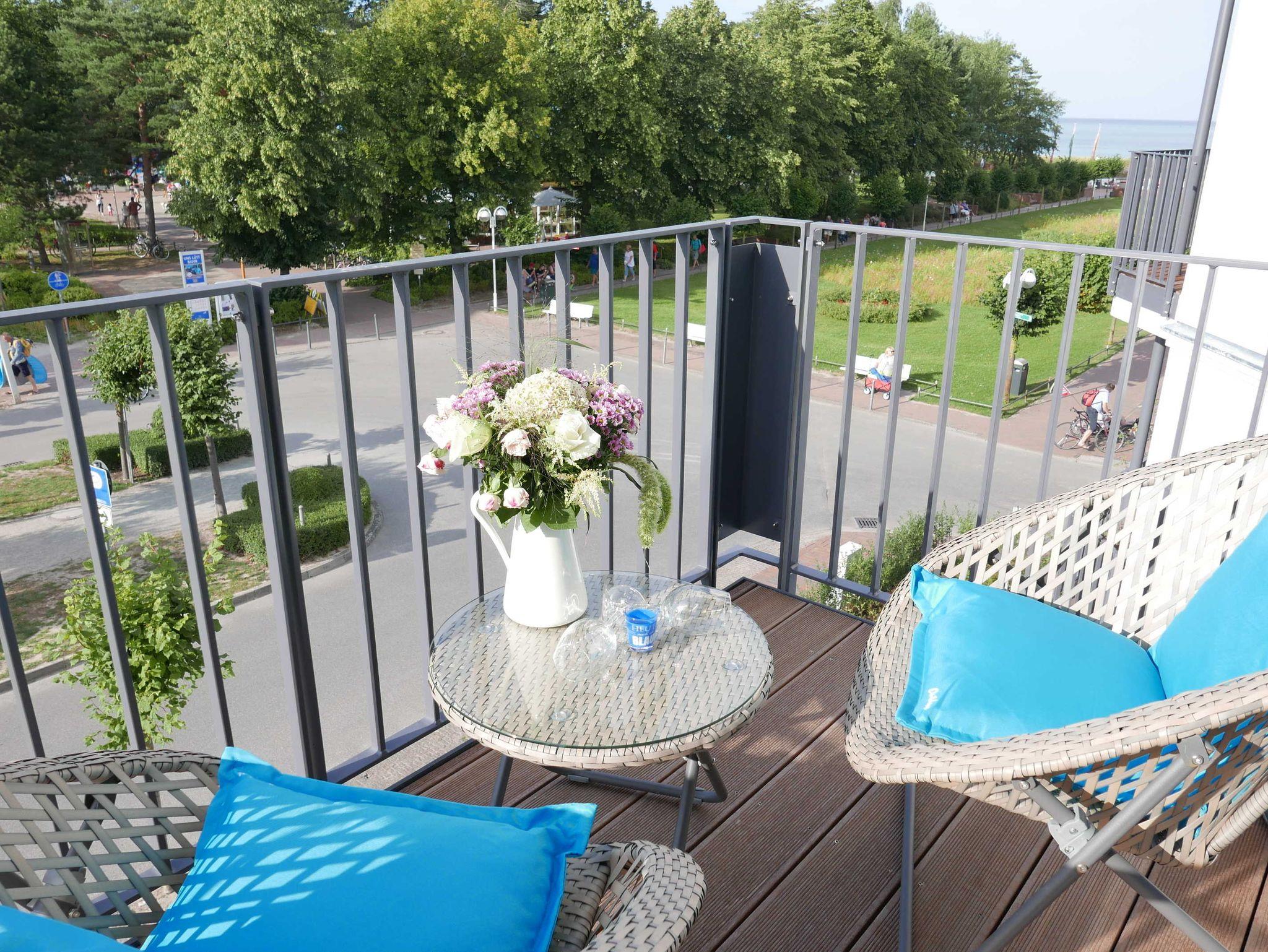 Modernes Apartment mit seitlichem Meerblick, Balkon und exklusiver Ausstattung in Baabe direkt an der Promenade.