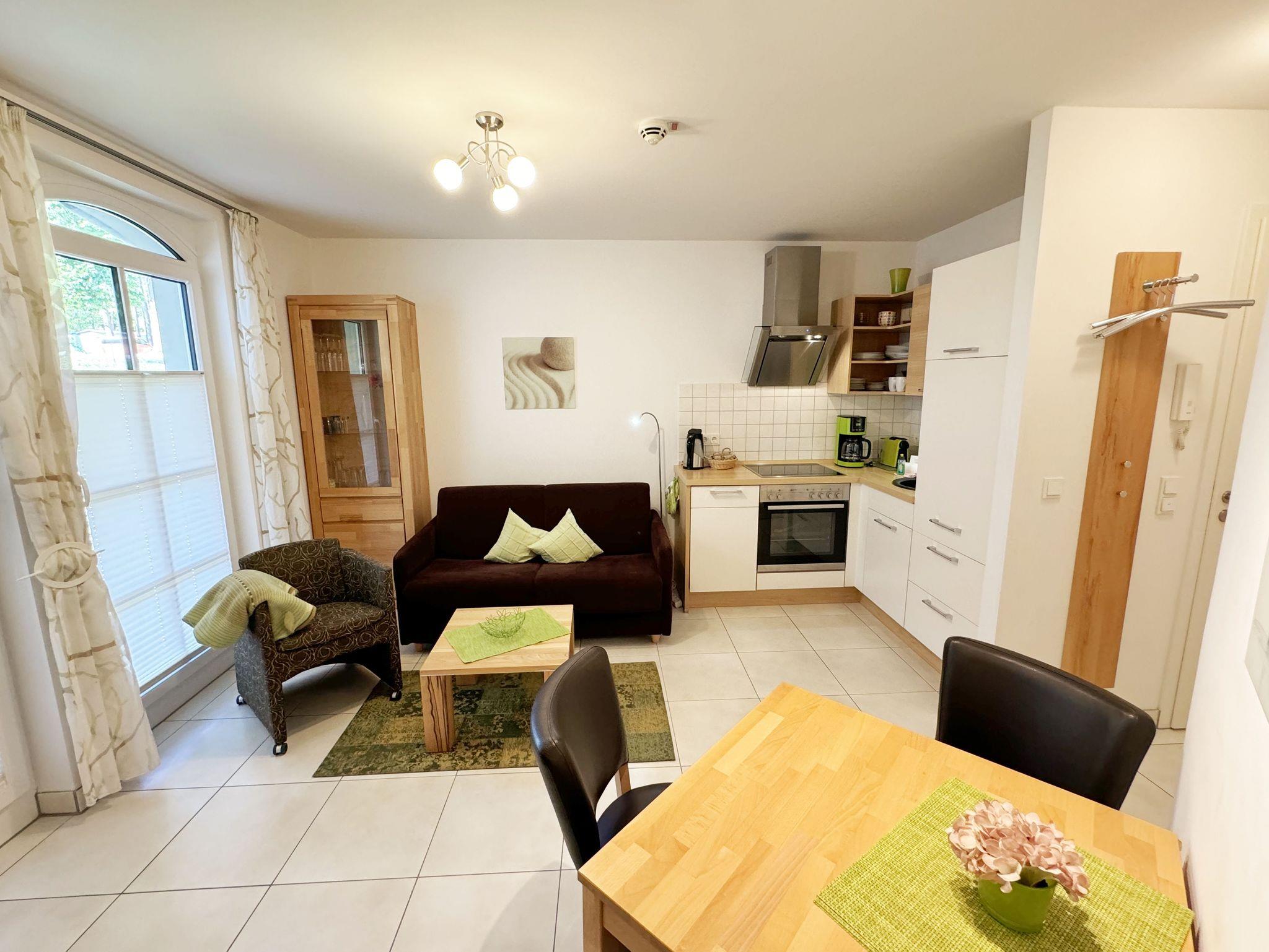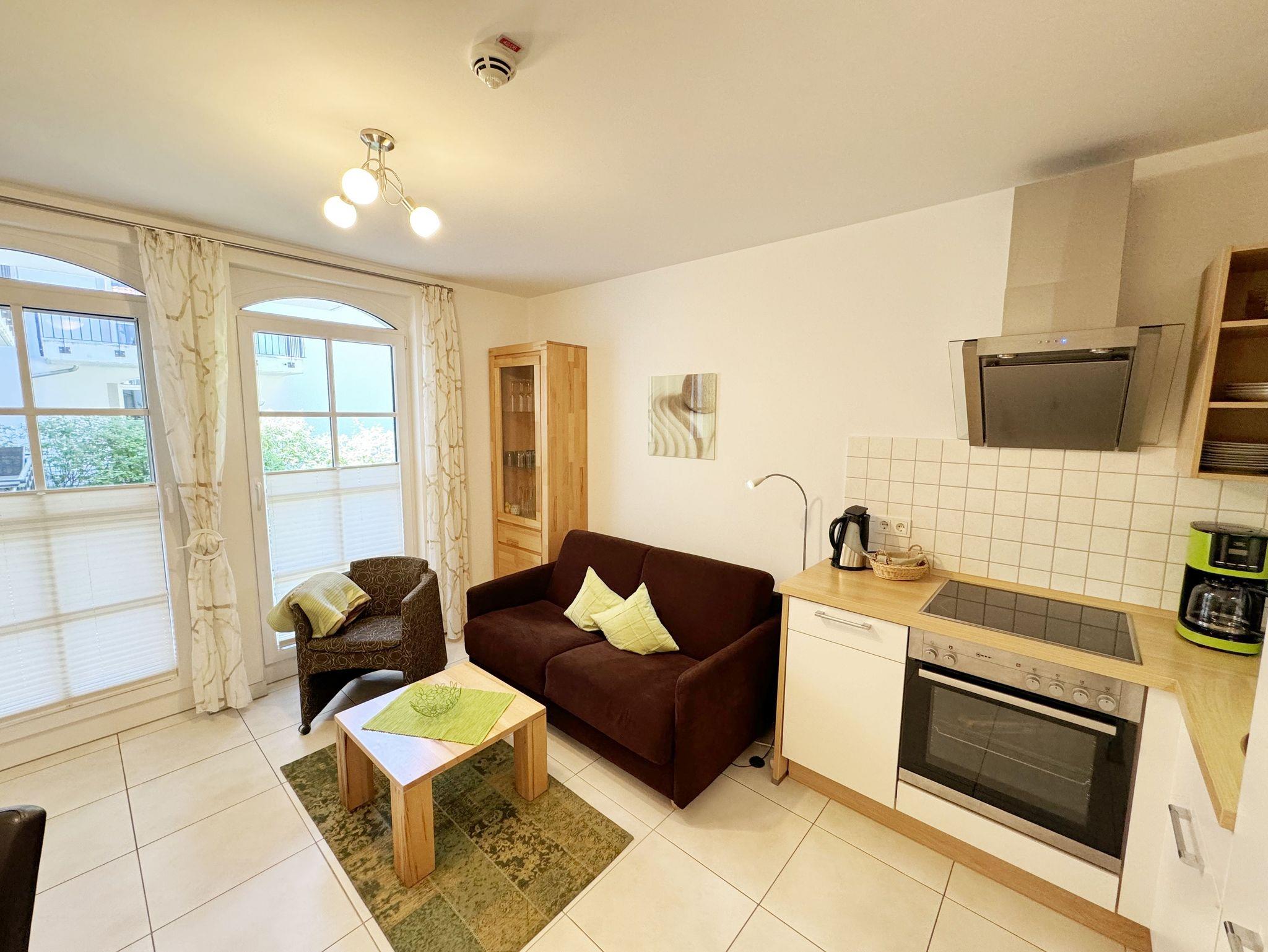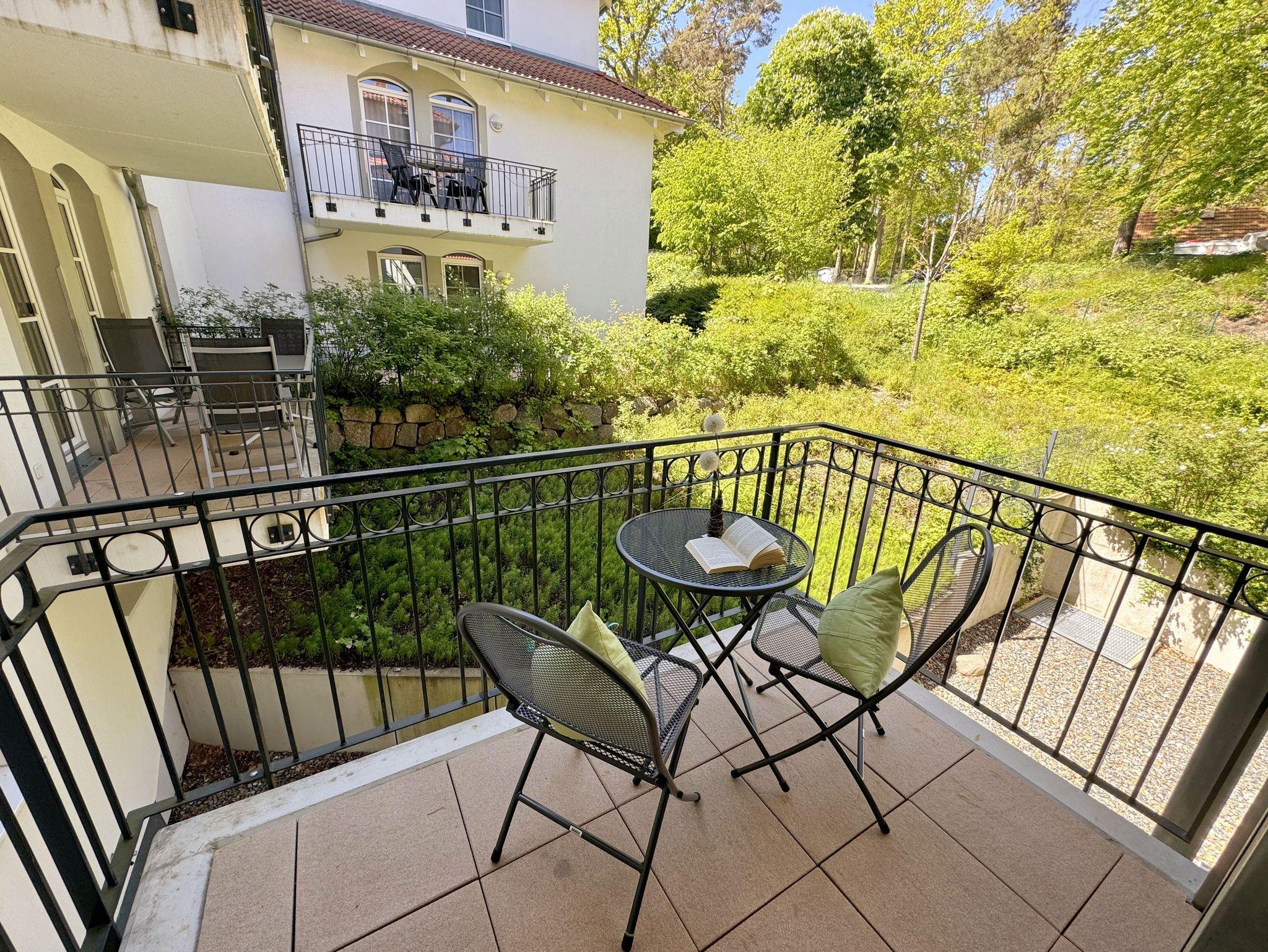 Genießen Sie Komfort und Wellness im Appartement Meeresblick mit Balkon, nur 80 m vom feinen Sandstrand in Baabe entfernt.
