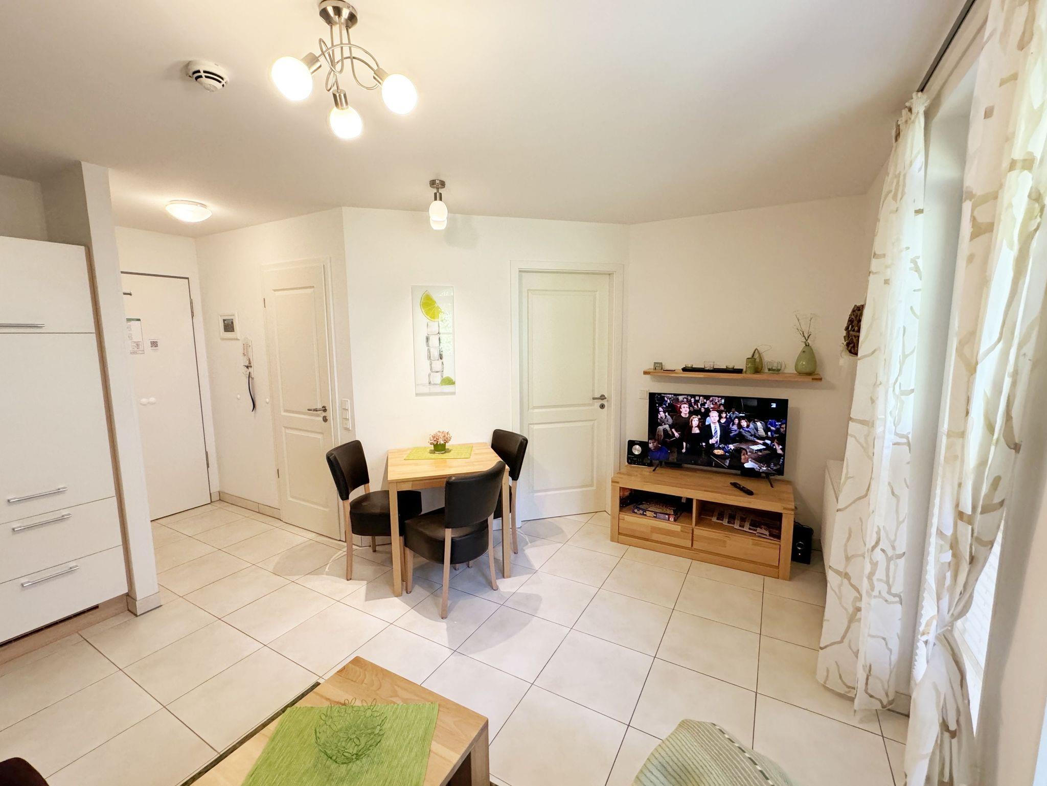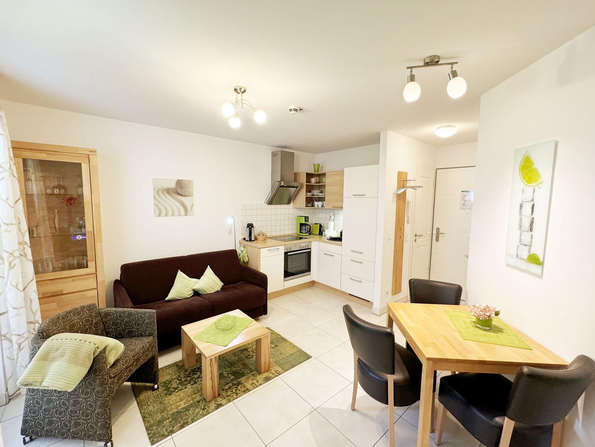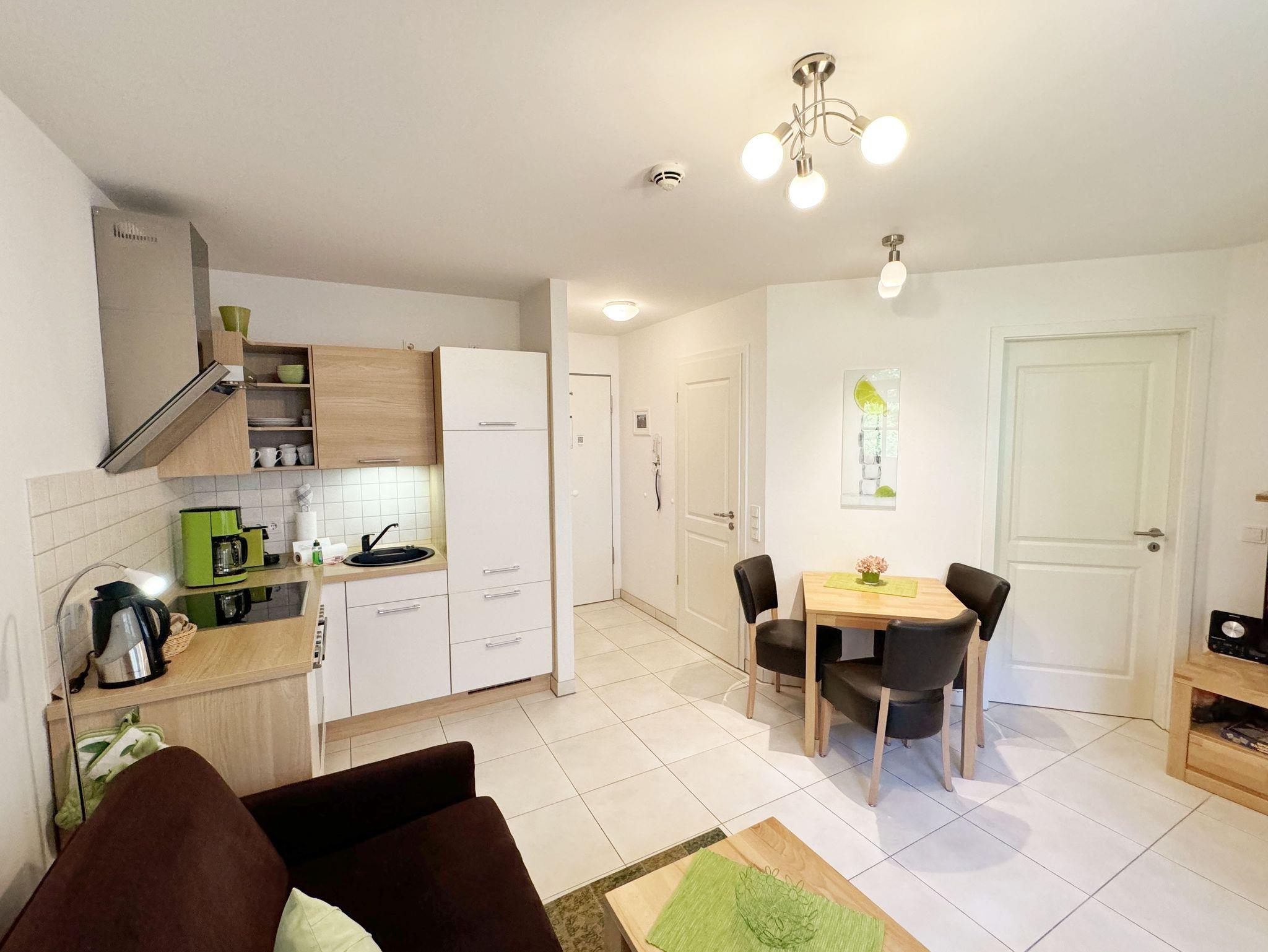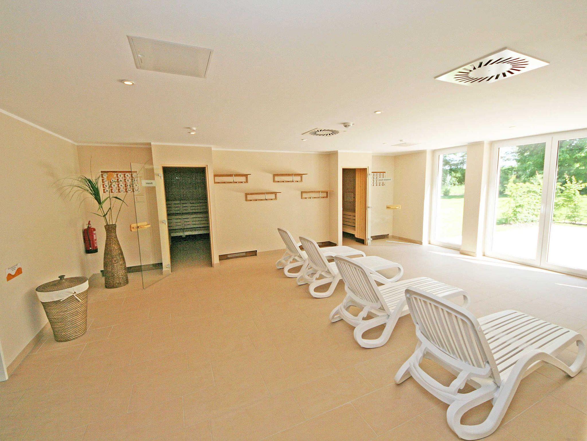 Genießen Sie Komfort und Wellness im Appartement Meeresblick mit Balkon, nur 80 m vom feinen Sandstrand in Baabe entfernt.
