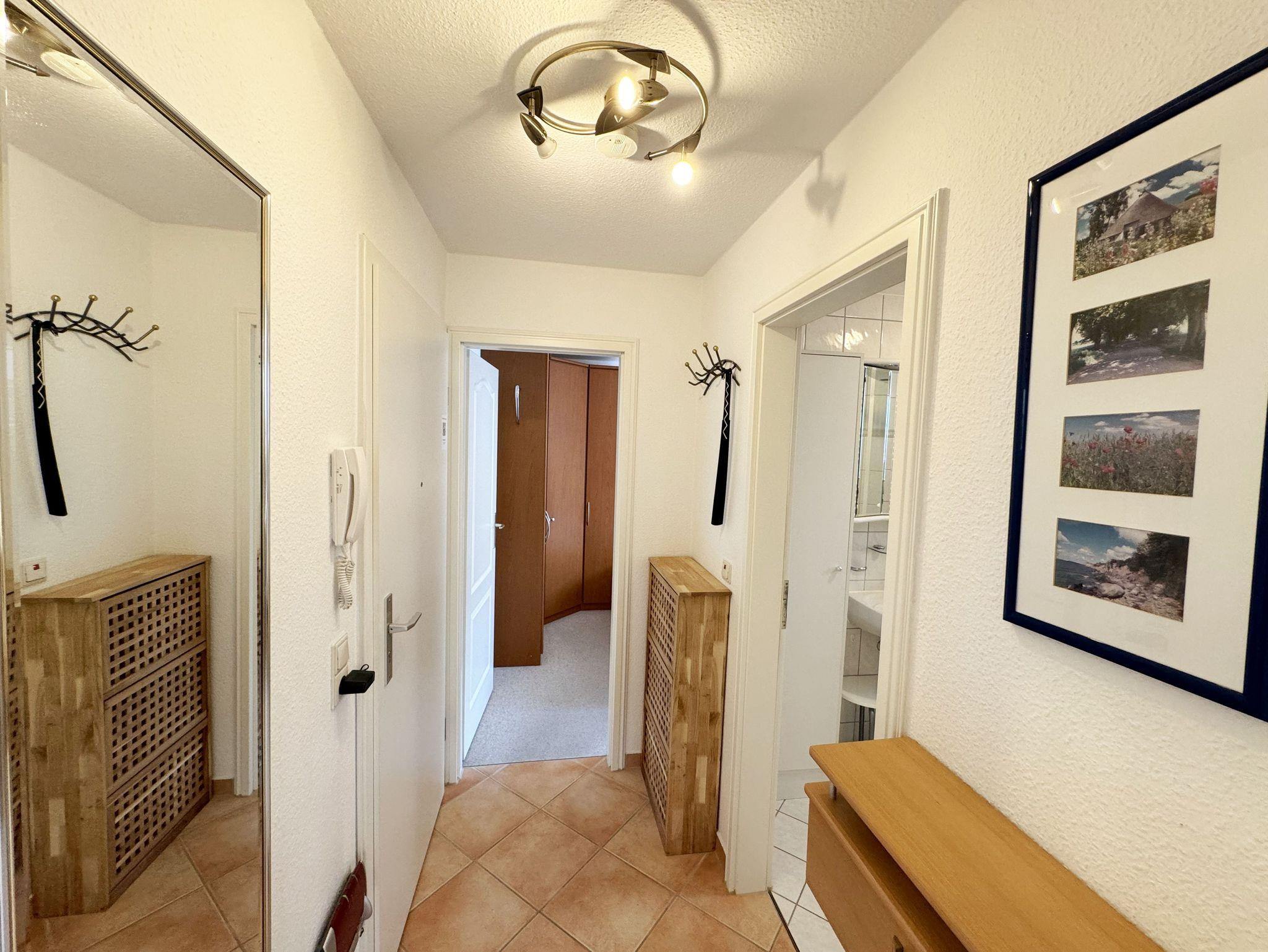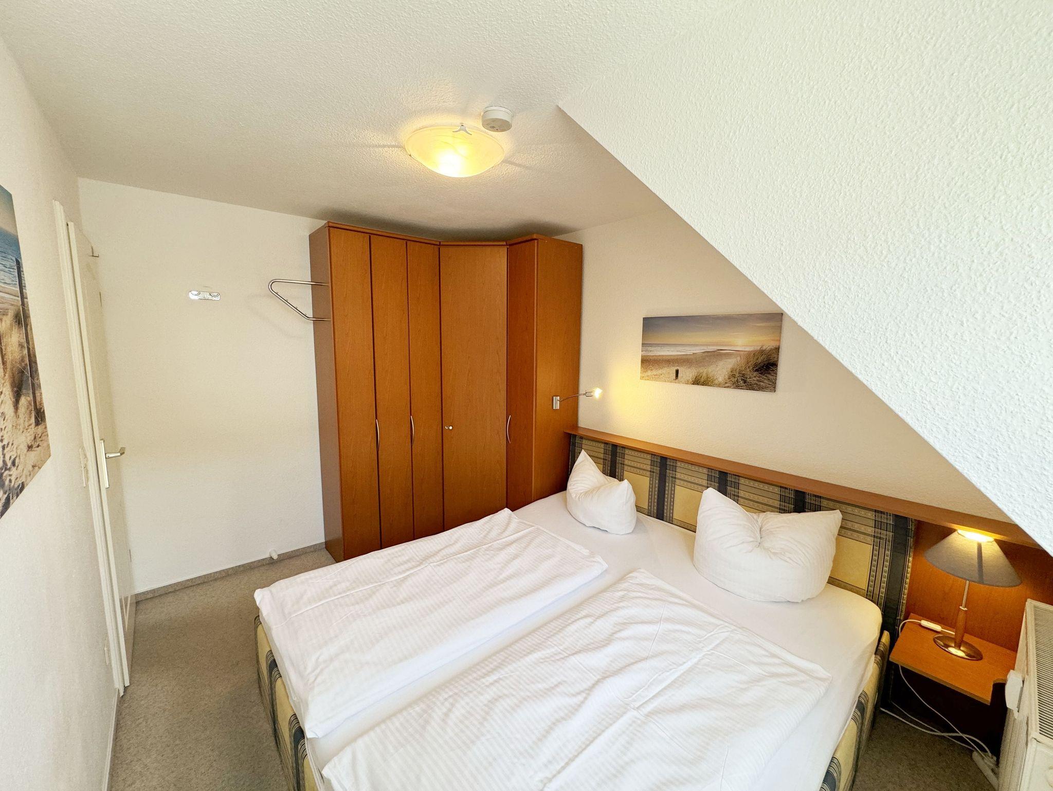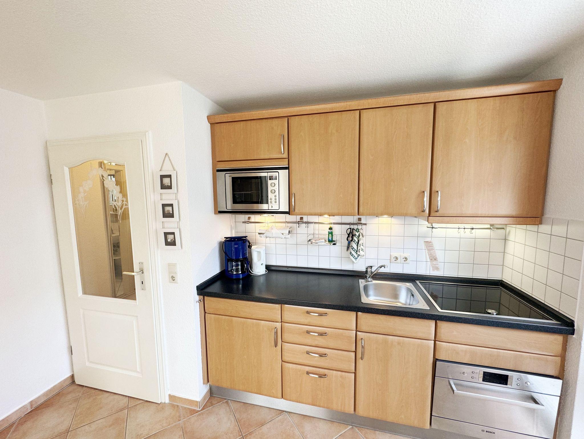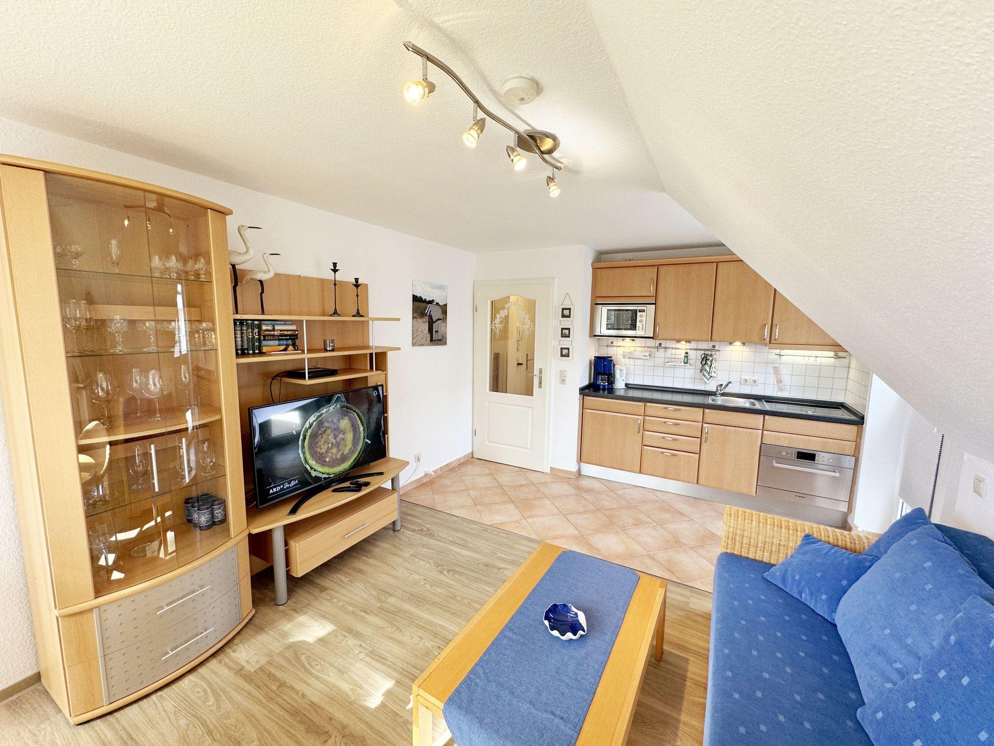 Die gut eingerichtete 2-Raumwohnung (Nichtraucher) Strandmöwe Whg. 08 befindet sich in der 2. Etage und bietet mit ca. 41 qm Platz für max. 2 Erwachsene und 1 Kleinkind bis 3 Jahre im Kinderreisebett. Der geräumige Wohn- und Essbereich ist mit einer Couch, Couchtisch, Leselampe sowie einen TV-Board mit Smart-TV, Blue Ray-Player und Mini-Stereo-Anlage ausgestattet. Auch auf einen Internetzugang WLAN brauchen Sie im Urlaub nicht verzichten. Dieser ist für Sie inklusive. Der angrenzende Essbereich passt sich dem Raum an. Das helle Schlafzimmer verfügt über ein Doppelbett mit Einzelmatratzen (2 x 0,90 m x 2,00 m), Nachttischablage und einem Kleiderschrank. Für einen angenehmen Schlaf sorgen Verdunklungsplissees. Die Küchenzeile enthält einen Kühlschrank mit Eisfach, Induktionsfeld, Geschirrspüler, Mikrowelle mit Grillfunktion, Wasserkocher, Kaffeemaschine, Toaster und diverse Küchenutensilien. Das Bad rundet mit einem Waschtisch, WC, Fön und Dusche den Wohnkomfort ab. Der Wohn- und Schlafbereich wird durch ein Insektenschutzgitter abgerundet. Den bestuhlten und großzügigen Balkon (Süd/Ost) mit Sonnenschirm erreichen Sie über den Wohnbereich. Reinigungsutensilien sowie einen Wäscheständer gehören zusätzlich zur Ausstattung. Vom Tiefgaragenstellplatz (Nr. 08, Einfahrtshöhe 1,90m) gelangen Sie mit dem Aufzug bequem in die 2. Etage. Eine Fahrradabstellmöglichkeit befindet sich in der Tiefgarage im wohnungseigenen Keller. Haustiere sind in der Wohnung nicht erlaubt. Die Erstausstattung eines Wäschepaketes (komplette Bettwäsche, 1 Duschhandtuch, 1 kleines Handtuch) können Sie bis 14 Tage vor Anreise gegen einen Aufpreis dazu buchen oder durch eigene ergänzen. Ab 2 gebuchten Paketen erhalten Sie einmalig 1 Geschirrhandtuch und 1 Duschvorleger dazu.
