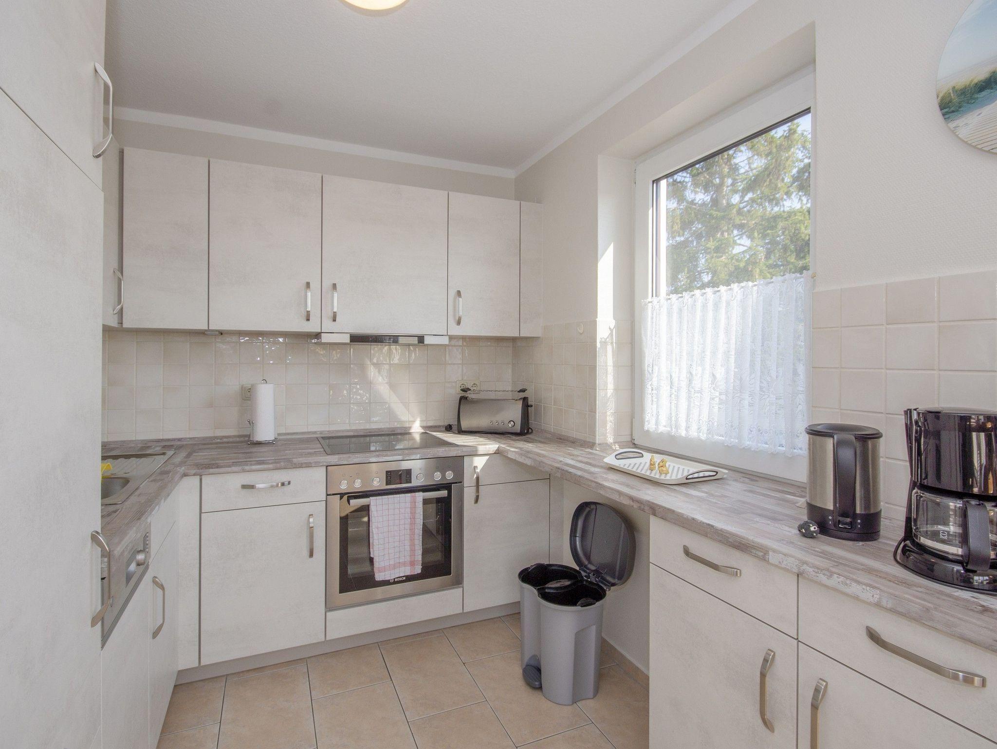 In der Wohnung befindet sich eine offene, voll ausgestattete Küche mit Spülmaschine, Herd, Cerankochfeld und Mikrowelle. Zahlreiche Küchenutensilien eröffnen Ihnen die Möglichkeit, einen kulinarischen Kochabend zu verleben.