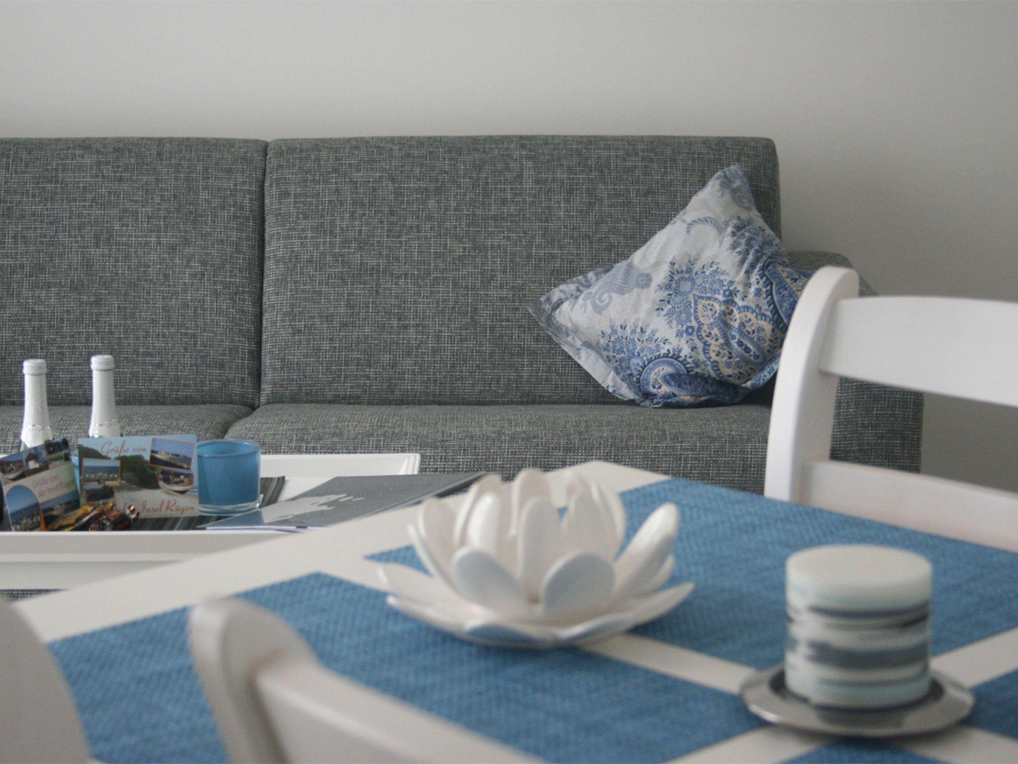 Die ca. 42 m² große Ferienwohnung Am Strand 2 ist modern eingerichtet und für 2 bis 4 Personen buchbar. Im kombinierten Wohn-/Essbereich finden Sie ein bequemes Schlafsofa, das als Aufbettung für 2 Personen genutzt werden kann. Von hier aus können Sie den Balkon betreten.