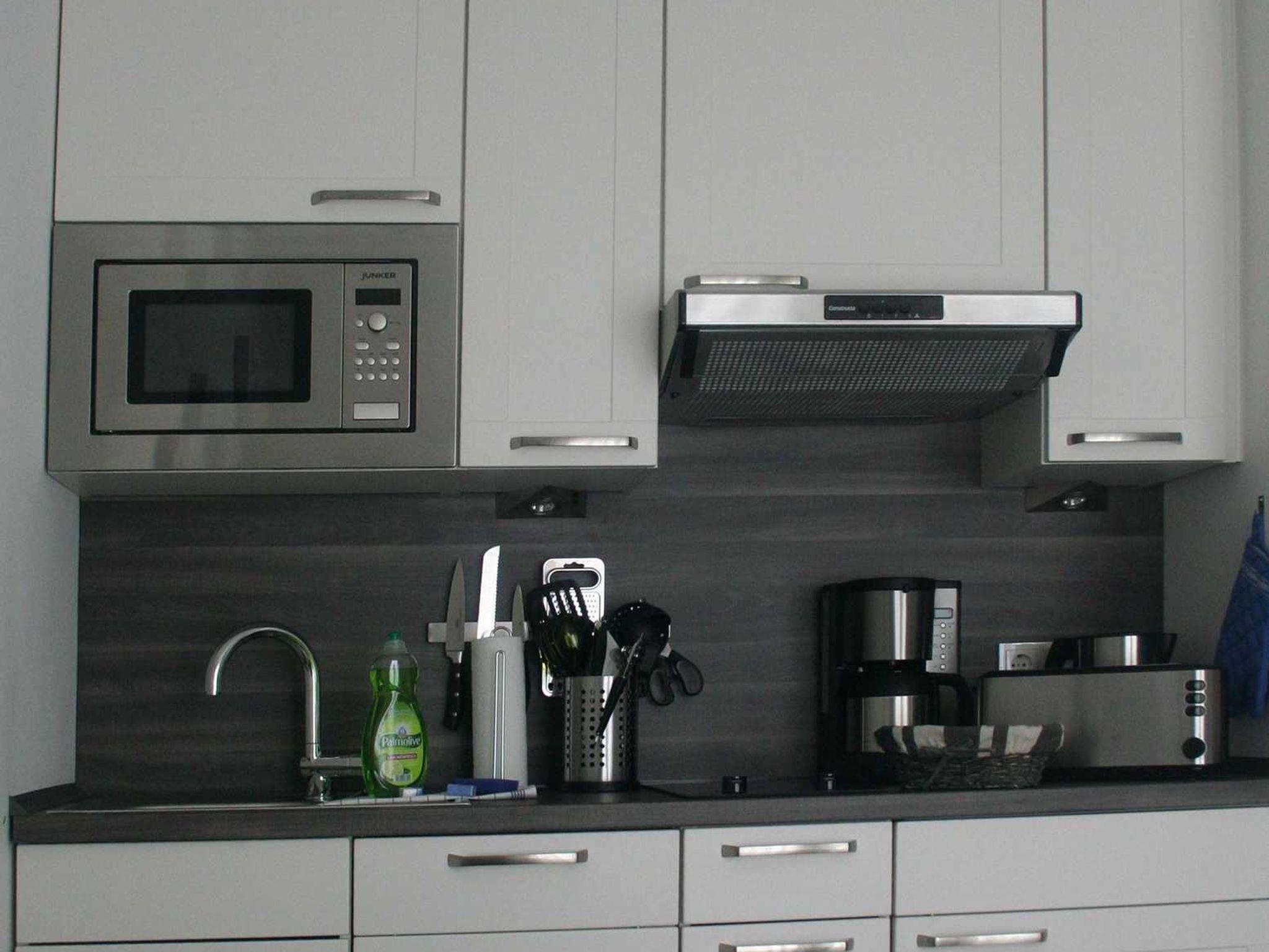 Die harmonisch integrierte Küchenzeile ist komplett ausgestattet und lässt keine Wünsche offen.