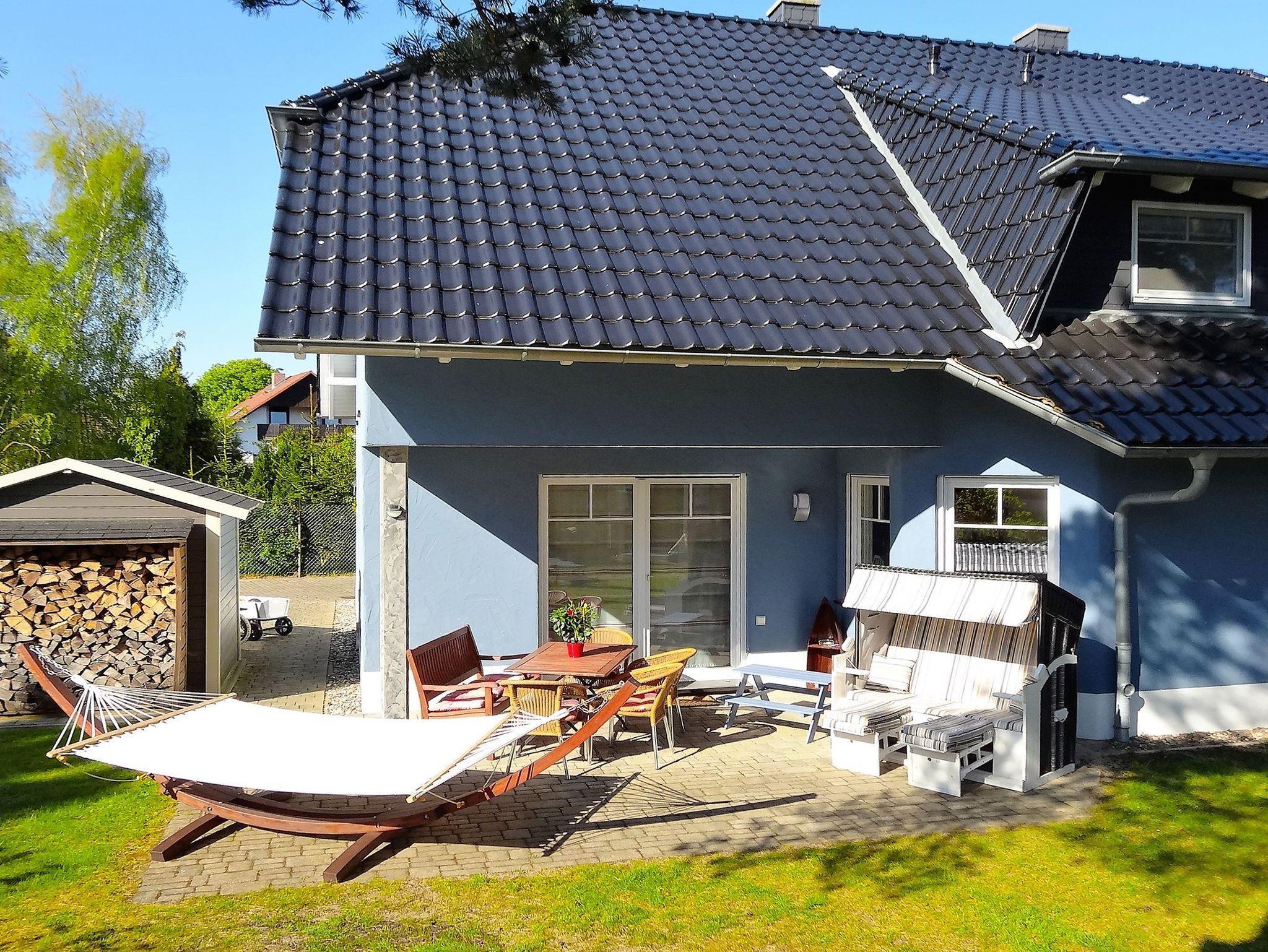 Hochwertige Doppelhaushälfte in Baabe mit Garten, Sauna und Spielturm für Familienurlaub.