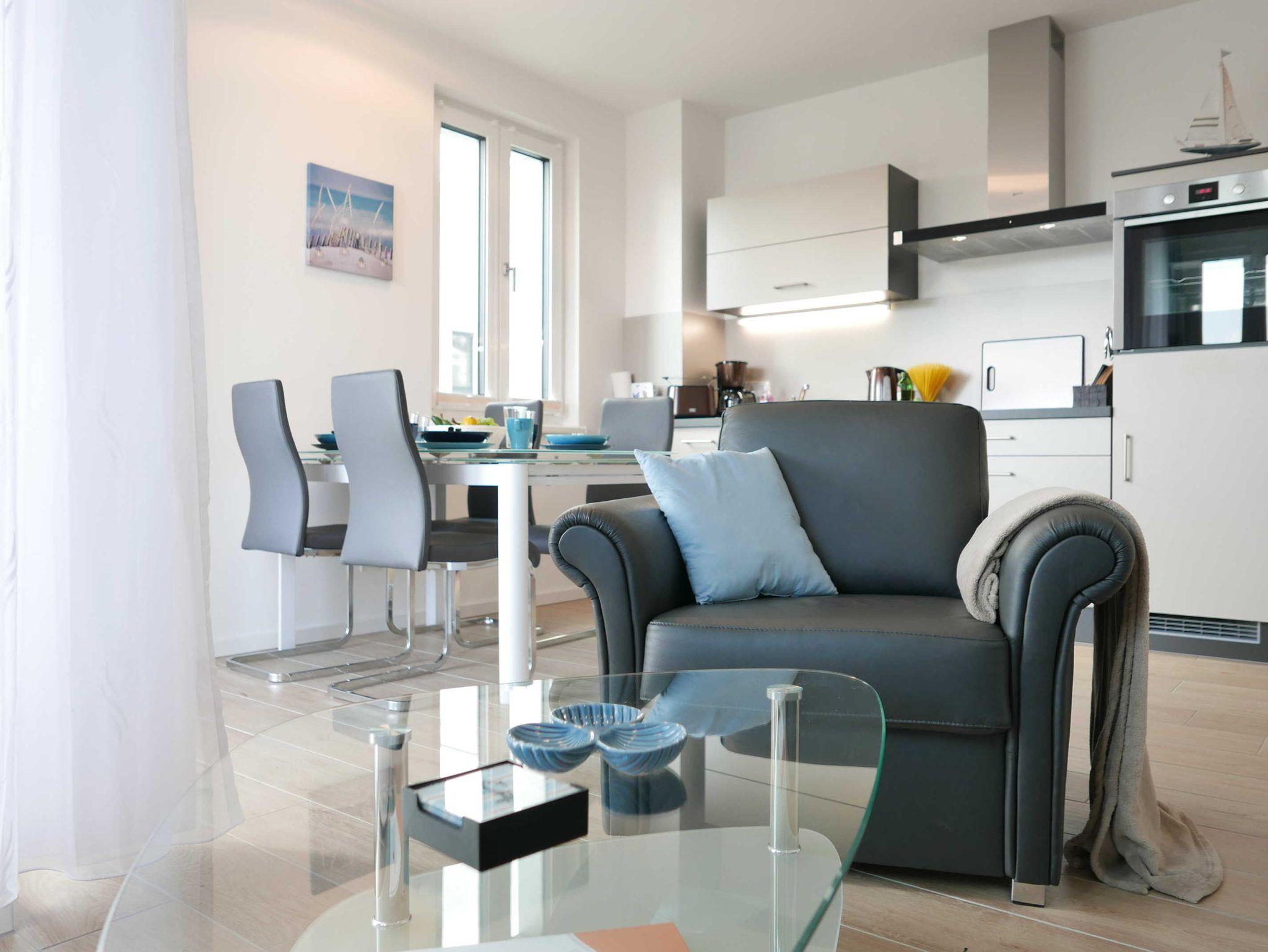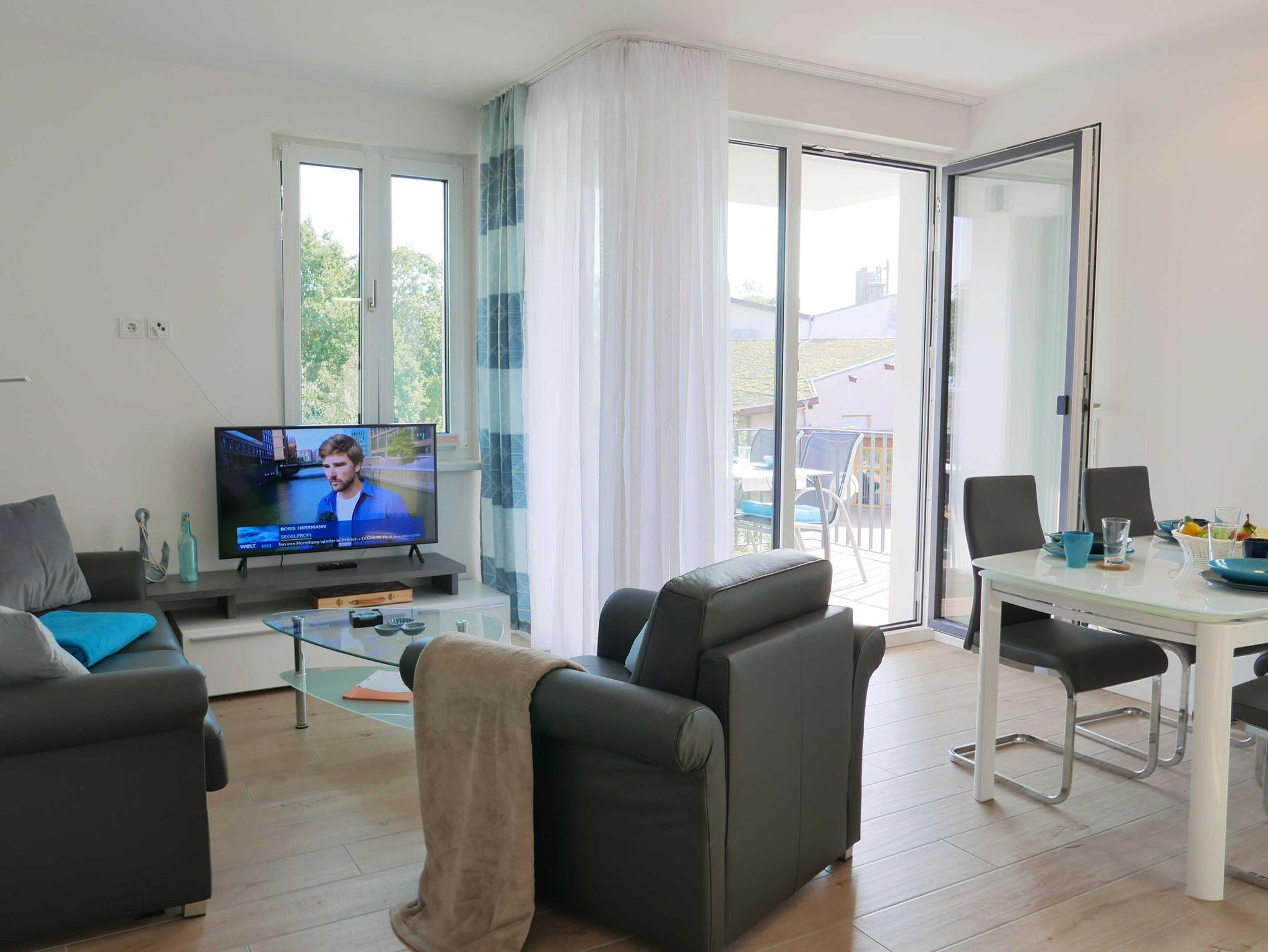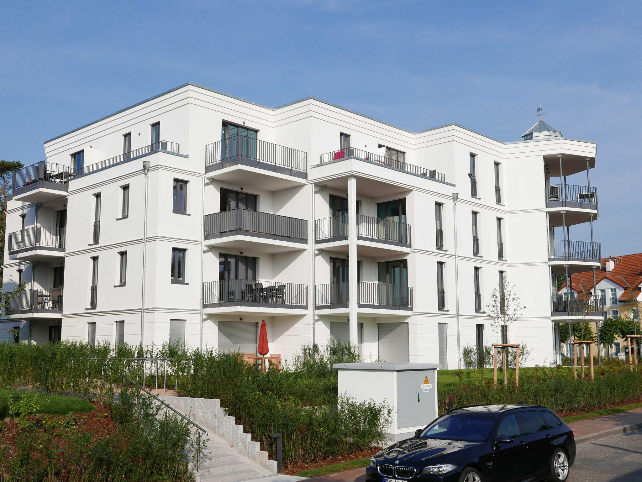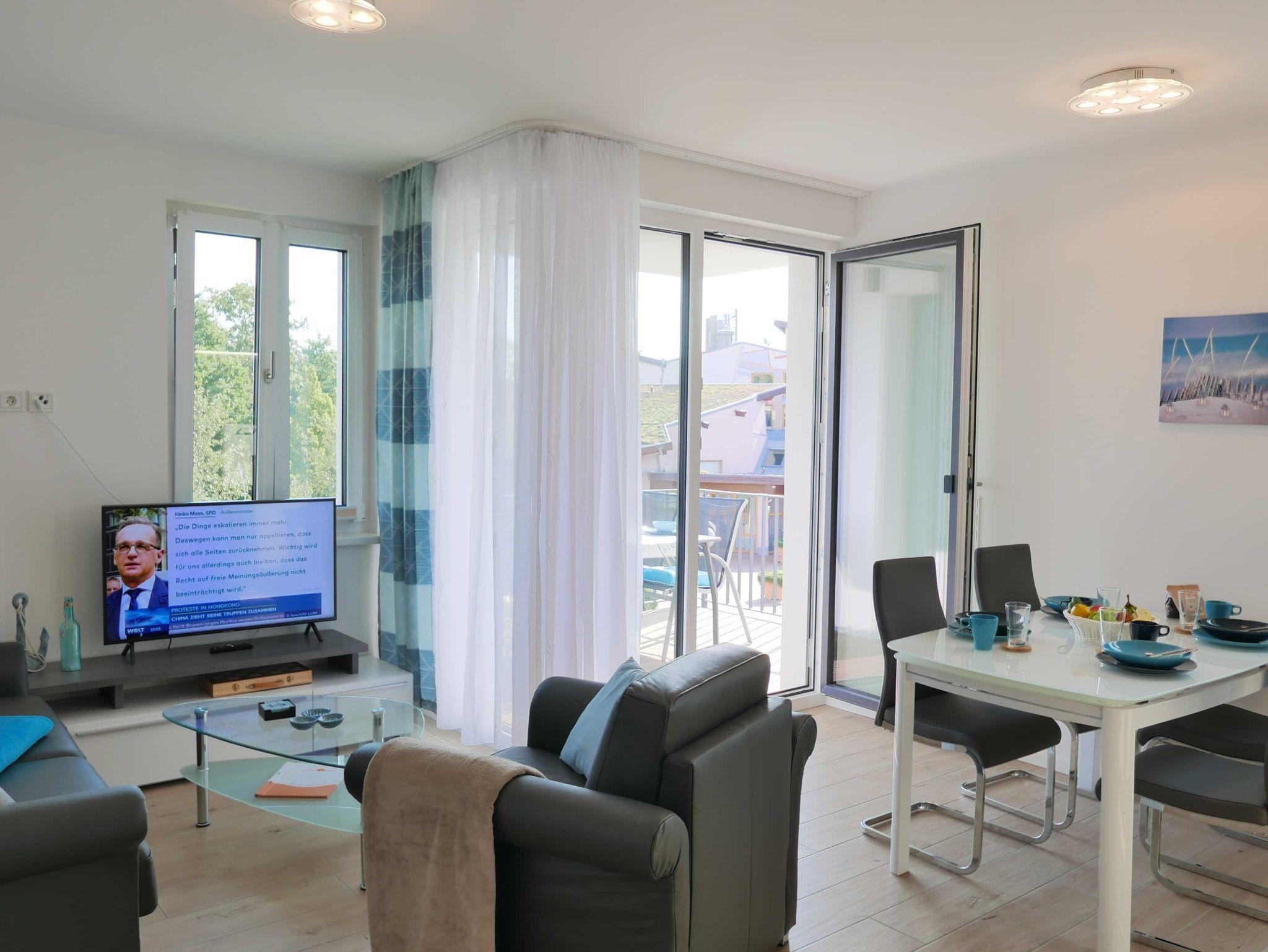 Moderne 2-Zimmer-Wohnung mit Meerblick, Balkon und privater Sauna im Villen-Ensemble Baabe, nahe Strand und Zentrum.