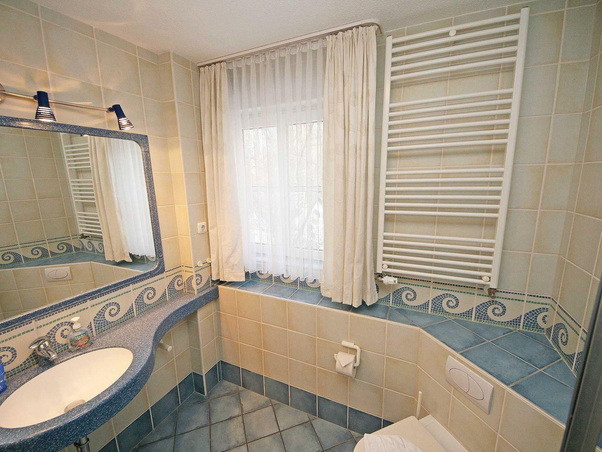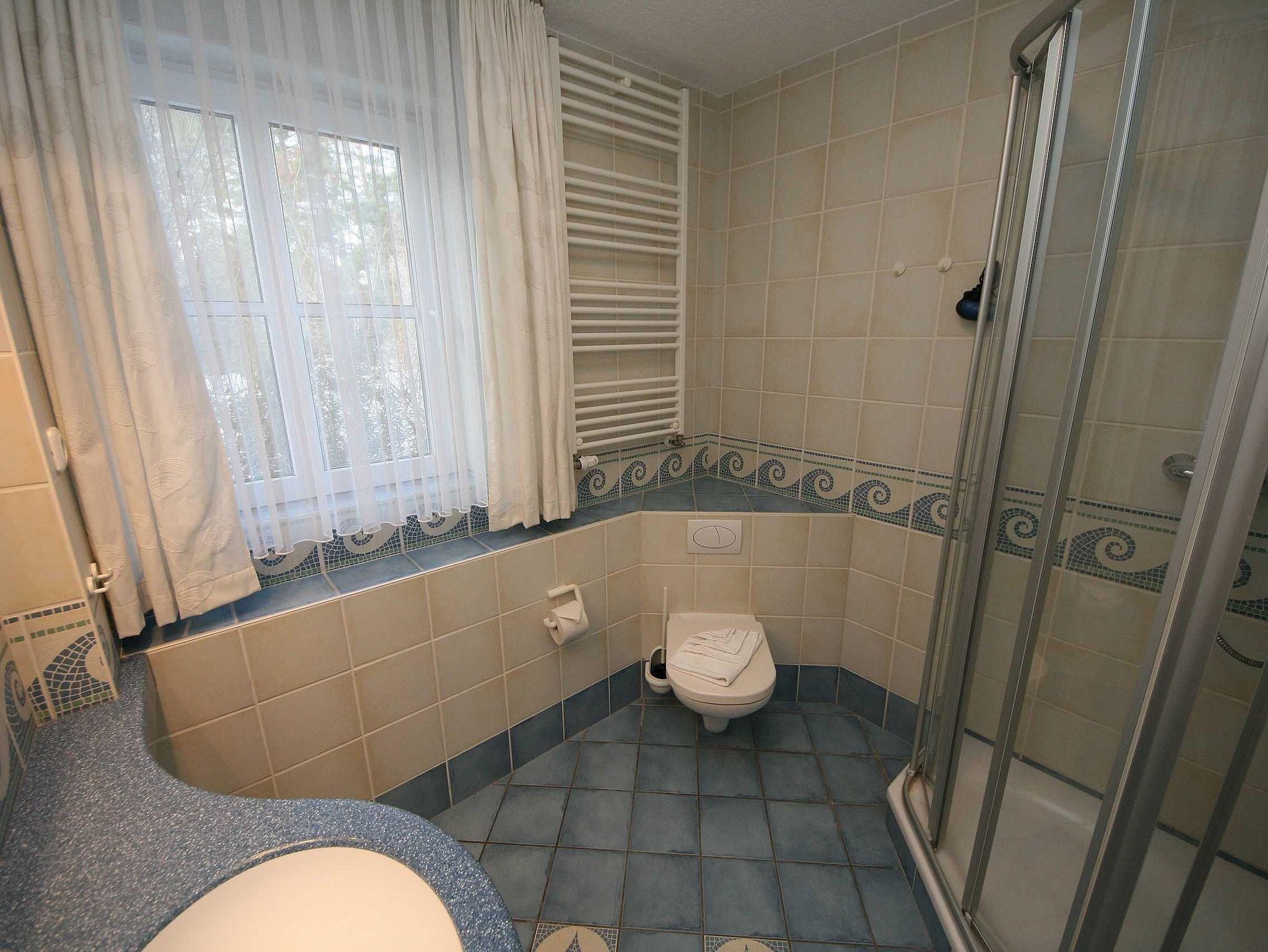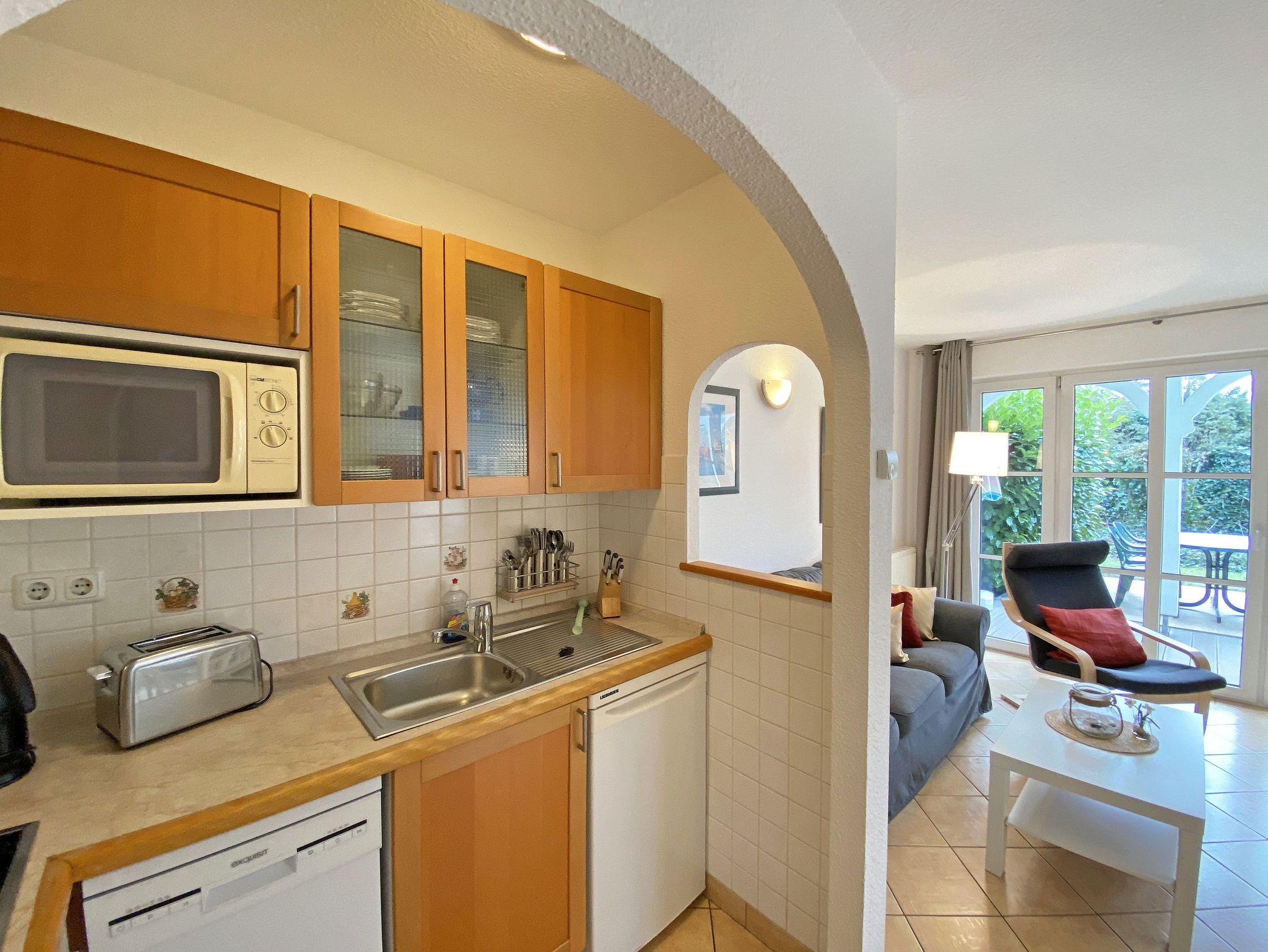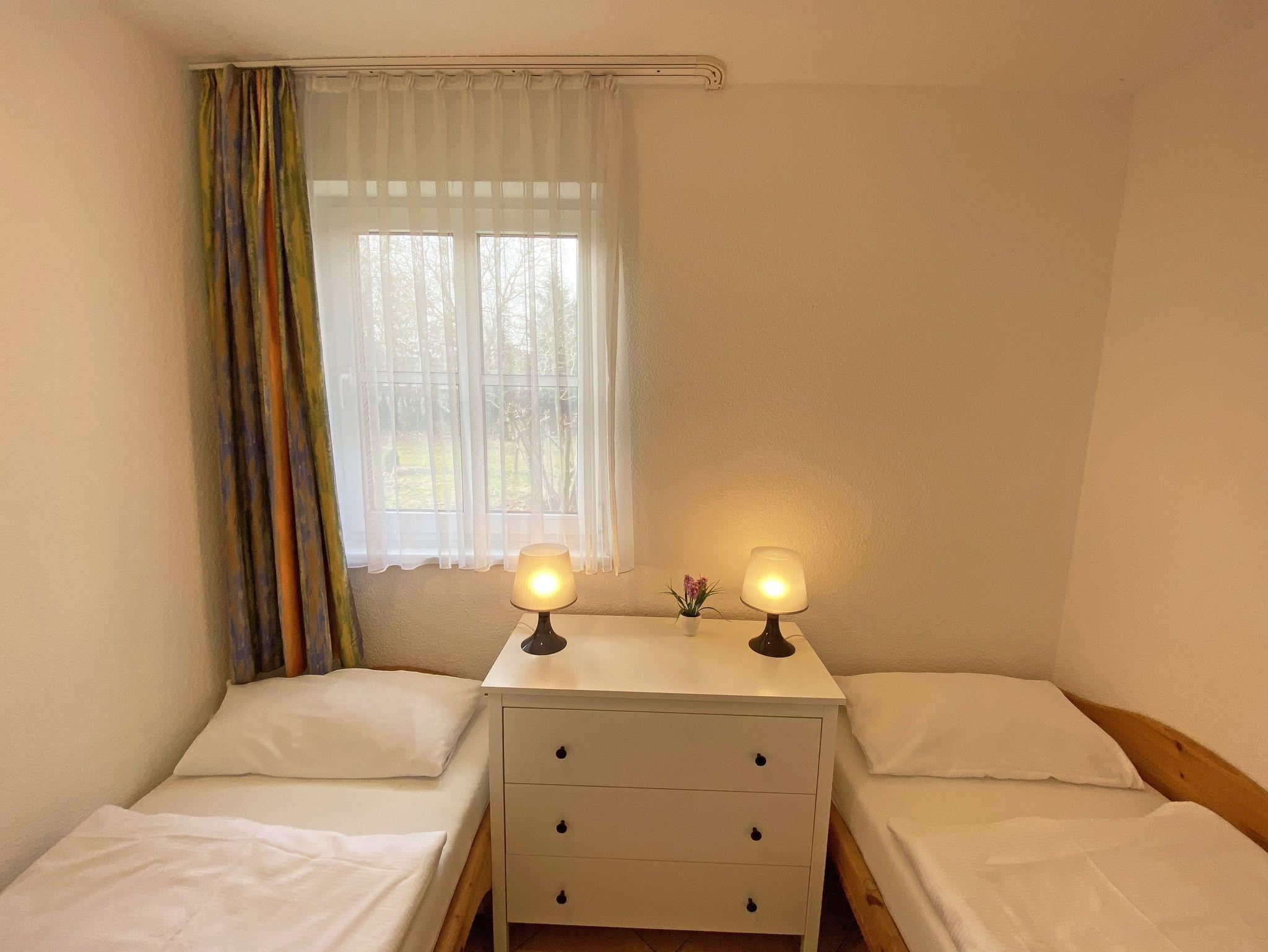 Die gemütliche und komfortable 3-Raum-Nichtraucherwohnung mit ca. 55qm Wohnfläche befindet sich im Erdgeschoss und bietet ausreichend Platz für 2 Erw. + 2 Kinder bis 17 Jahre. Die im Rügener Stil behaglich eingerichtete Ferienwohnung bietet einen großzügigen Wohn- Essbereich mit Zugang auf die teilweise überdachte Terrasse. Die kleine aber komplett eingerichtete Küchenzeile mit Geschirrspüler, Backofen, 4 Herdplatten, Kaffeemaschine, Toaster, Wasserkocher sowie diverse Küchenutensilien lassen keine Wünsche offen und grenzen an den Wohnbereich. Im Wohn- Essbereich erwartet Sie ein Esstisch mit 4 Stühlen, eine gemütliche Couch mit einem Sideboard sowie einen LCD Sat-TV in HD-Qualität für eine hohe Programmvielfalt, CD und DVD-Player sowie ein Radio mit USB-Anschluss und SD-Kartenleser. Vom Wohnbereich aus gelangen Sie auf die teilweise überdachte, im Bäderstil gehaltene und bestuhlte Terrasse (Richtung Süden) mit 2 zusätzlichen Sonnenliegen. Das 1. Schlafzimmer verfügt über 1 Doppelbett (2x90x200cm) mit Nachtischkonsolen und einen viertürigen Kleiderschrank. Das Aufstellen eines Kinderreisebettes wäre hier möglich. Das 2. und damit kleinere Schlafzimmer ist mit 2 Einzelbetten (je 80x200cm), und Nachttischablagen ausgestattet. Beide Schlafzimmer sind abdunkelbar. Das geflieste Tageslicht-Bad bietet Ihnen eine Dusche, WC, Fön und einen Waschtisch. Auch im Urlaub brauchen Sie in der Wohnung nicht auf einen Internetanschluss (WLAN) verzichten. Dieser ist für Sie inklusive!!! In einem Gemeinschaftsraum können Sie eine Waschmaschine gegen eine Extragebühr nutzen (in den Monaten: November bis Ende März nicht im Betrieb). Ein Parkplatz Nr. 01 befindet sich vor dem Haus Rügenwelle und ist für Sie inklusive. Ihre mitgebrachten oder geliehenen Fahrräder können Sie auf dem Grundstück anschließen. Auf Wunsch kann auch 1x Kinderreisebett (mit Matratze, ohne Bett Inlett) / 1x Hochstuhl gestellt werden. 2 kleine Haustiere können gegen eine Gebühr dazu gebucht werden. Die Erstausstattung eines Wäschepaketes (komplette Bettwäsche, 1 Duschhandtuch, 2 kleine Handtücher) können Sie bis 14 Tage vor Anreise gegen einen Aufpreis dazu buchen oder durch eigene ergänzen. Ab 2 gebuchten Paketen erhalten Sie einmalig 1 Geschirrhandtuch und 1 Duschvorleger hinzu.