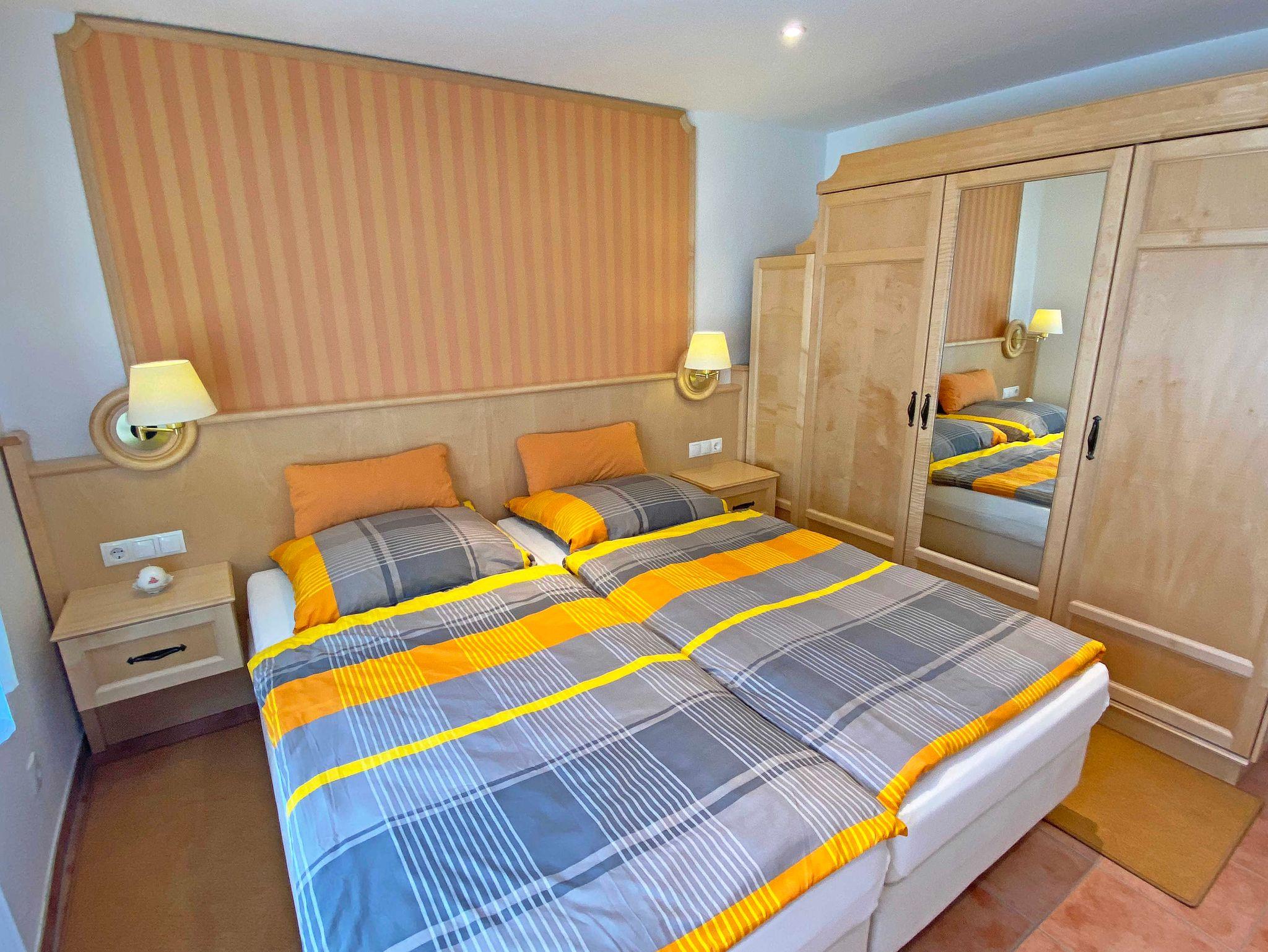 Das Appartement Hoffi ist ein Nichtraucherappartment und verfügt über eine Wohnfläche von ca. 30 m², die perfekt für 2 Personen geeignet ist. Die Wohnung befindet sich im Erdgeschoss in einem Anbau und ist durch einen separaten Eingang zu erreichen. Der kombinierte Koch- und Essbereich ist der ideale Ort, um seine Planung für den Tag zu starten. Eine gut ausgestattete Küchenzeile mit 4-Zonen Ceranfeld, Backofen, Geschirrspüler, Kühlschrank, Spüle, diverse Küchenutensilien, Filterkaffeemaschine, Wasserkocher und Toaster sowie ein Essplatz mit 2 Stühlen, finden Sie hier vor. Ein 32 Zoll Flachbildschirm informiert Sie schon am morgen über die Neuigkeiten in der Welt. Ein Telefon für Gespräche ins deutsche Festnetz sowie ein WLAN Anschluss gehören zur freien Nutzung dazu. Das Schlafzimmer ist mit einem großen Doppelbett (1,80 m x 2,00 m), 2 Nachttischkonsolen, 2 Stühle zur Ablage und einem großem Kleiderschrank ausgestattet. Auch hier finden Sie einen Flachbildschirm (40 Zoll) vor. Das gemütliche Tageslichtbad verfügt über eine moderne Dusche, einen Waschtisch mit einem LED-Wandspiegel, Handtuchtrockner und WC. Ein separater Stellplatz ist für Ihren Pkw auf dem Grundstück vorhanden. Ein kleiner Aussentisch mit 2 Stühlen steht Ihnen bei Sonnenschein auf dem Grundstück zur Verfügung. Die Erstausstattung an Bettwäsche sowie die Endreinigung sind für Sie inklusive. Die Handtücher sind bitte mitzubringen. Ein Haustier ist in der Wohnung nicht erlaubt!