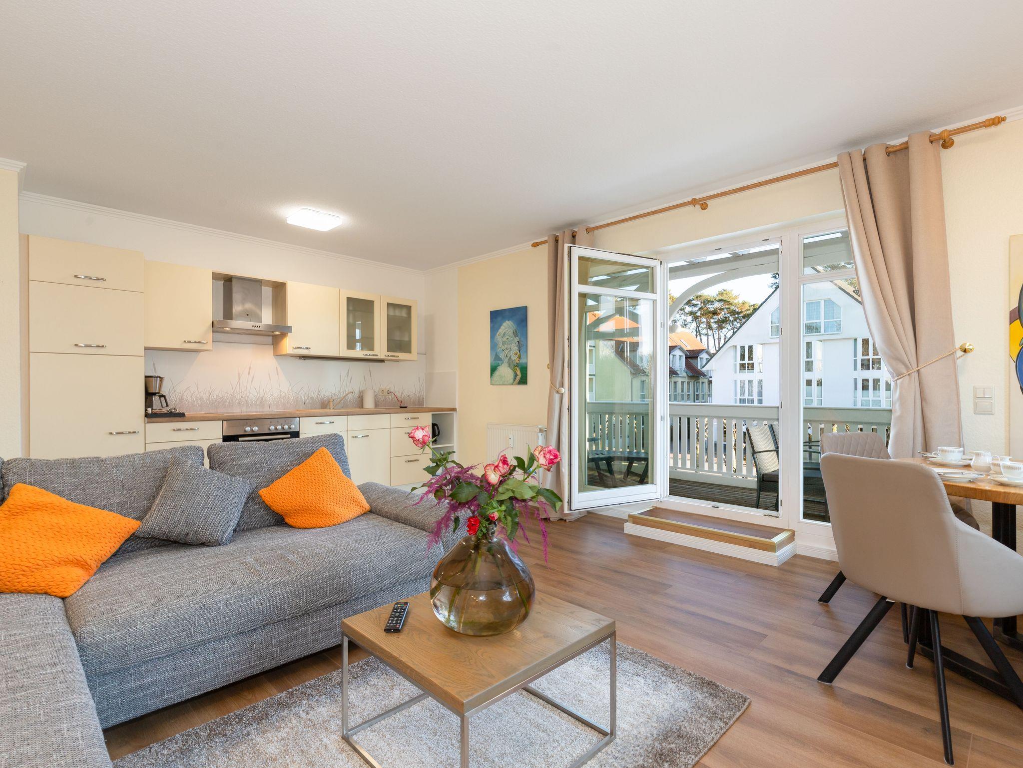 Moderne Ferienwohnung mit großem Balkon nahe Ostseestrand in Baabe, ideal für Naturfreunde und Erholungssuchende.