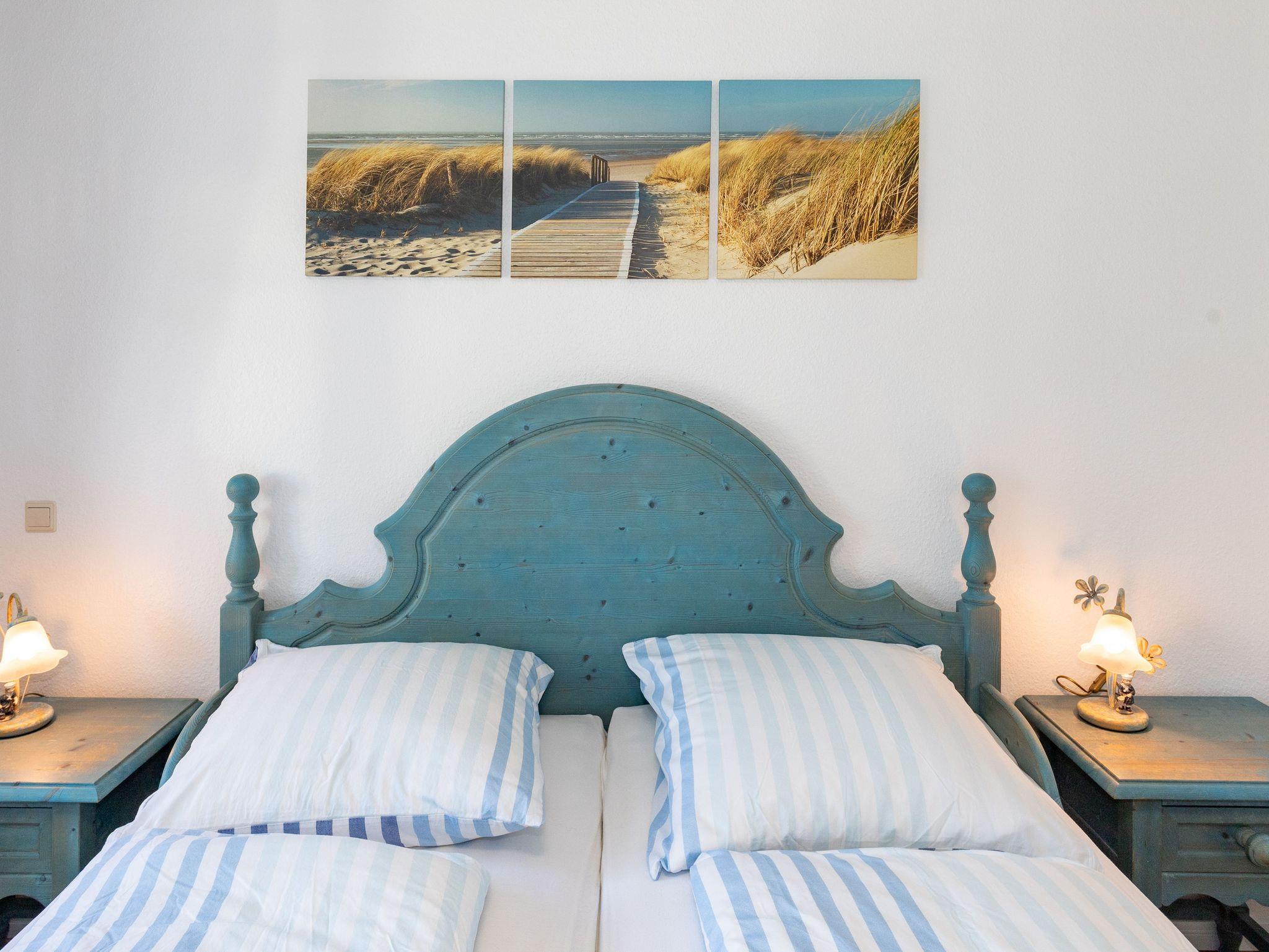 Das Schlafzimmer ist mit einem bequemen Doppelbett (180 x 200cm) mit Nachttischen und Leselampen sowie einem Kleiderschrank ausgestattet. Ein kleines Kinderreisebett und ein Hochstuhl können auf Wunsch kostenlos zur Verfügung gestellt werden. Bei Ihrer Anreise liegen frische Handtücher bereit und die Betten sind bereits mit Bettwäsche bezogen.