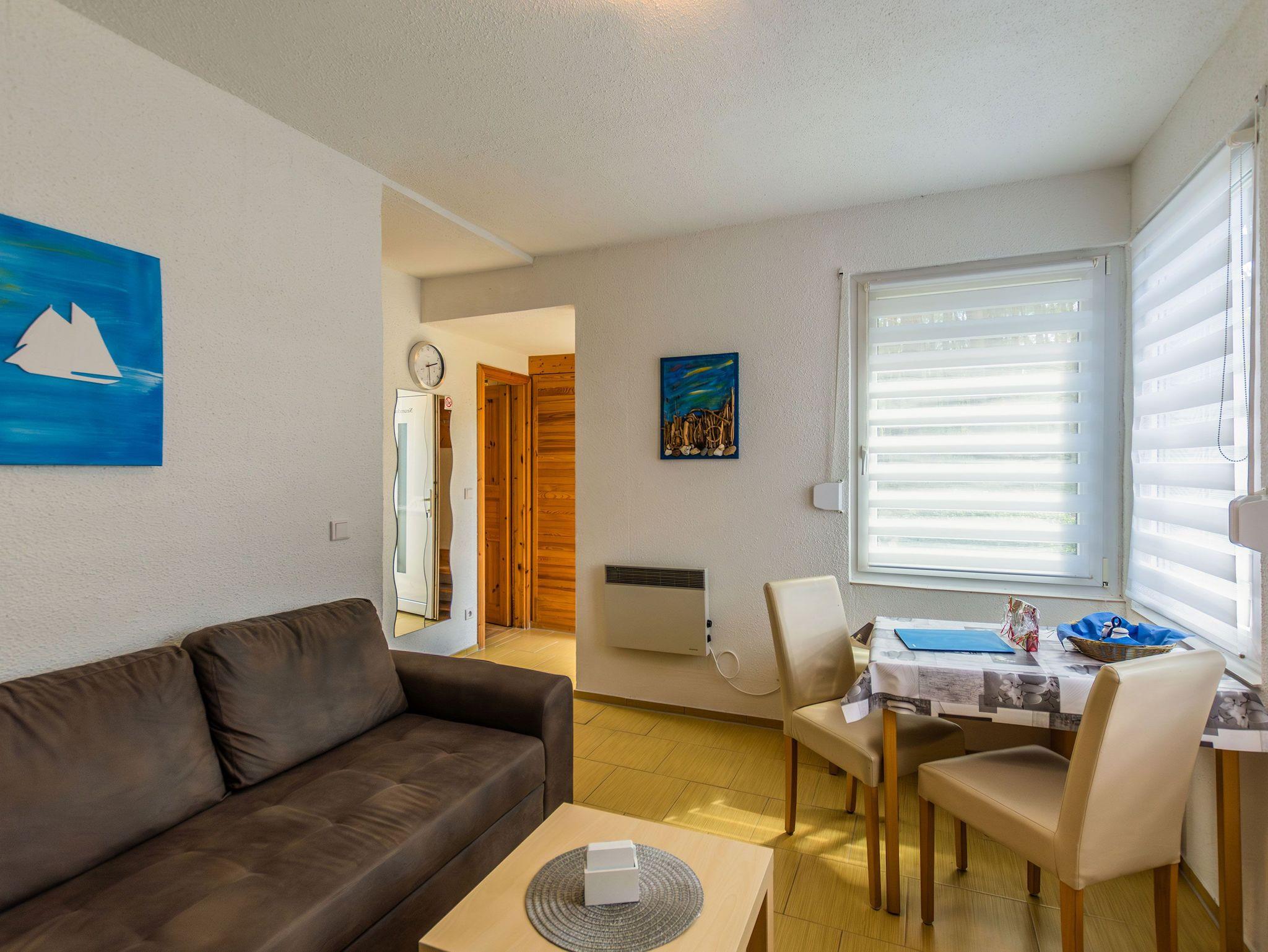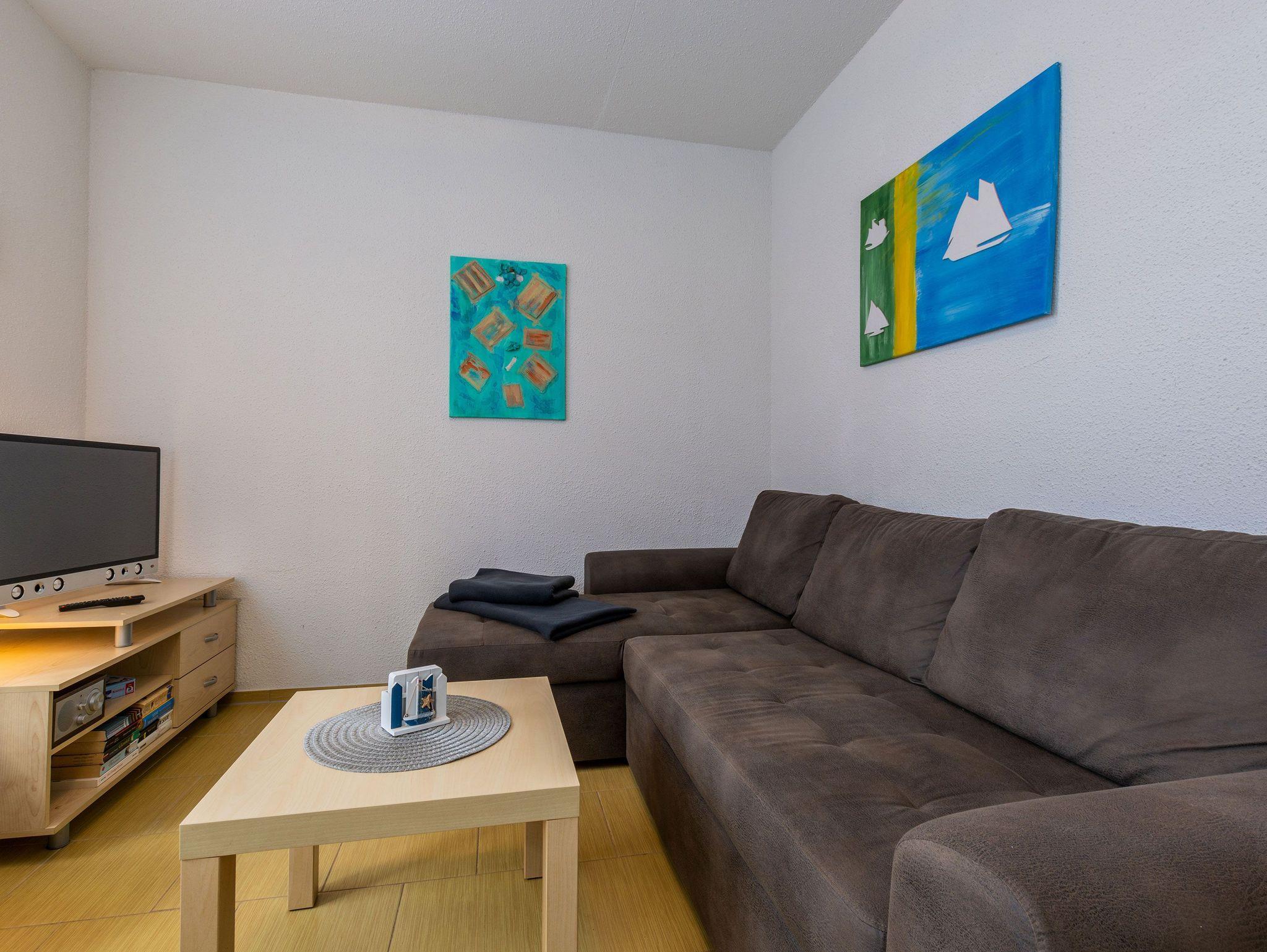Der gemütliche Wohnbereich überzeugt mit einer Couchgarnitur, einem Fernseher und einem Radio. Zudem können hier 2 weitere Personen auf dem Schlafsofa die Nächte verbringen.