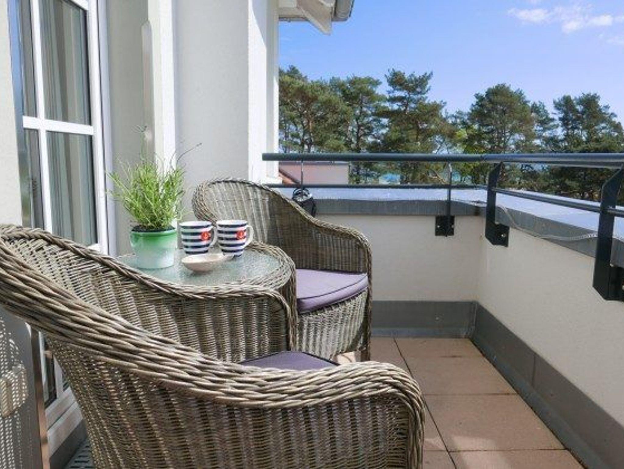 Ein besonderes Highlight ist der seitliche Meerblick vom Wohnzimmer und Südbalkon. Der Balkon bietet tolle Lounge-Möbel, welche die Wohlfühl-Atmosphäre perfekt machen.