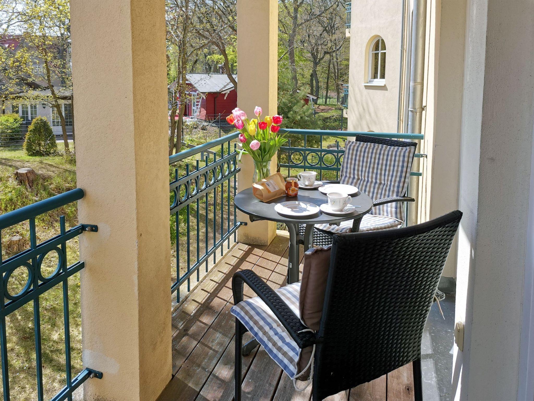 Moderne 2-Zimmer-Ferienwohnung in Baabe mit Balkon und Wellnessbereich nahe Strand und Promenade.