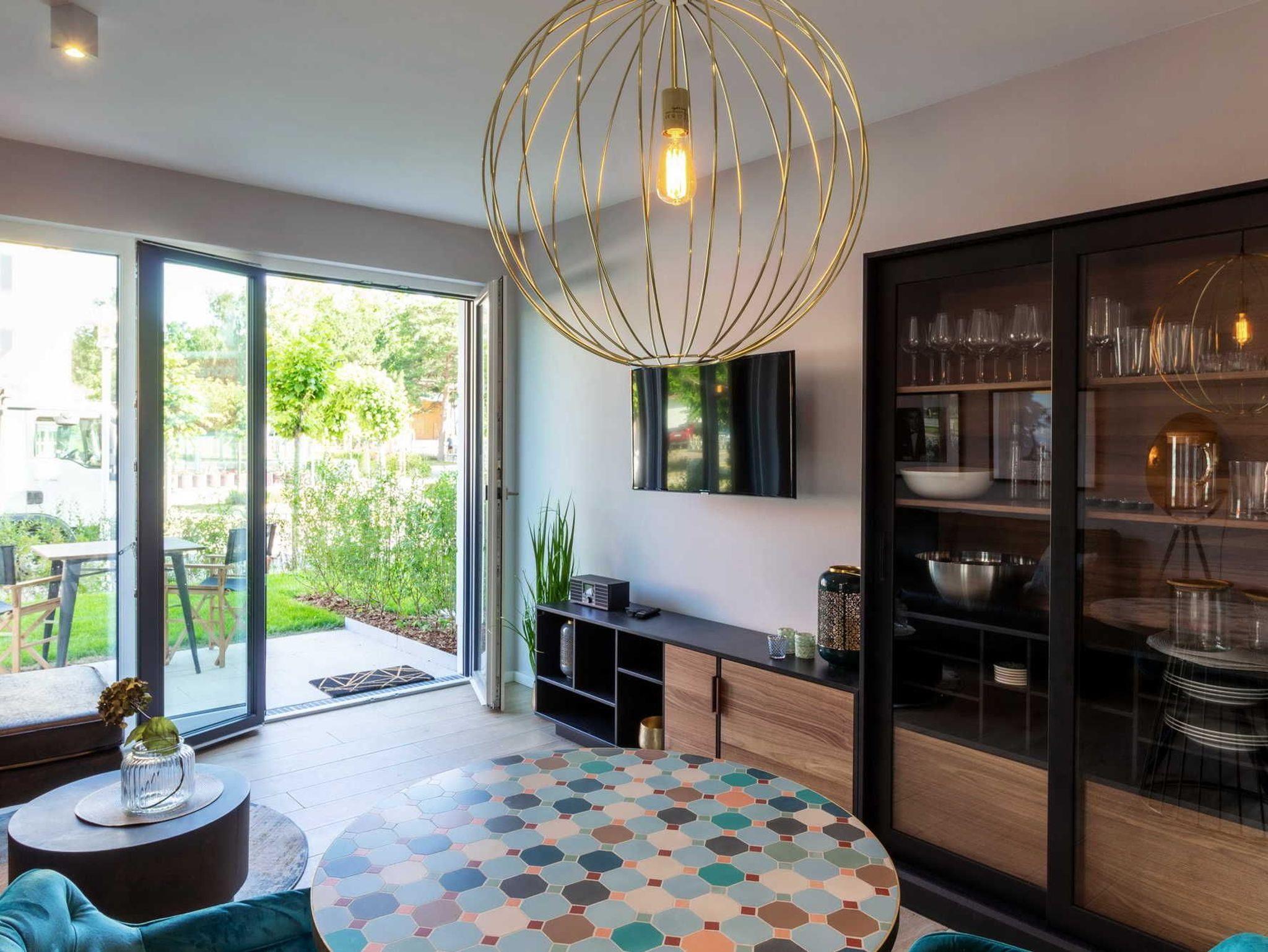 Moderne 2-Zimmer-Ferienwohnung mit Designermöbeln und Terrasse, nur 150 m vom Baaber Strand entfernt.